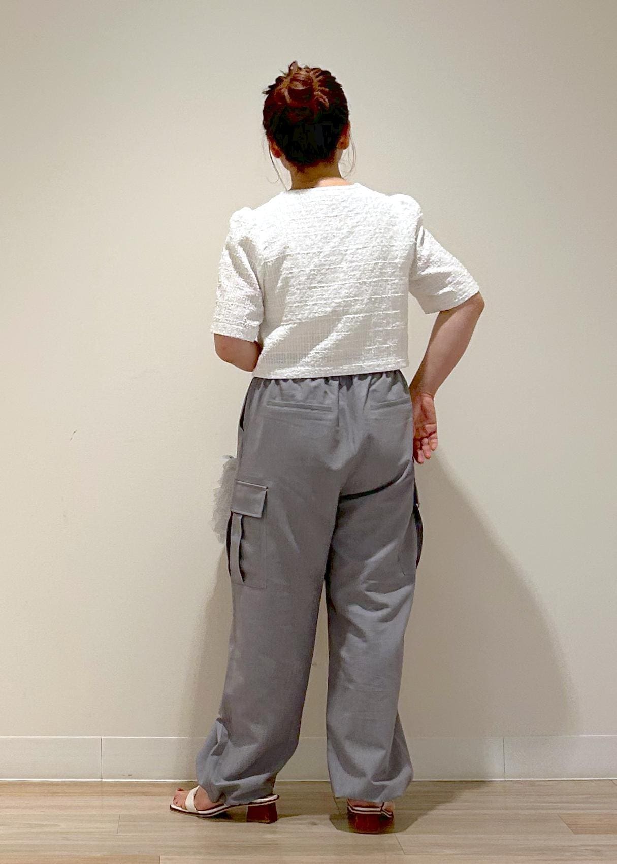 クロップド丈なので、ハイウェストのボトムスやワンピースとのバランスが取りやすく、スタイルアップを狙えます。