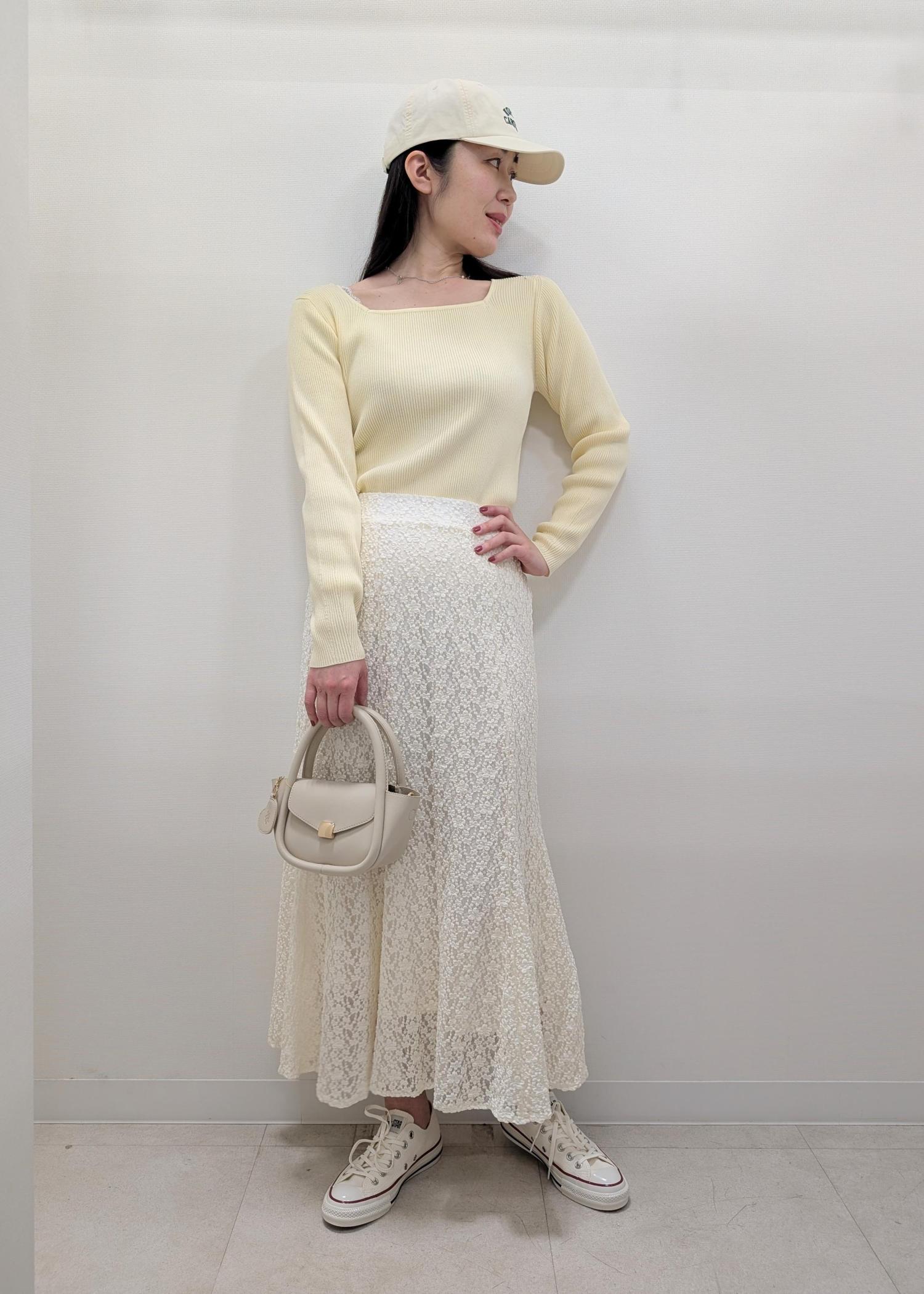 ゆるすぎずピッタリ過ぎずなサイズ感で1枚で着てもキレイなニットです。 -