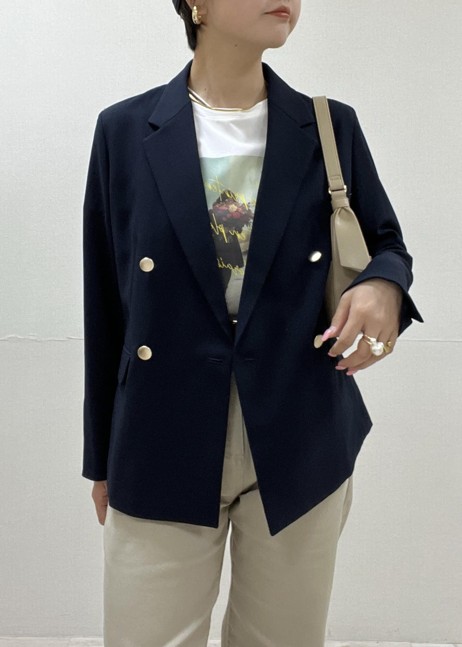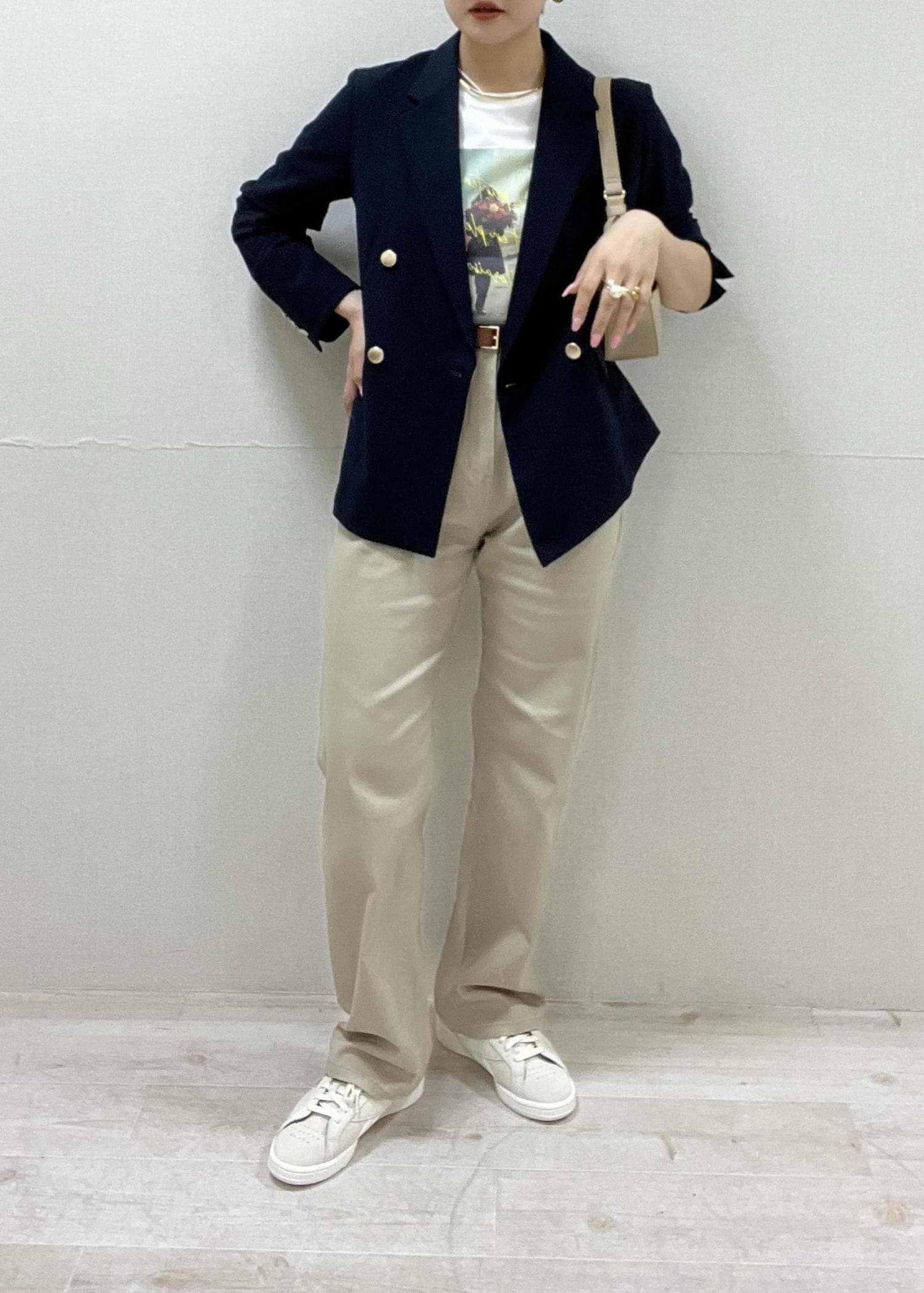 Tシャツとジャケットを合わせた春の定番コーデ。