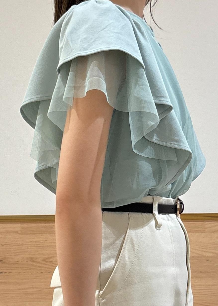 チュールとカットソーのランダムなフリルが華やかなチュールトップス♡