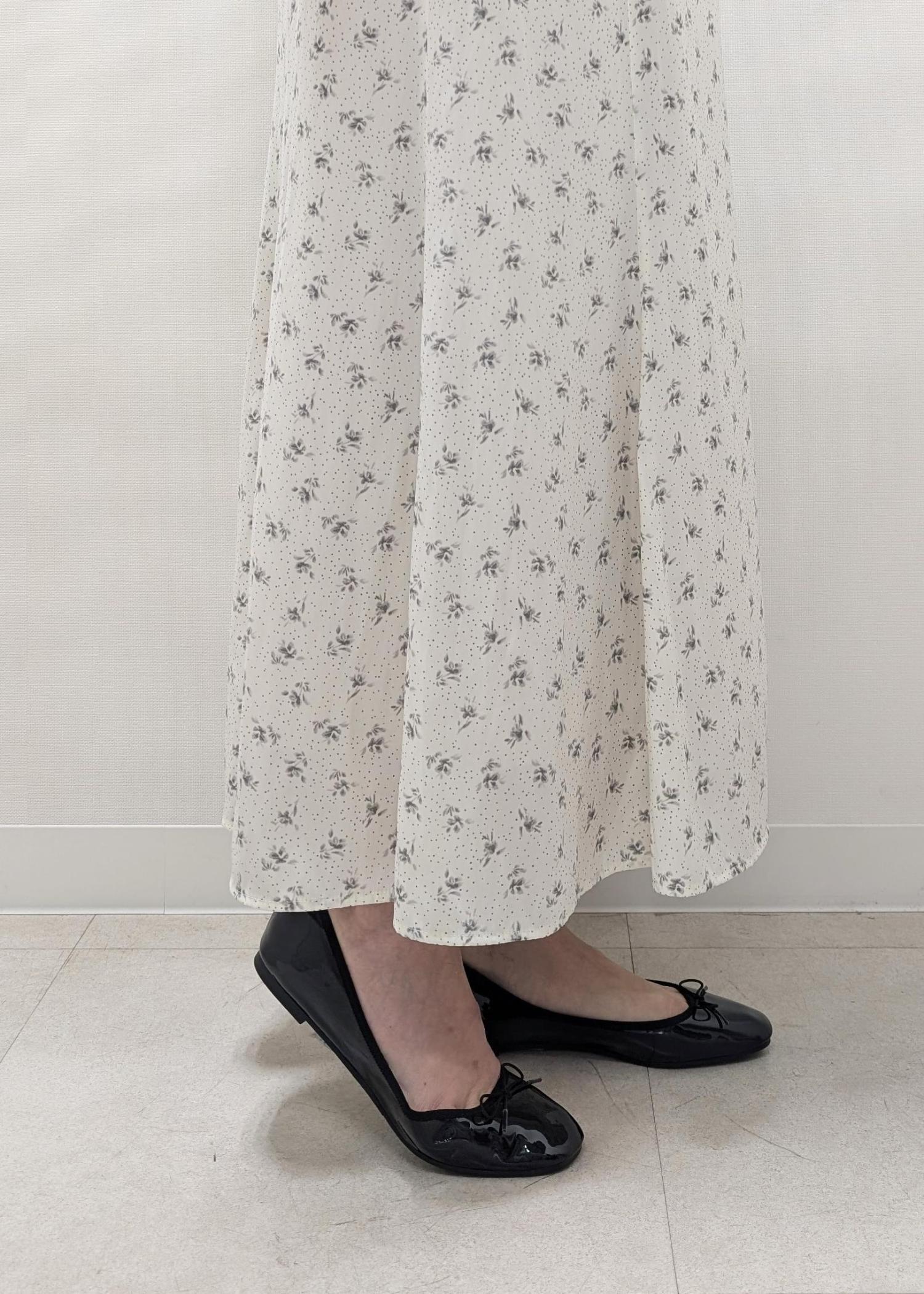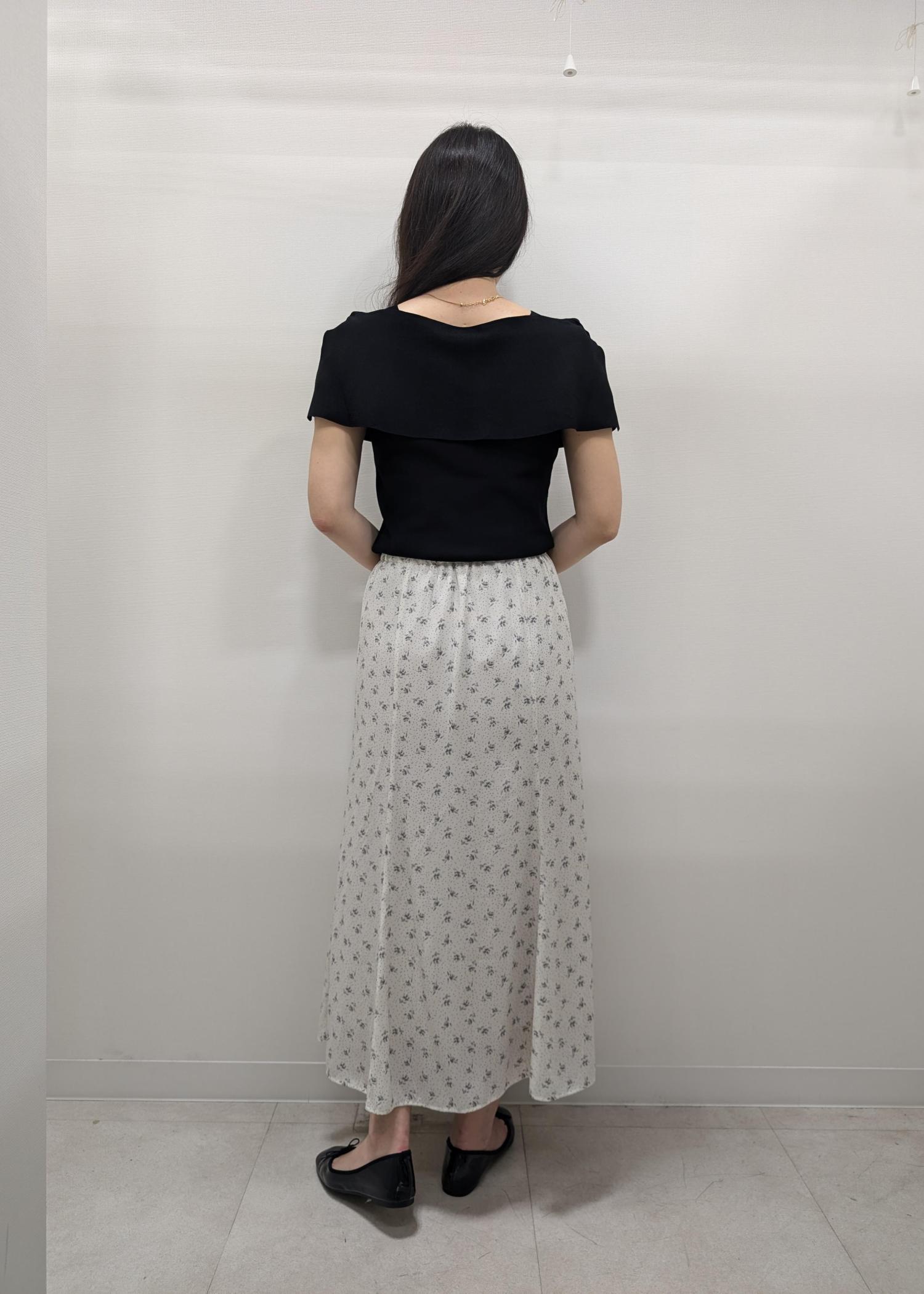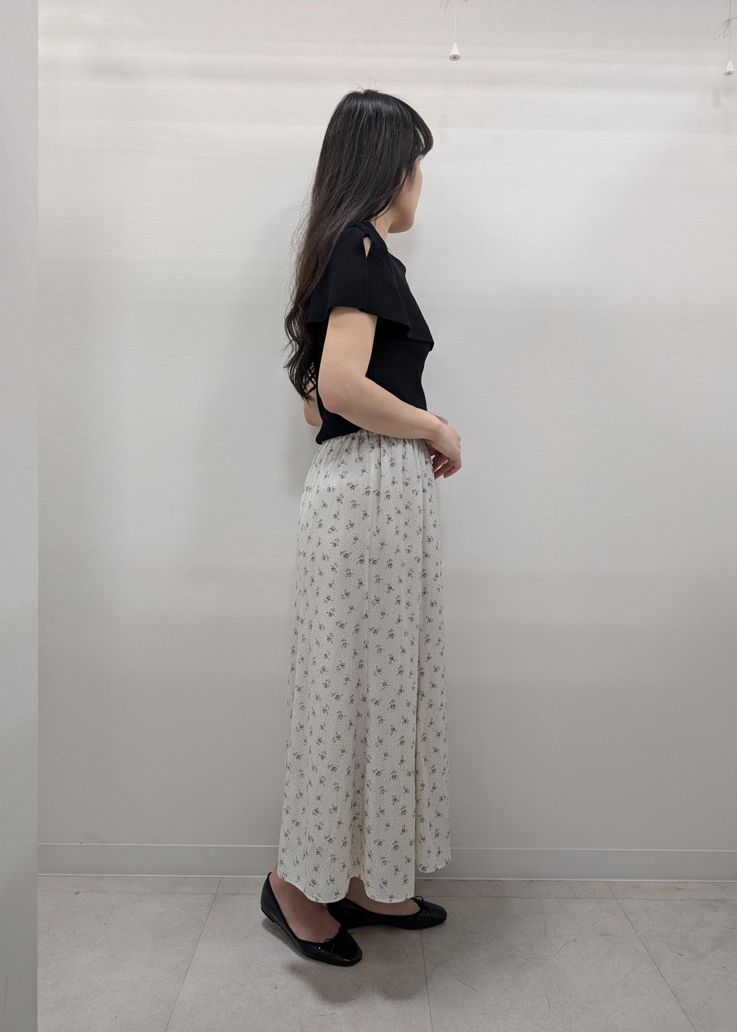 オフショル風ニット✕花柄スカートと甘めのアイテムなので