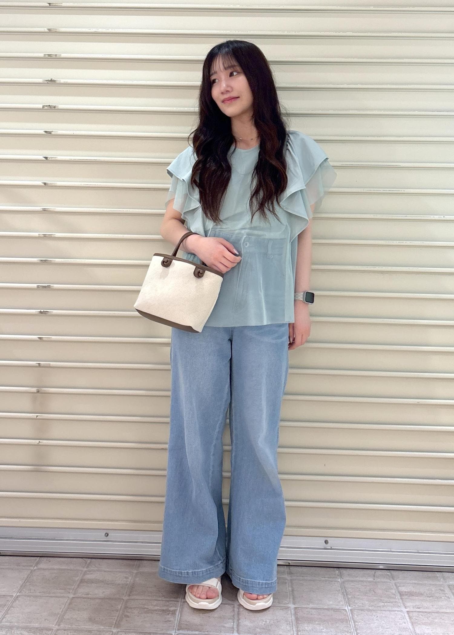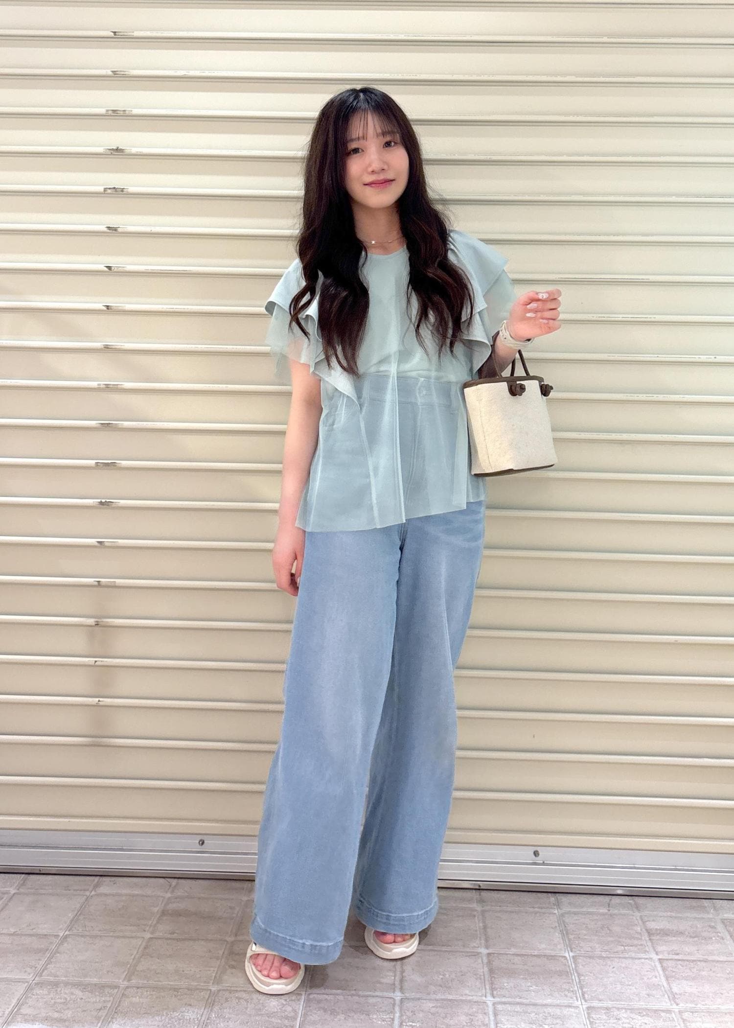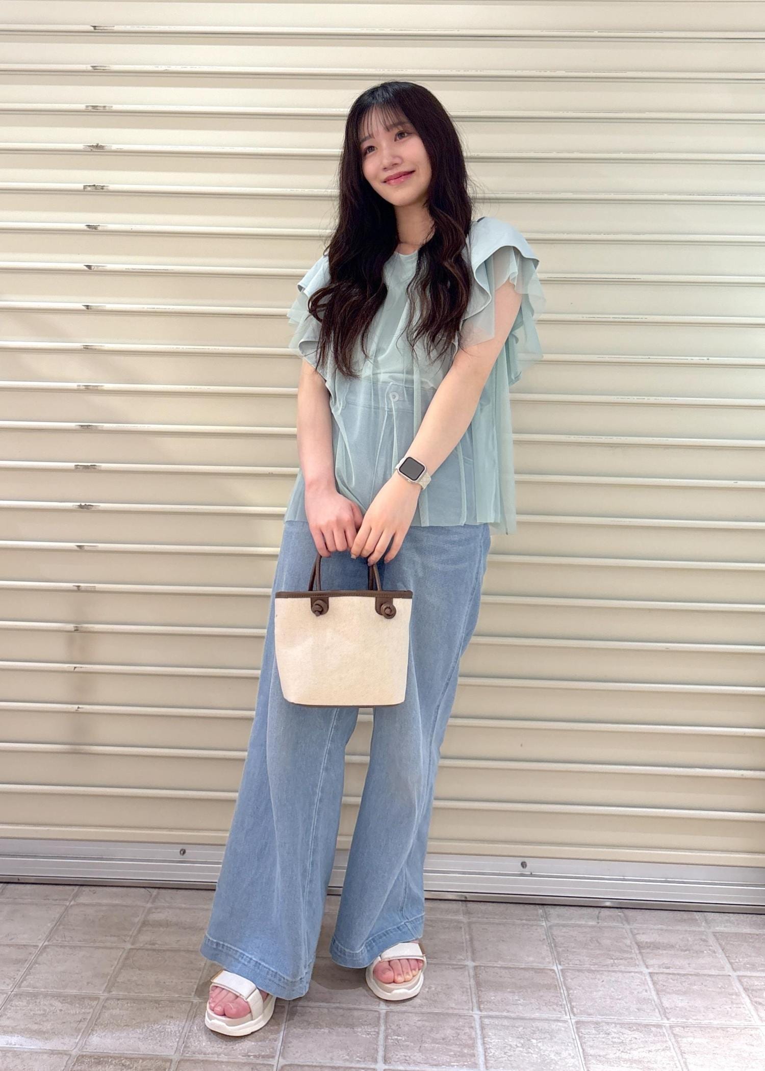 ミントグリーンのトップスが特徴的で、涼しく可愛らしく着ることが出来ます!パンツと合わせてもスカートと合わせても◎