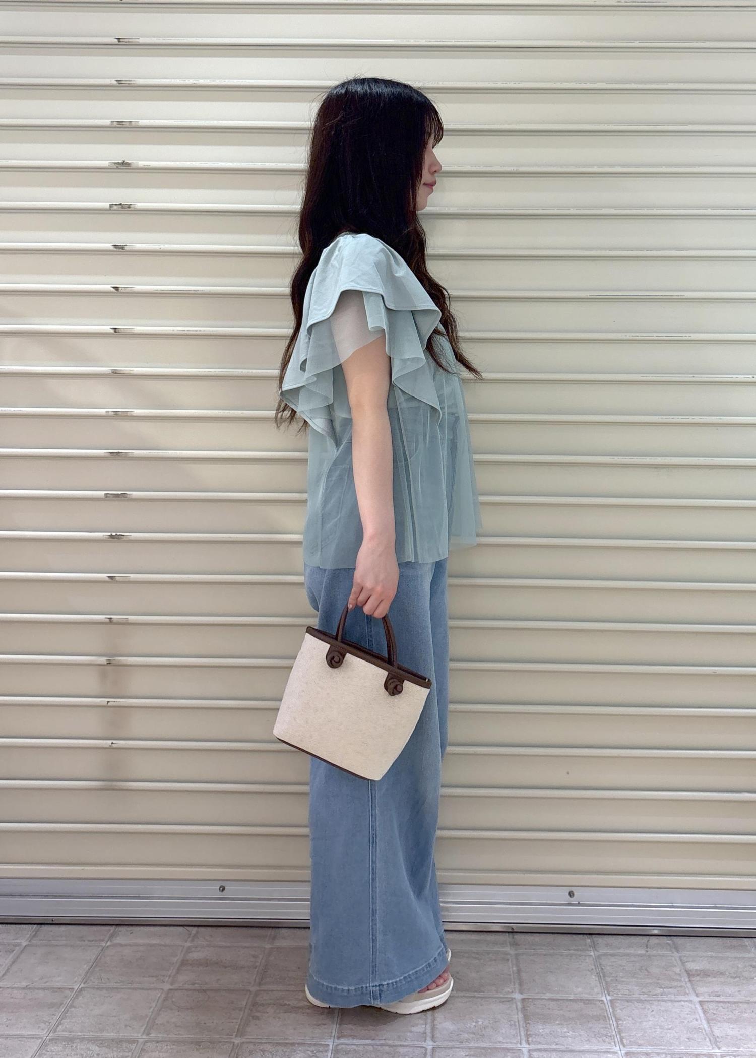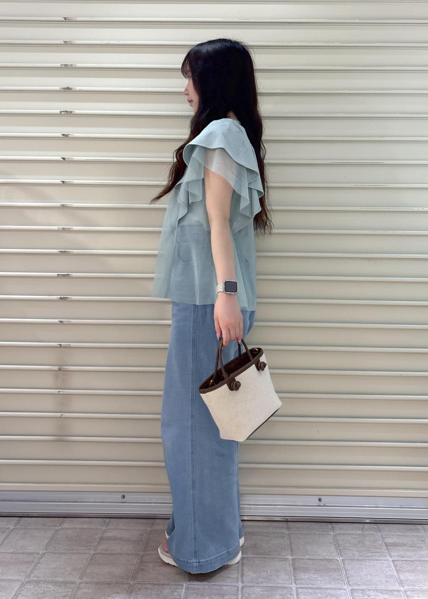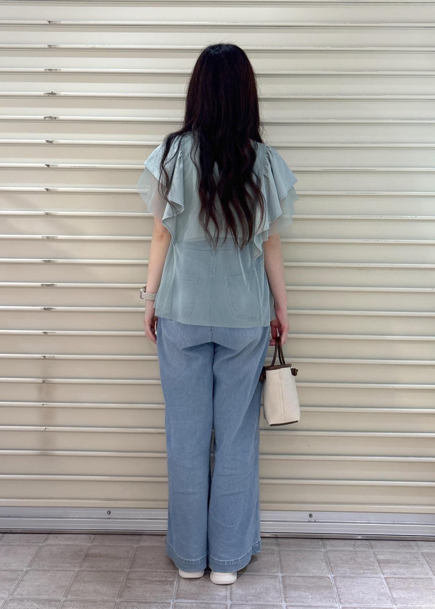 ミントグリーンのトップスが特徴的で、涼しく可愛らしく着ることが出来ます!パンツと合わせてもスカートと合わせても◎