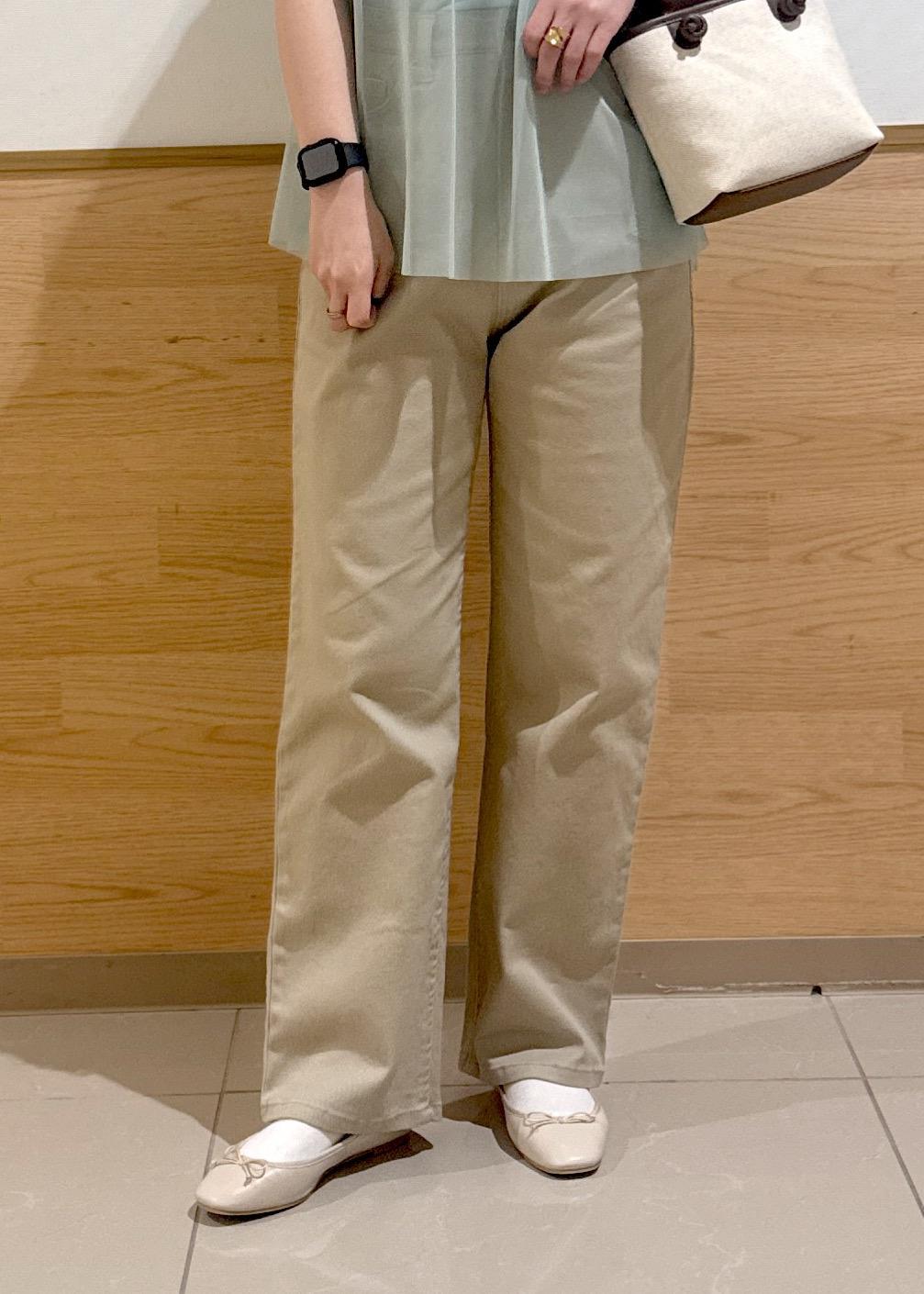 マムデニムは新色のベージュをチョイスしたので、カットソーはミントグリーンを選び初夏らしい色合いに。