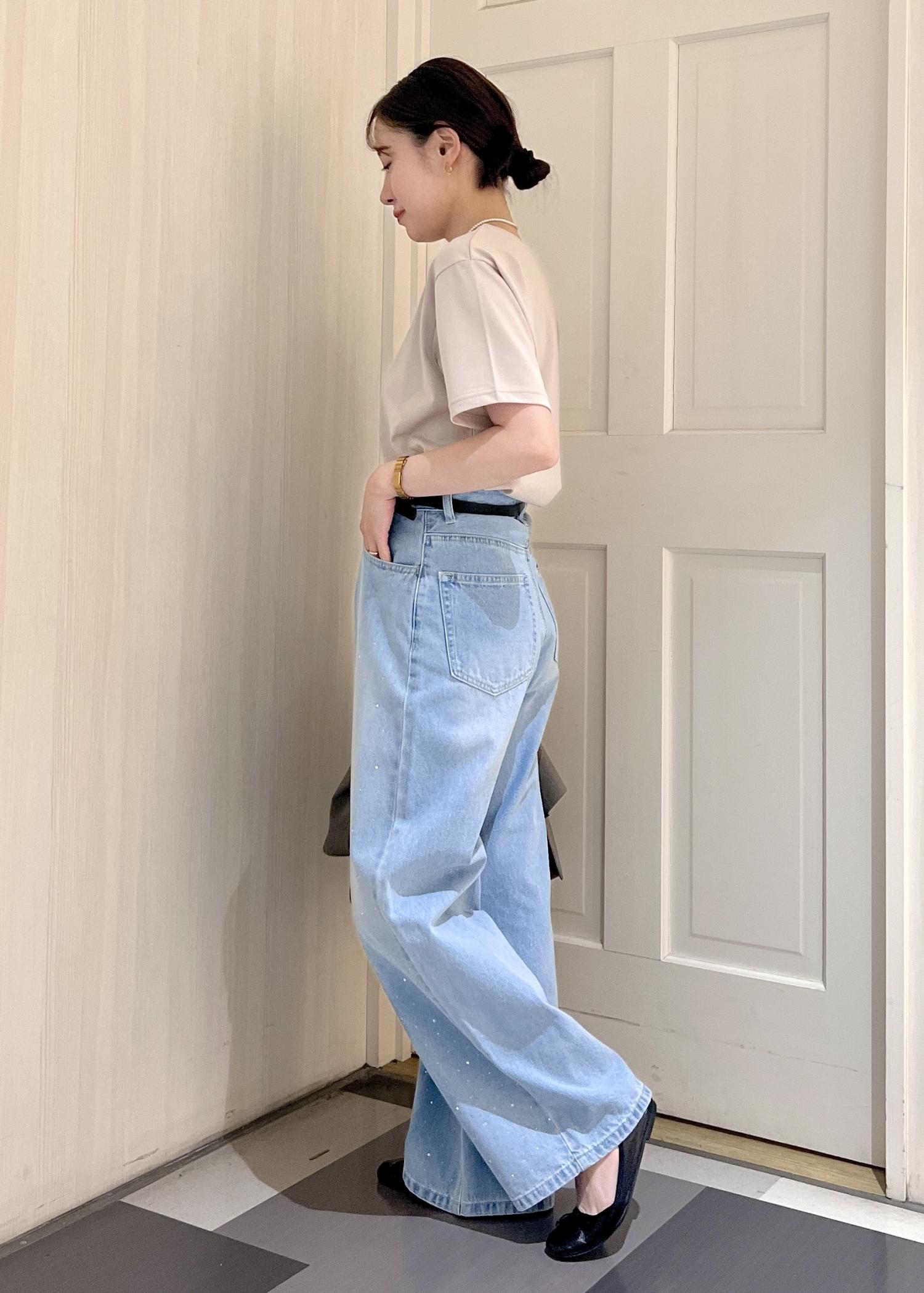 柔らかいデニム素材で、細かいビジューが女性らしい1本です。 -