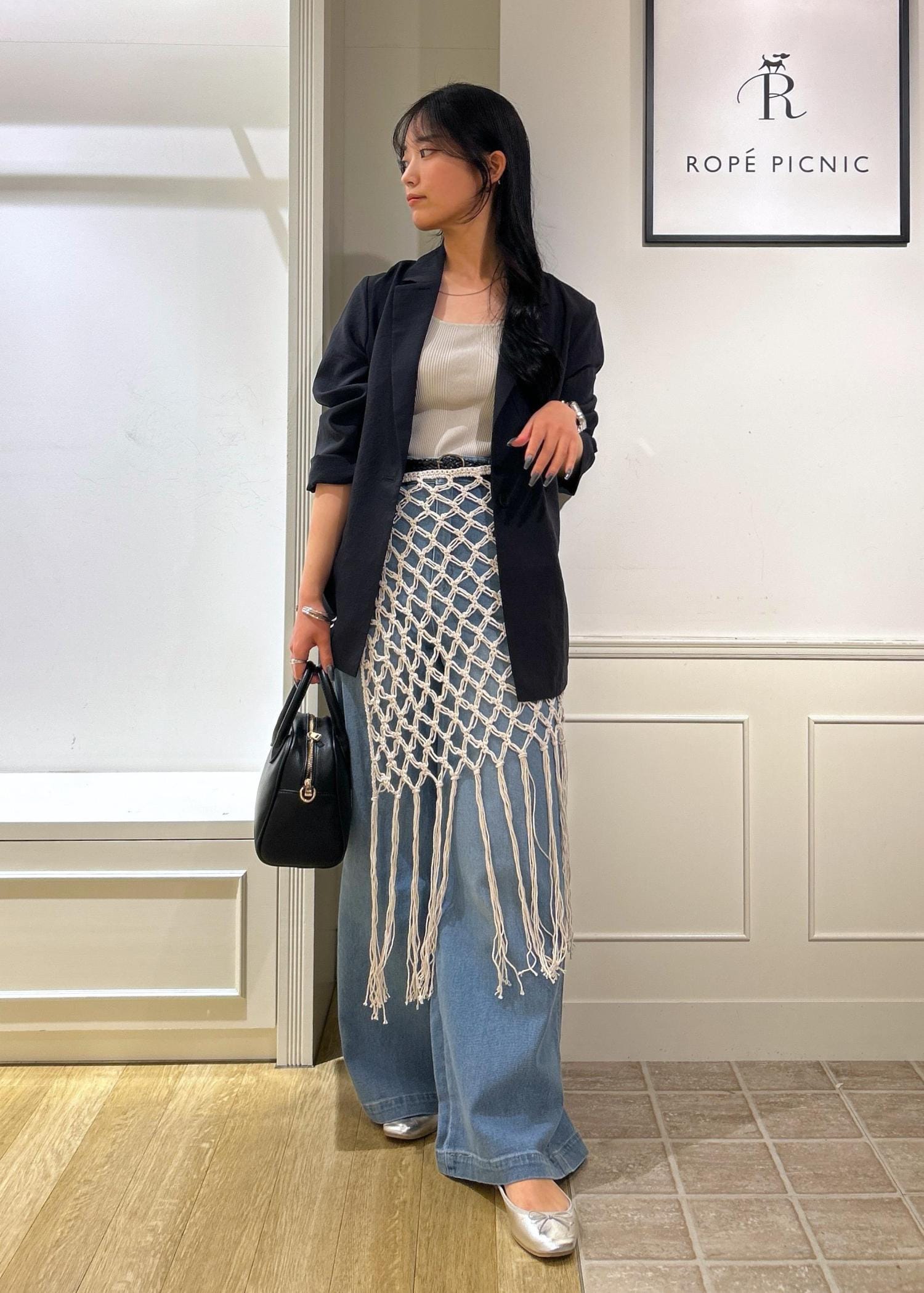 クラフト感のあるスカートが抜け感をプラスしてくれます。
