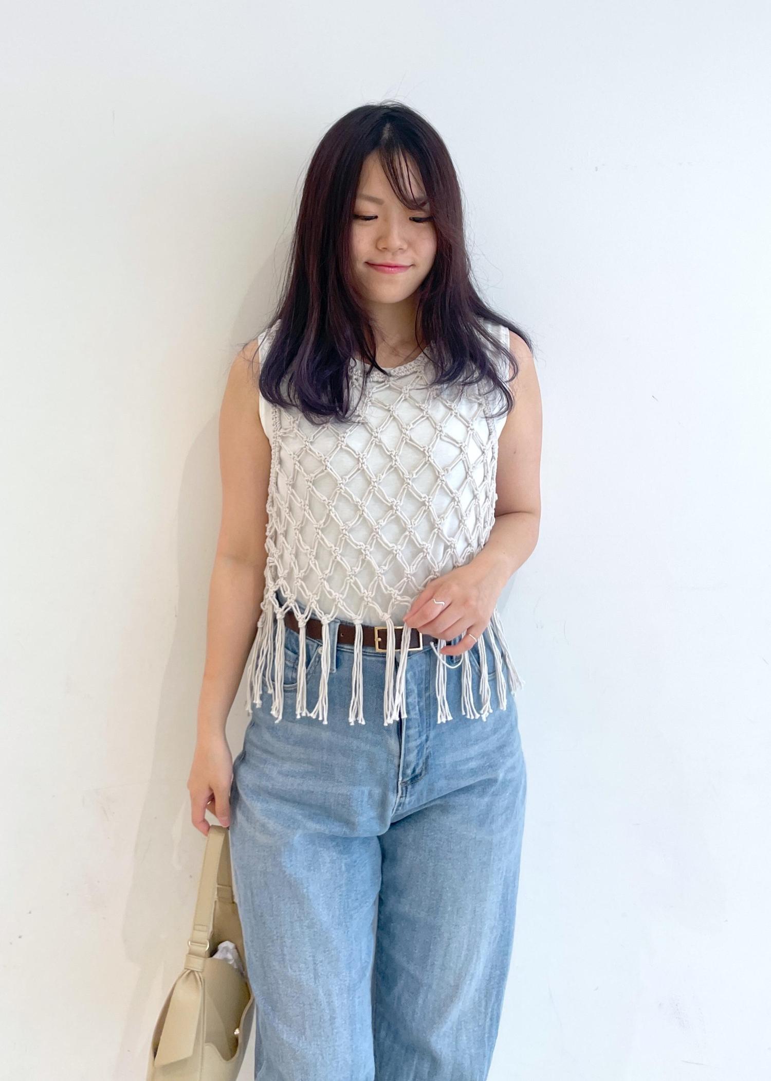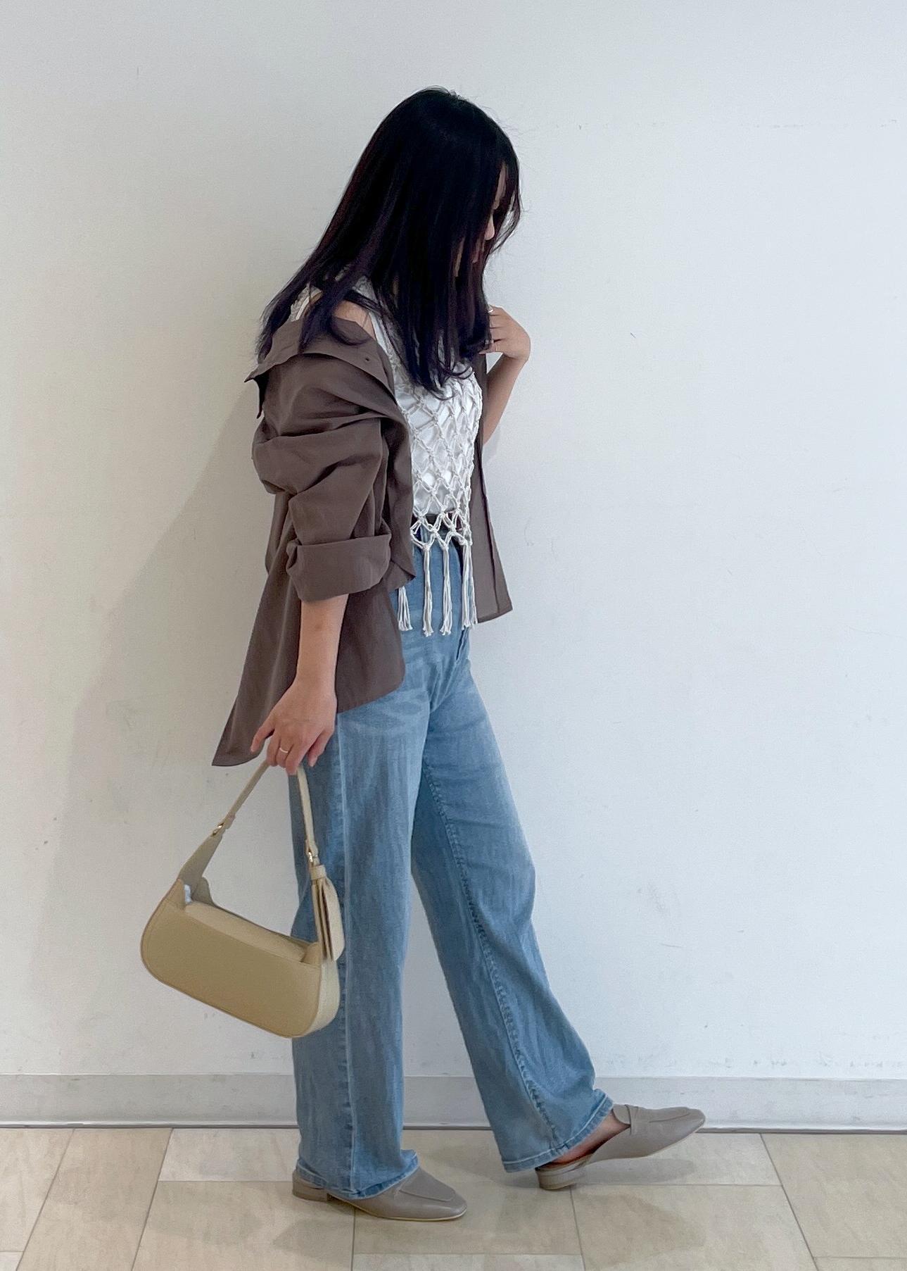 シンプルなデザインなので裾を結んだり、ビスチェにしたり、と着回し万能です◎