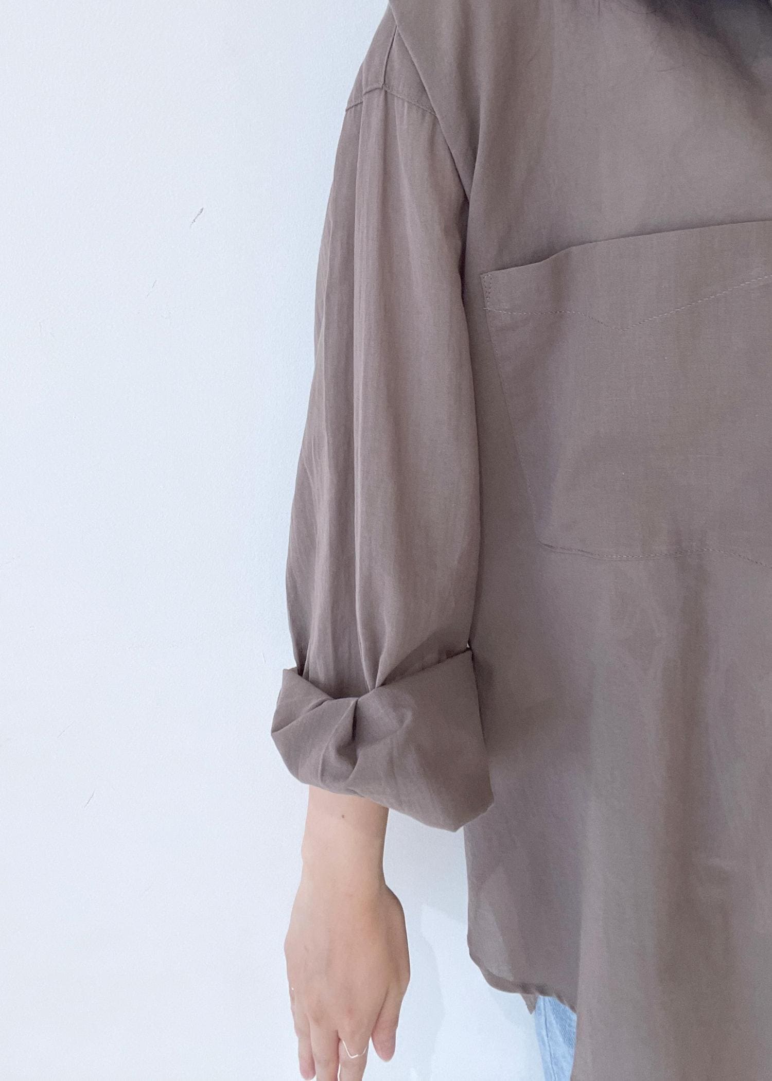 アウトレットROPÉ PICNIC【接触冷感・通気性】お着軽シャツシリーズ/綿ボイルバックタックシャツブラウン / 38¥2,795レビューゆったりシルエットで軽いシャツです!