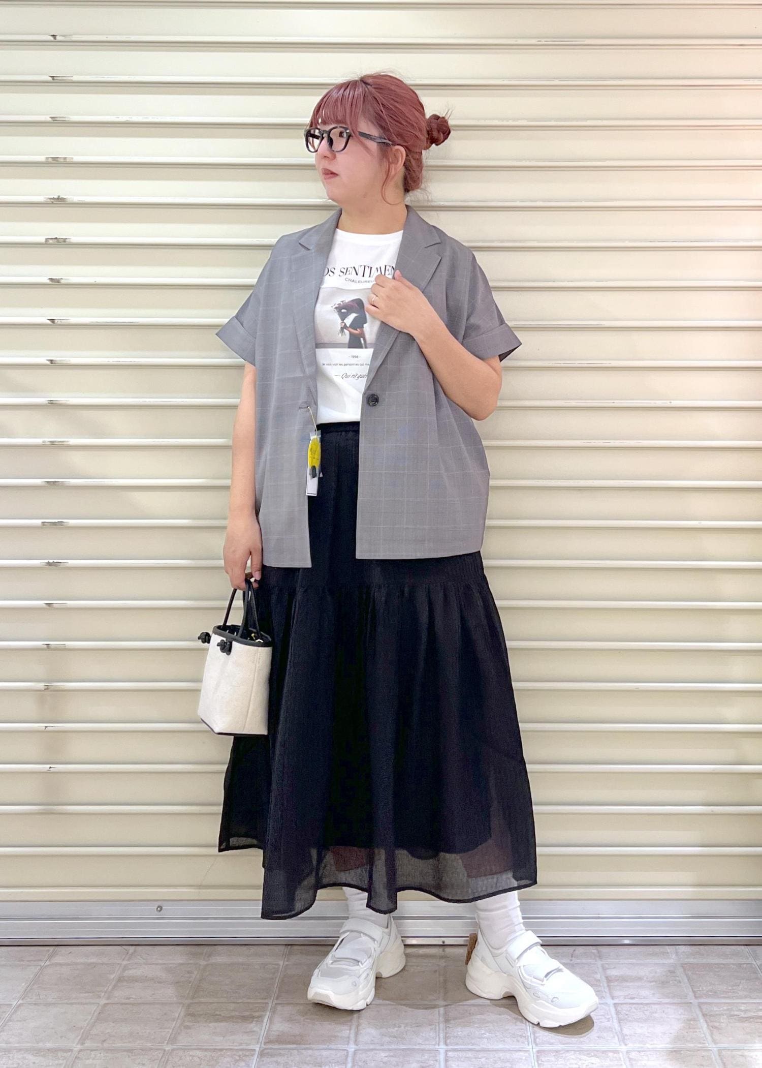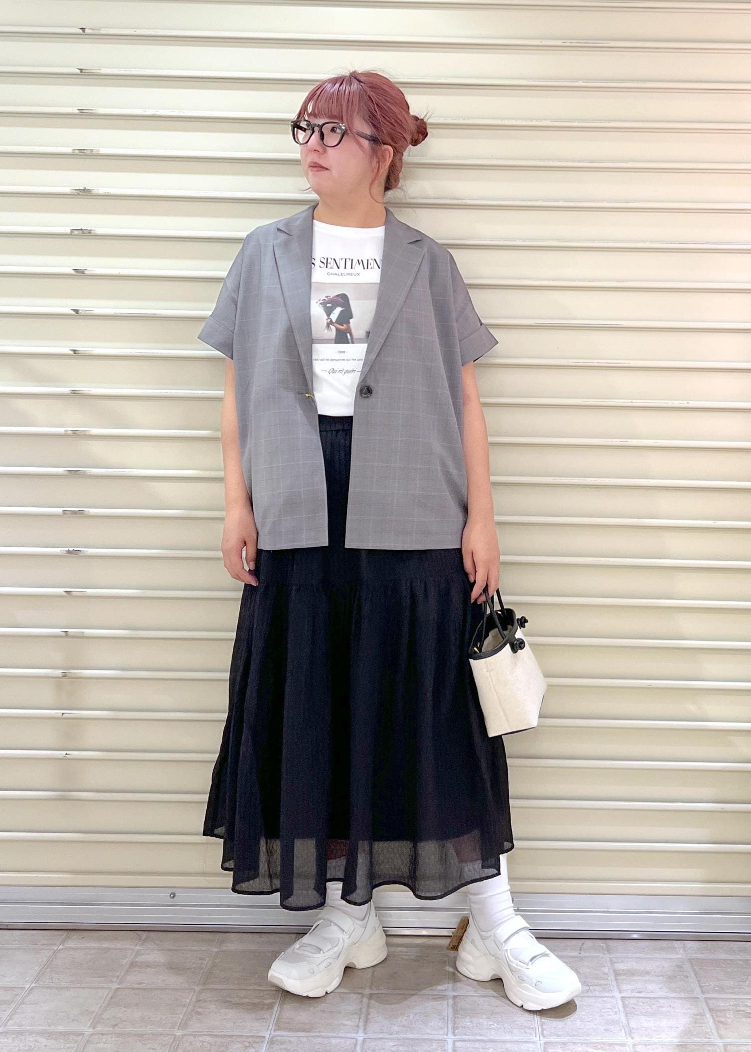 スカート合わせでもカジュアルにコーディネートしました。
