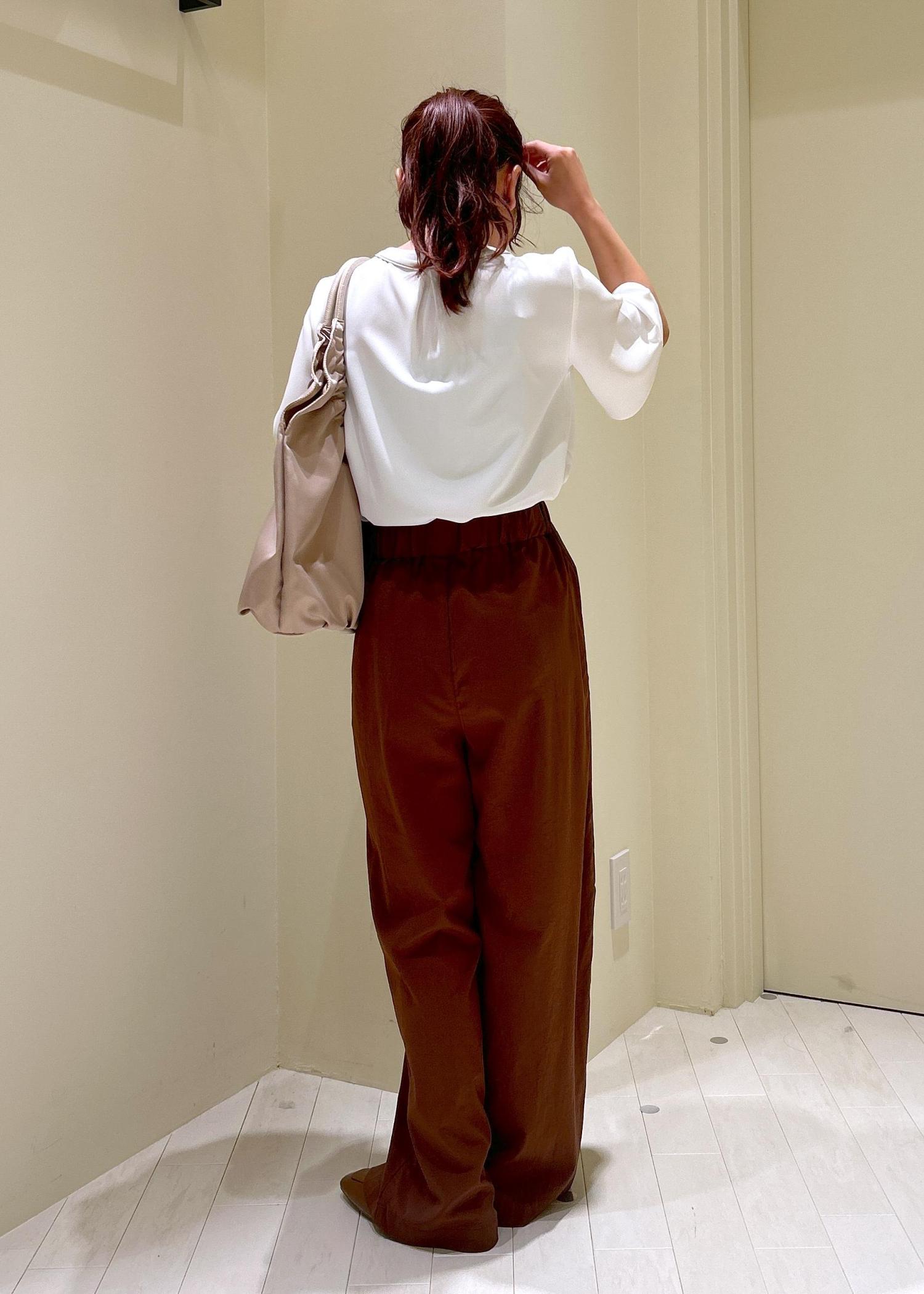 普段使いもしやすい楽ちんパンツのオフィスカジュアルコーデです。