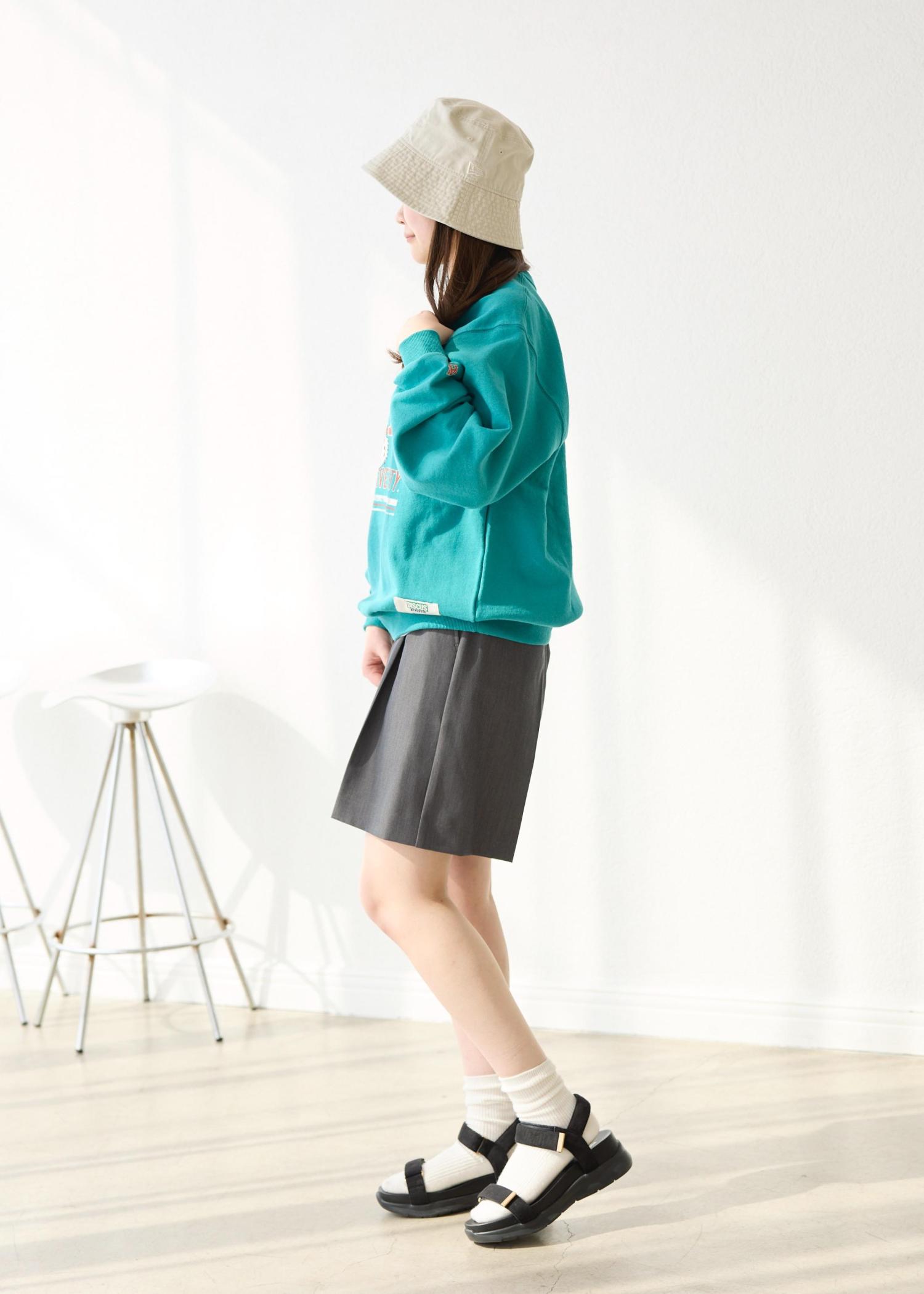 バケットハットとサンダルを合わせ、とことんカジュアルなコーディネートにしました。