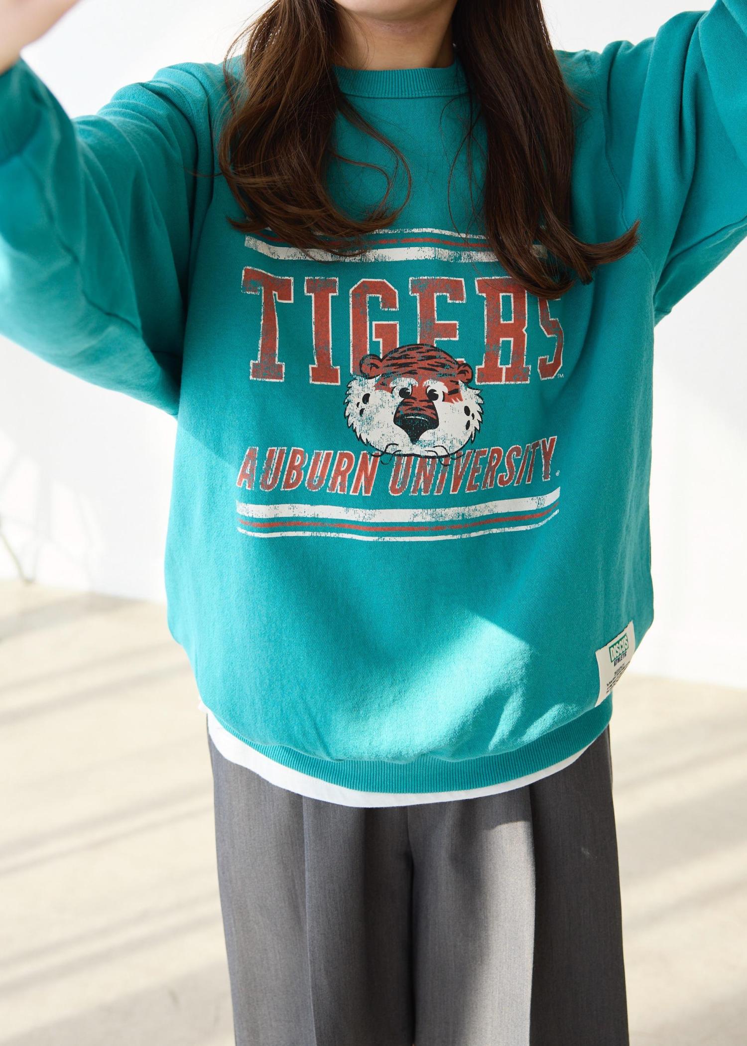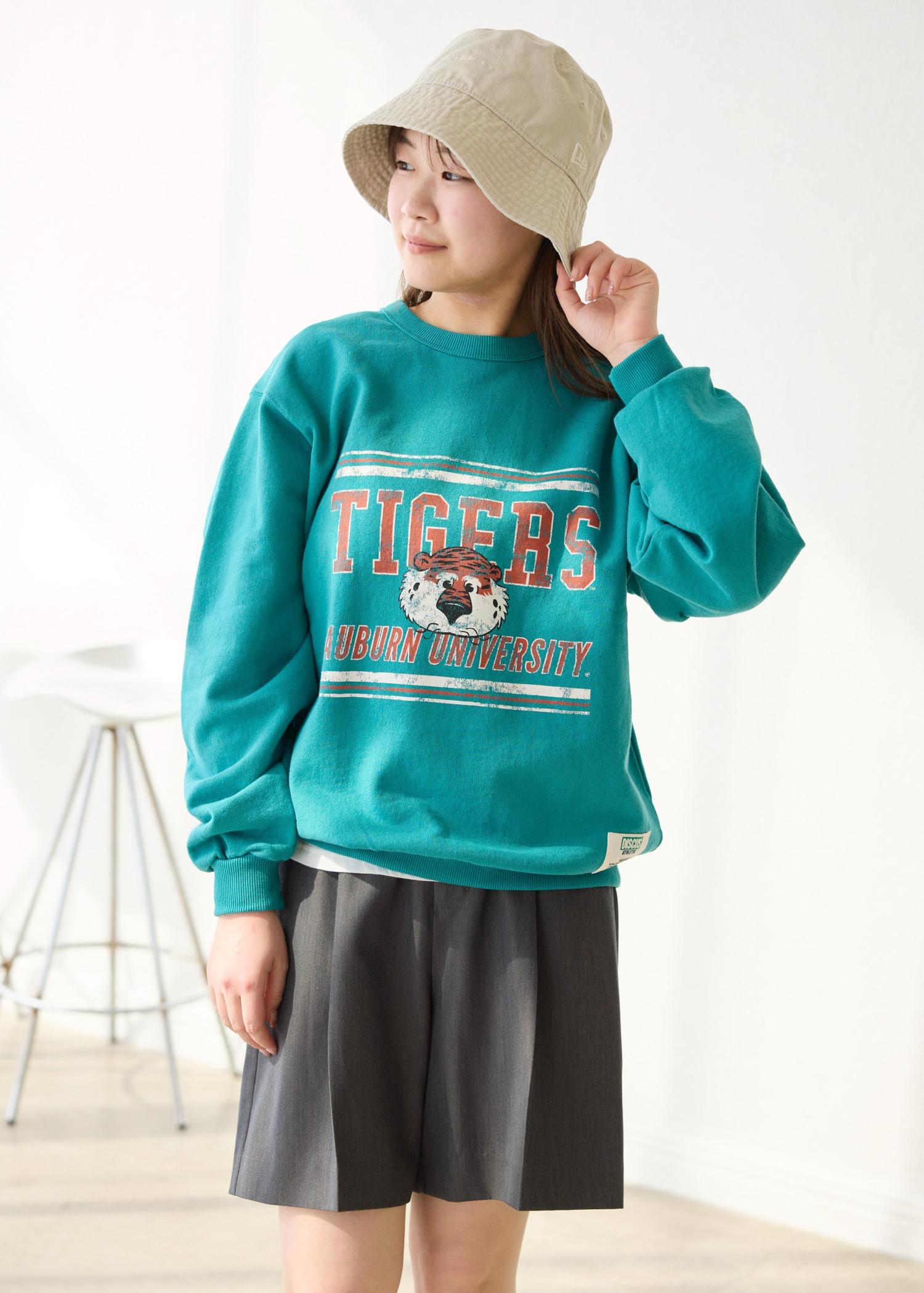 虎の絵柄が愛らしいスウェットが主役のカラーコーデです。