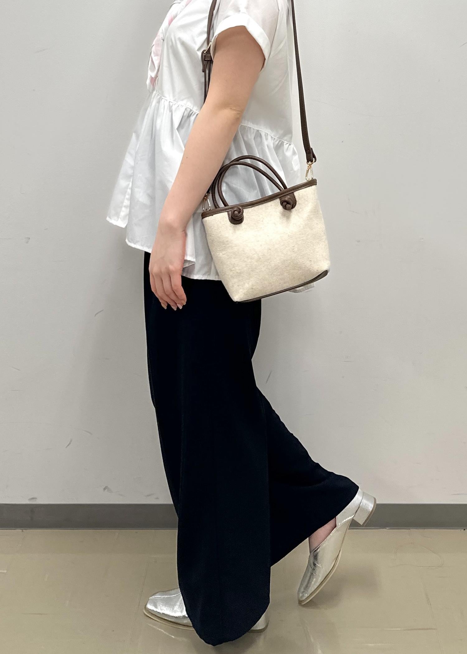 アウトレットROPÉ PICNIC PASSAGEノットハンドルキャンバスコンビミドルトート&ショルダーバッグブラウン / F¥2,497レビュー中にボタンもあり中身が見える心配がありません!