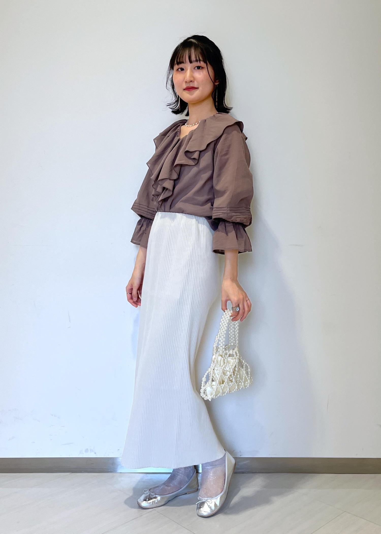 アウトレットROPÉ PICNIC【接触冷感・通気性】お着軽シャツシリーズ/綿ボイルフリルブラウスブラウン / 38¥4,391レビュー1枚で華やかなラッフルシャル。