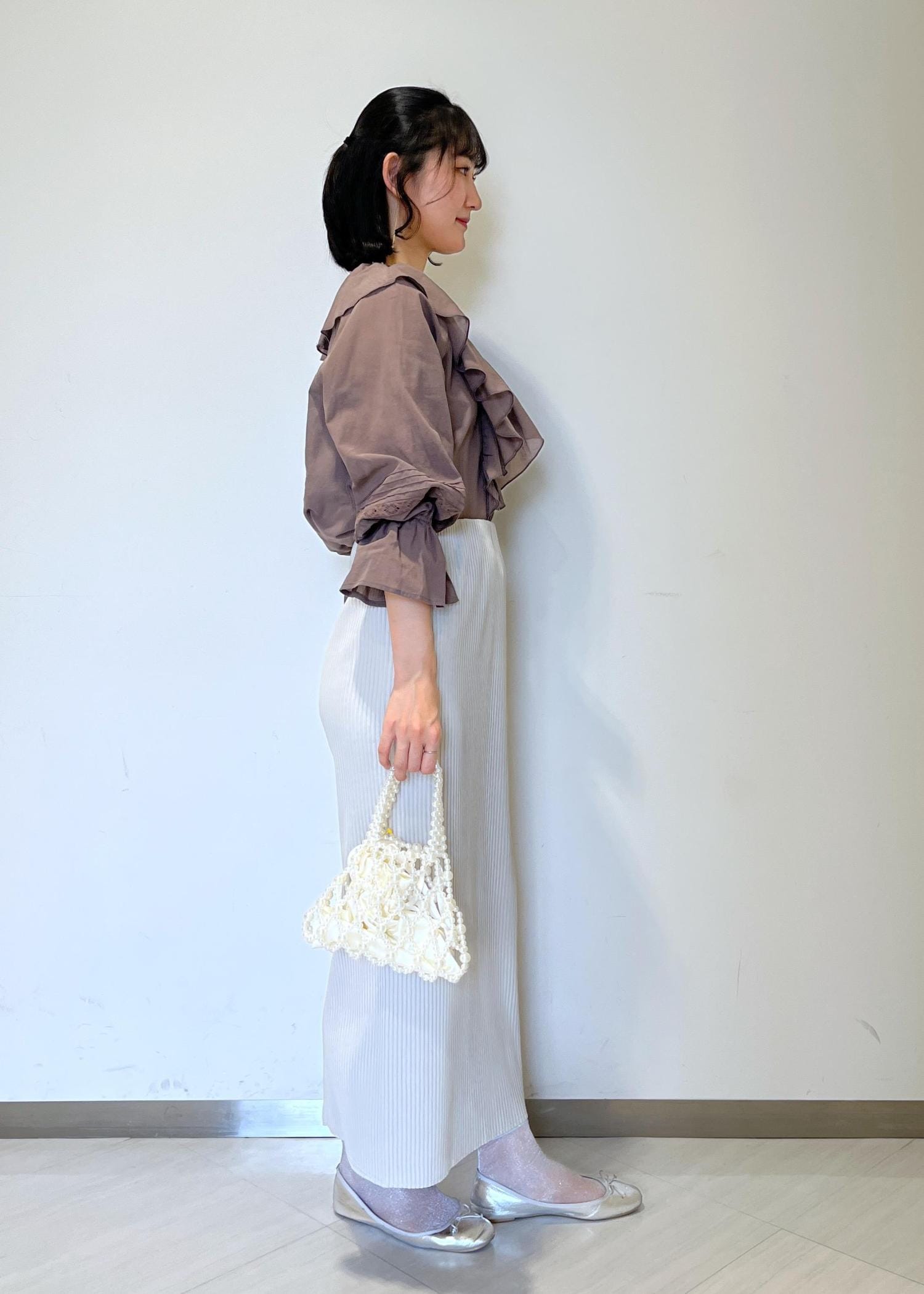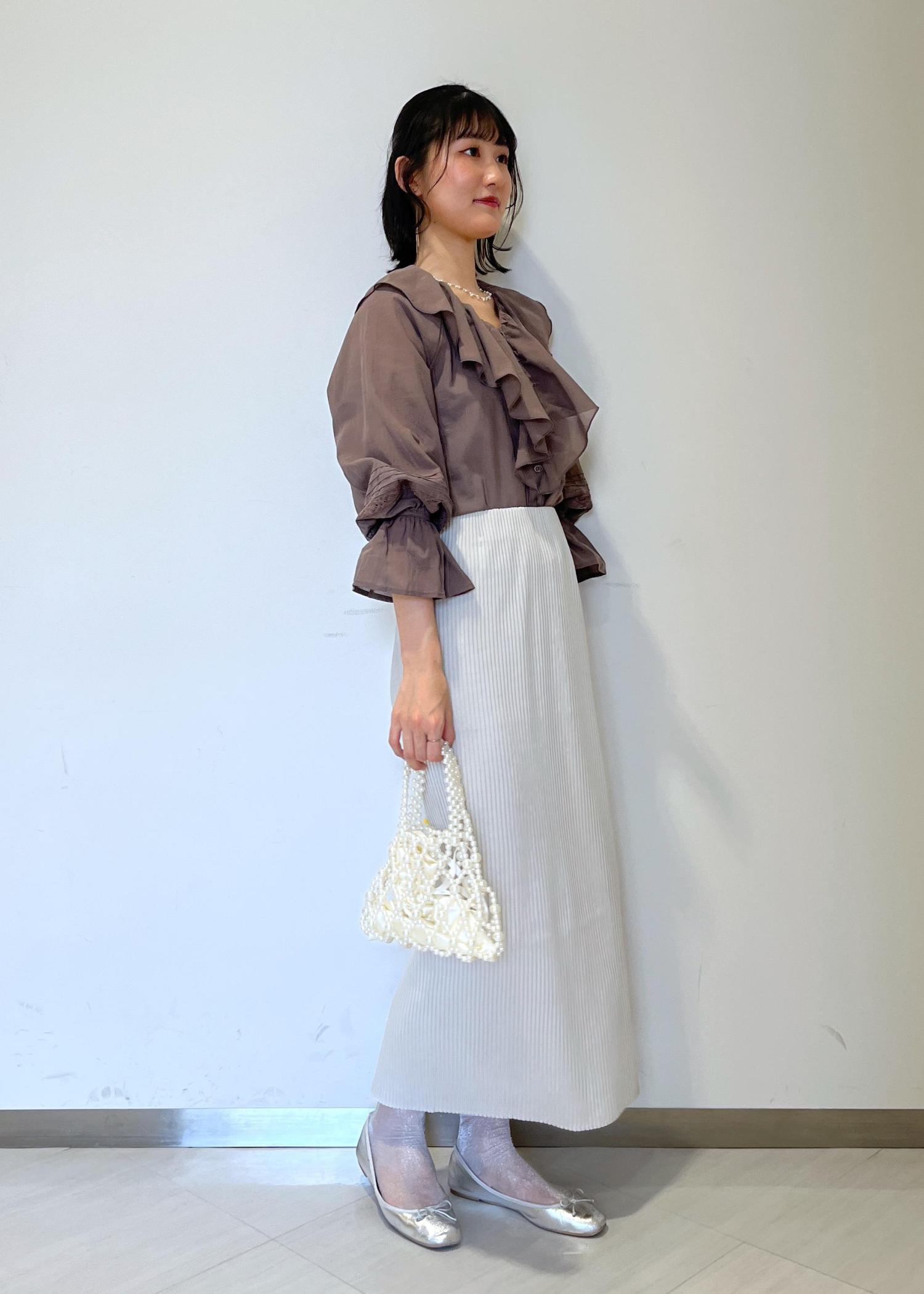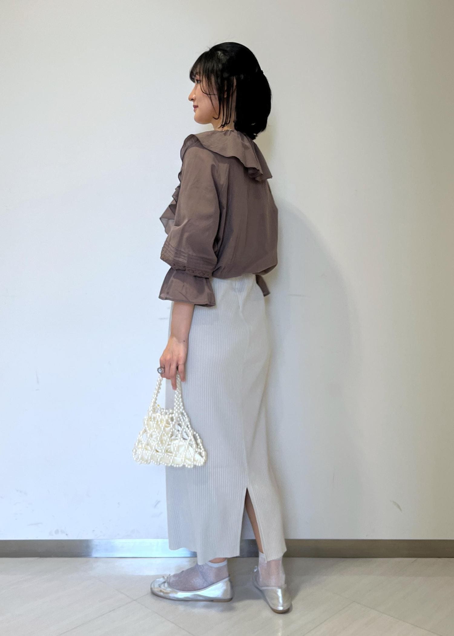 着丈は気持ち短めなので、すっきりした印象で着ていただけます。 -
