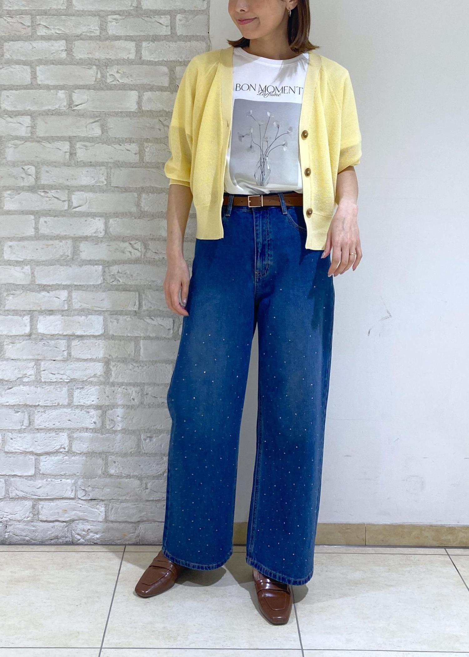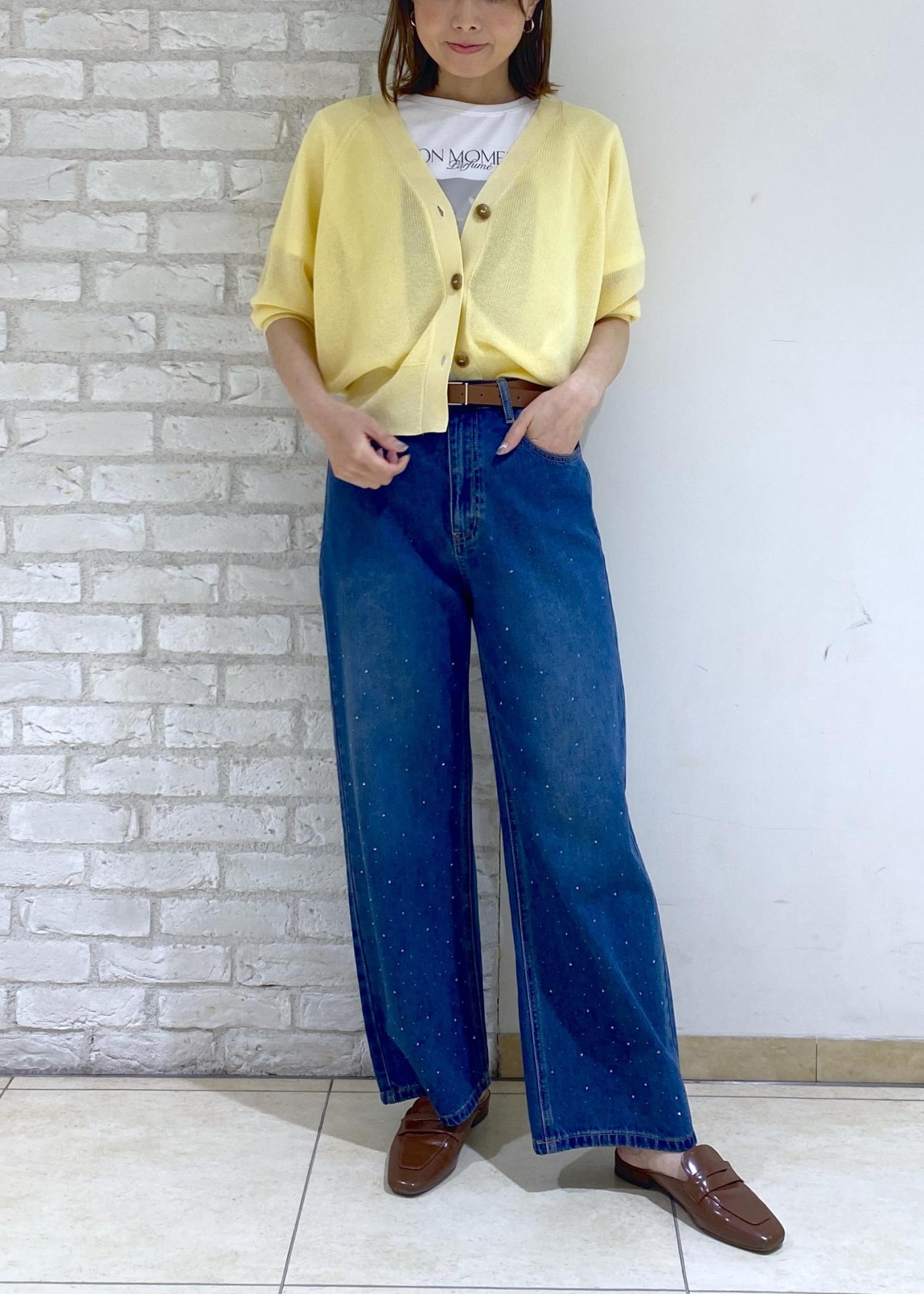 コーディネートに馴染んでくれるキラキラ感がポイントのデニムパンツです。 -
