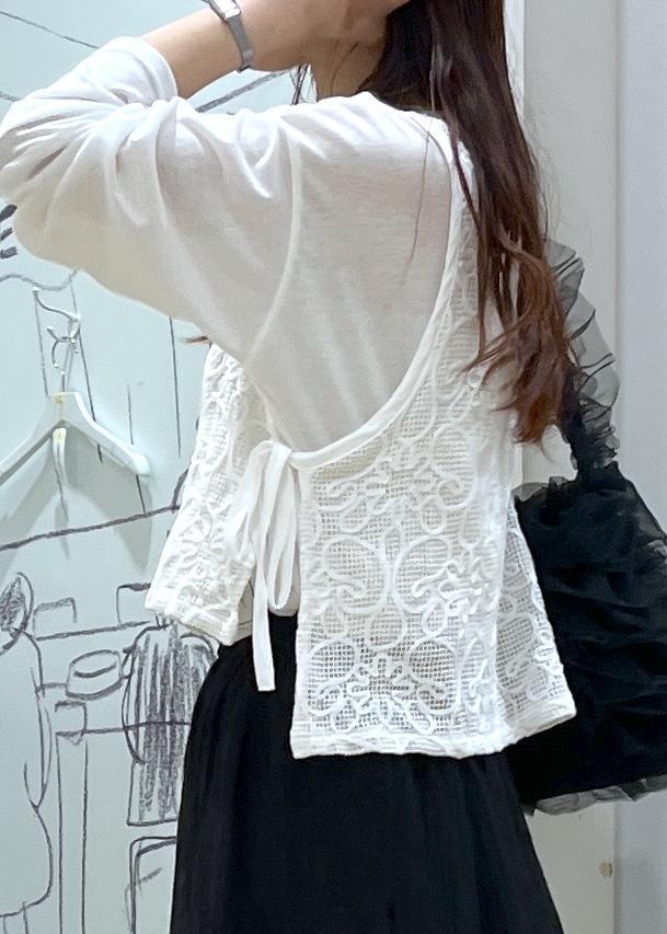 両方紐で結べるので、インナーに合わせてサイズ調節できます。 -