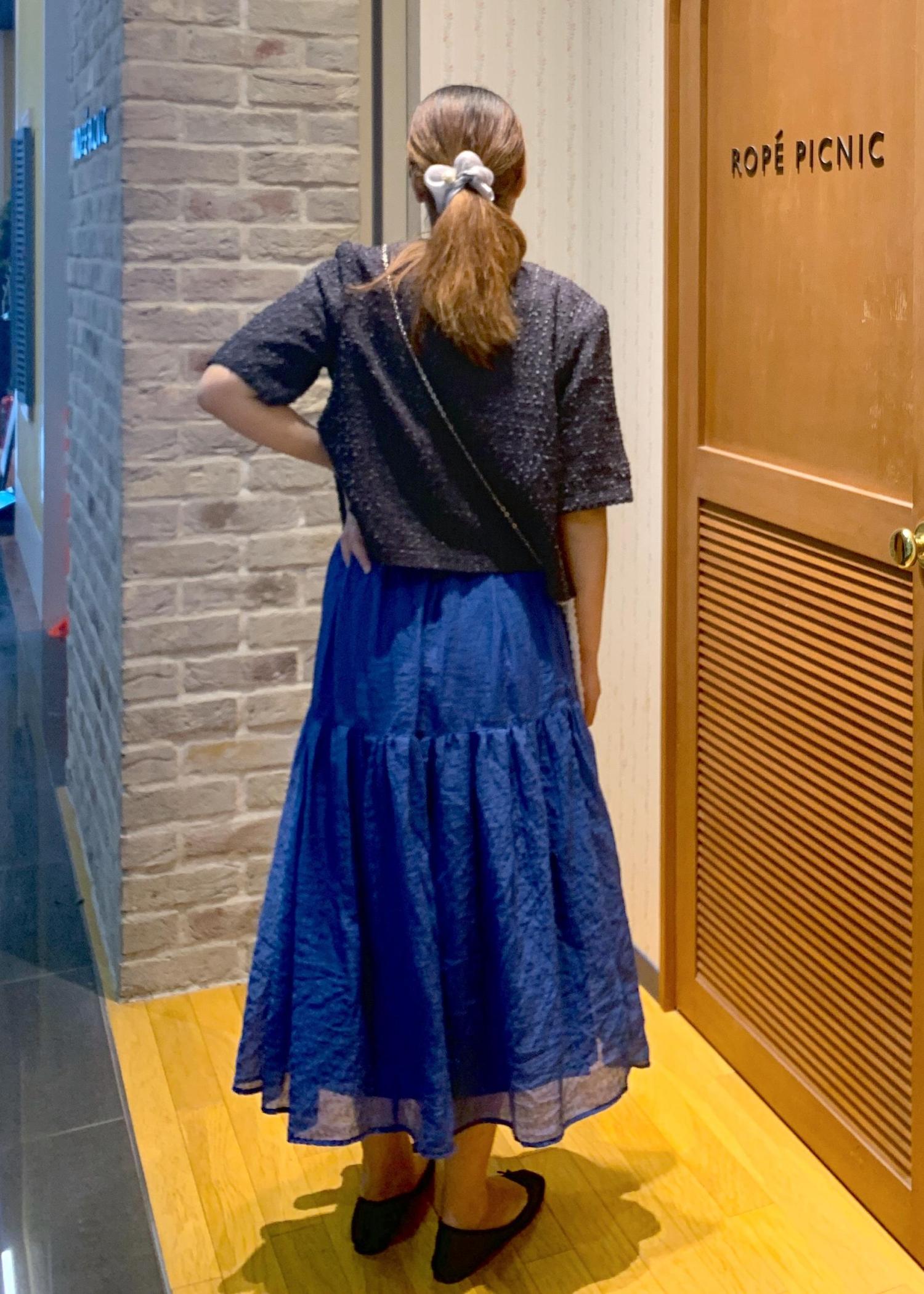 ティアードですが広がり過ぎないので甘い感じに抵抗ある方でも着用しやすいと思います。
