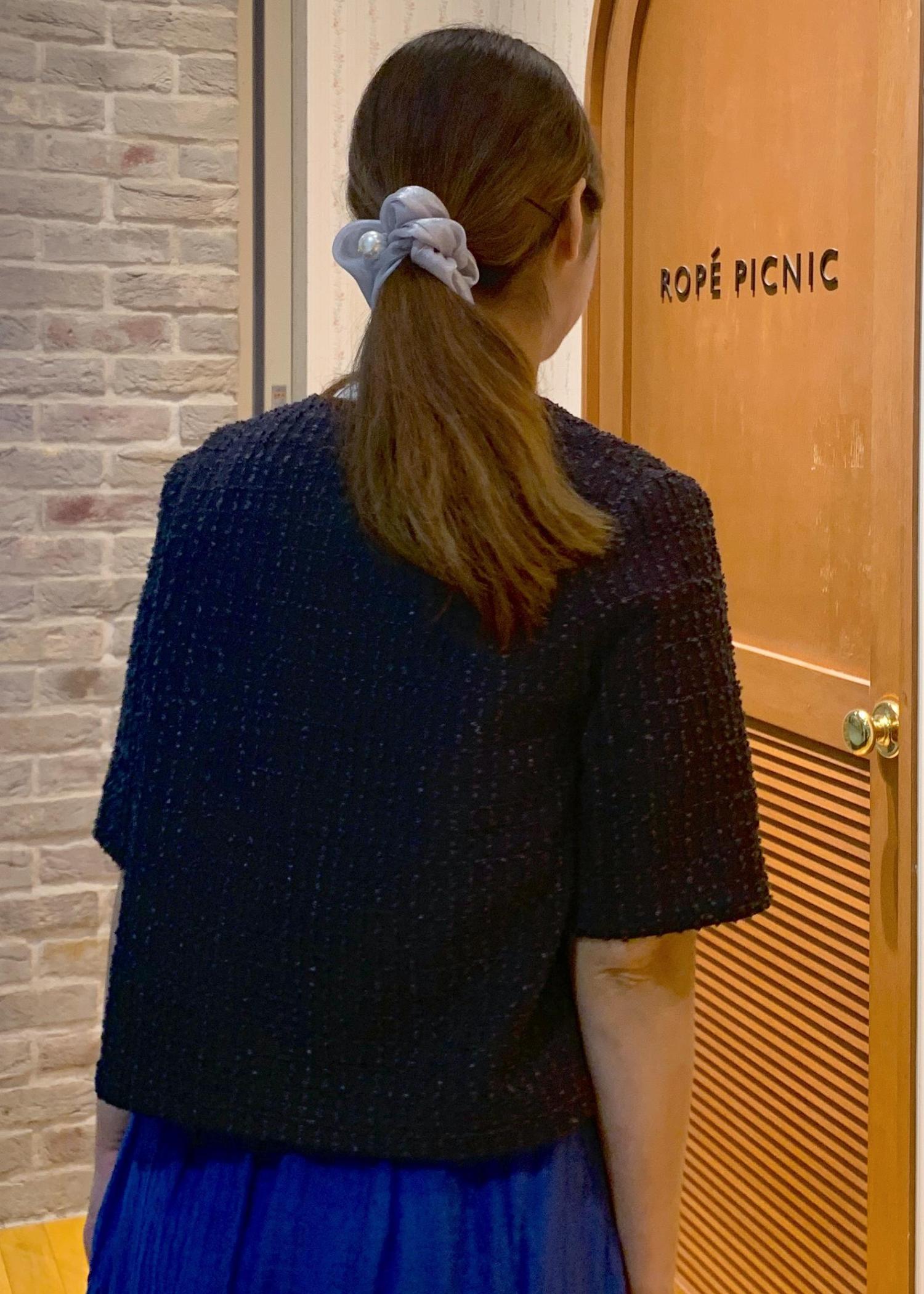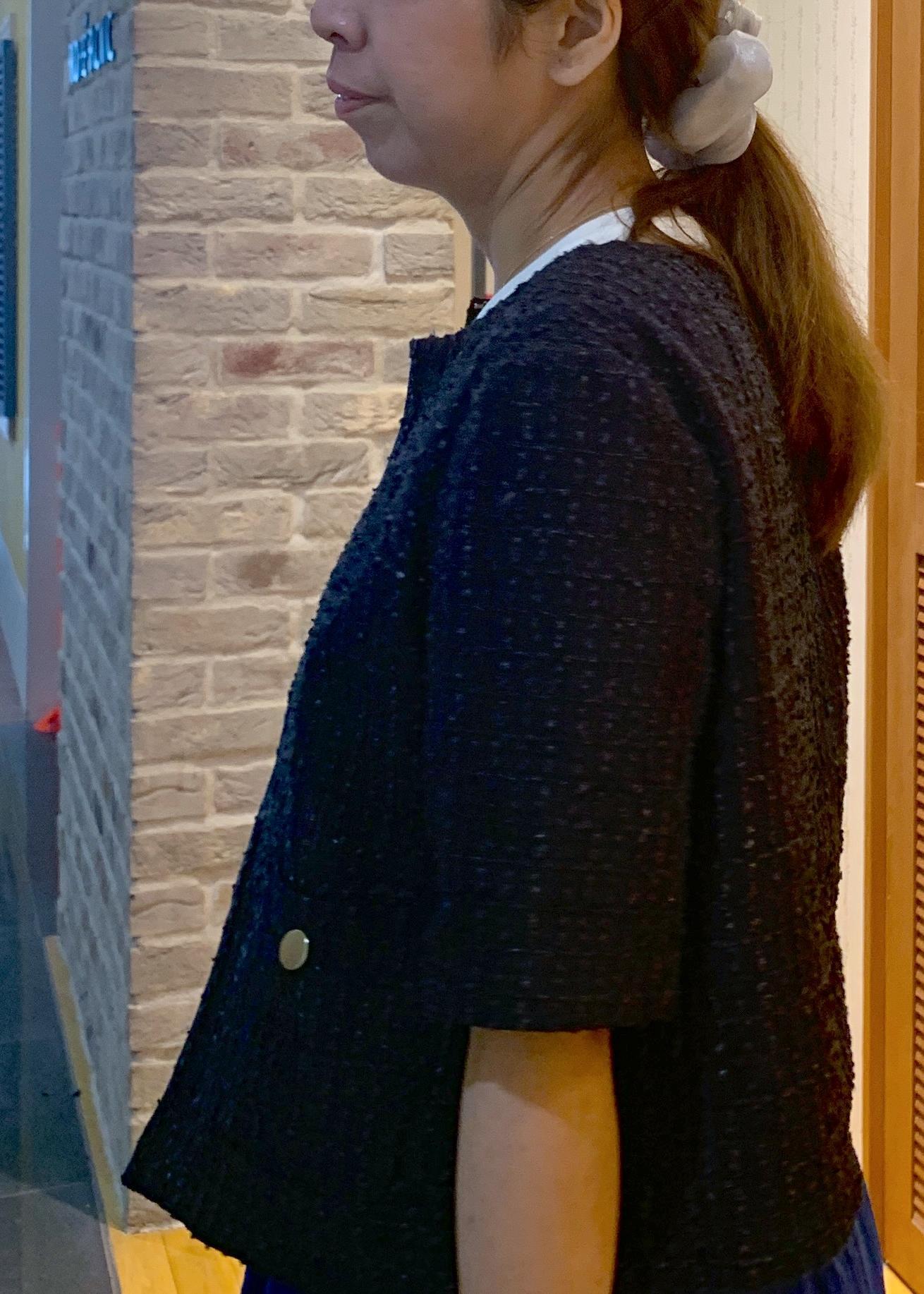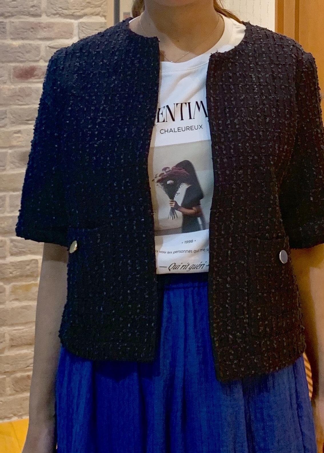 ツィード素材ですが薄手で軽いのでこれからの時期にさらっと羽織れて便利です!