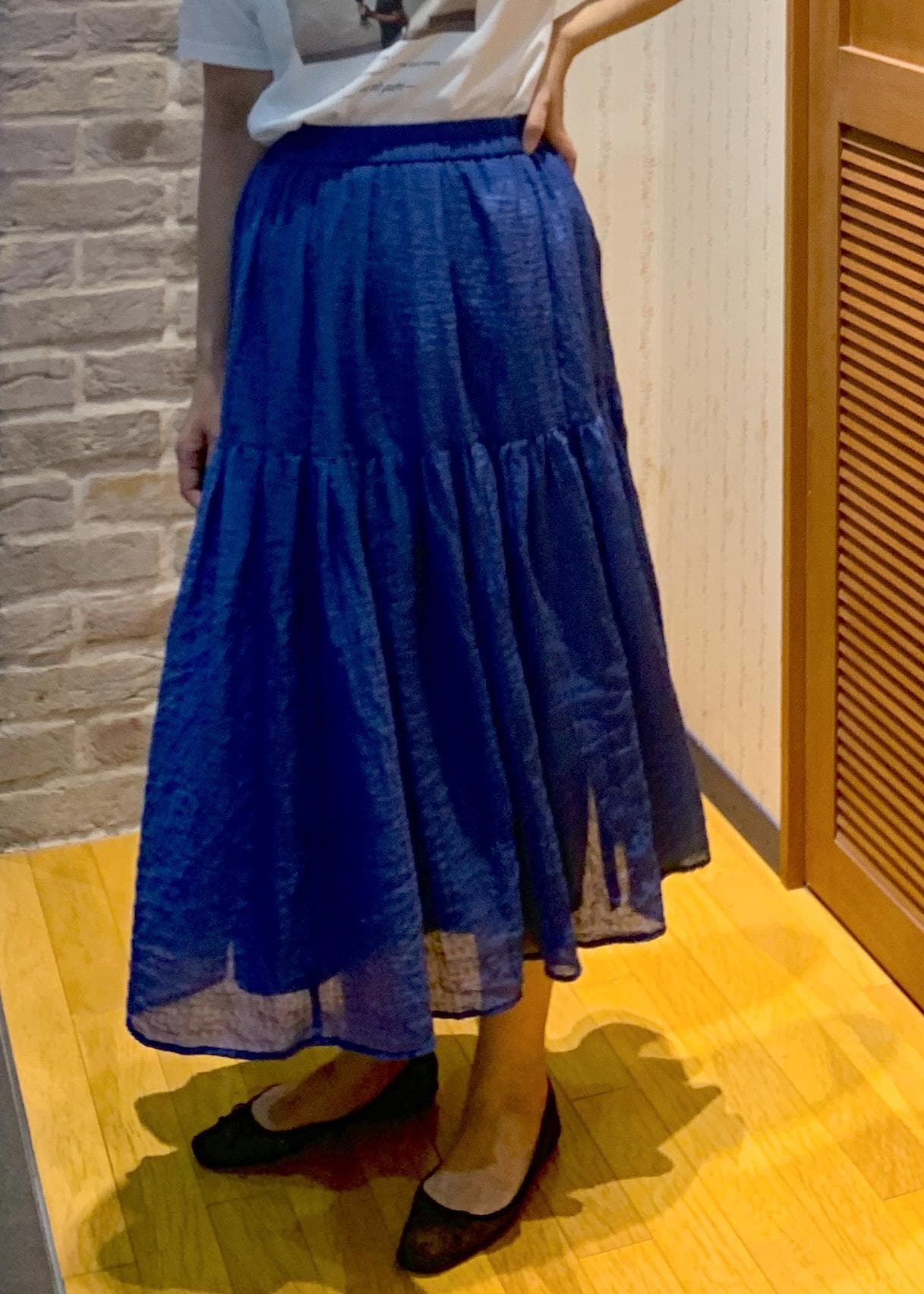シアー感が涼しげなしぼ素材のティアードスカートです。