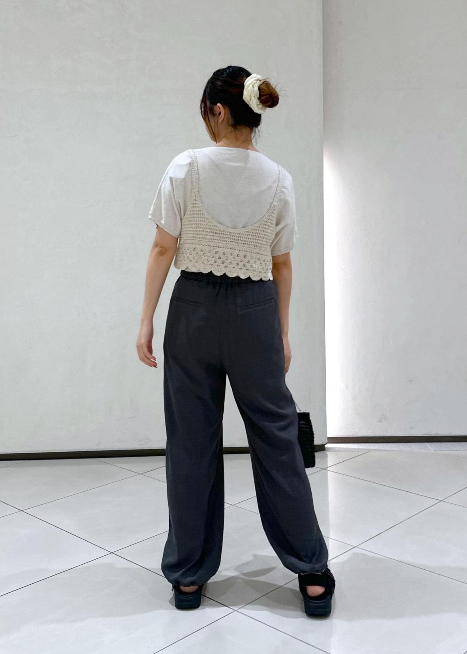 アウトレットROPÉ PICNICドロストリラックスイージーワイドパンツチャコール / 38¥3,842レビュードローコード付きで裾絞れるキレイめパンツ♪