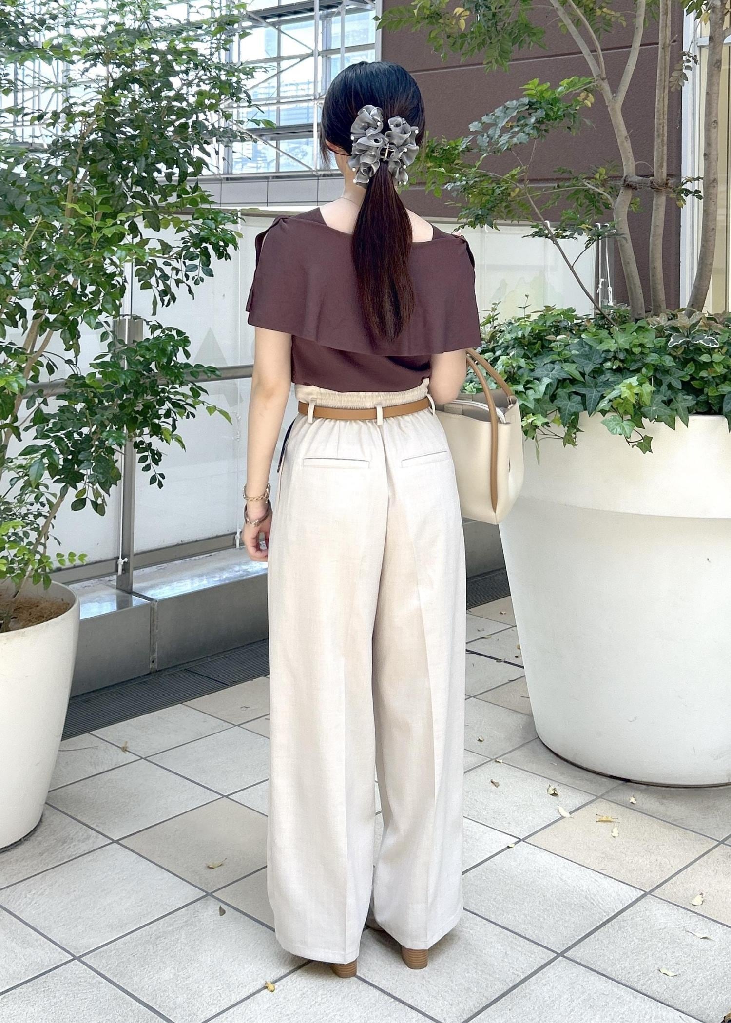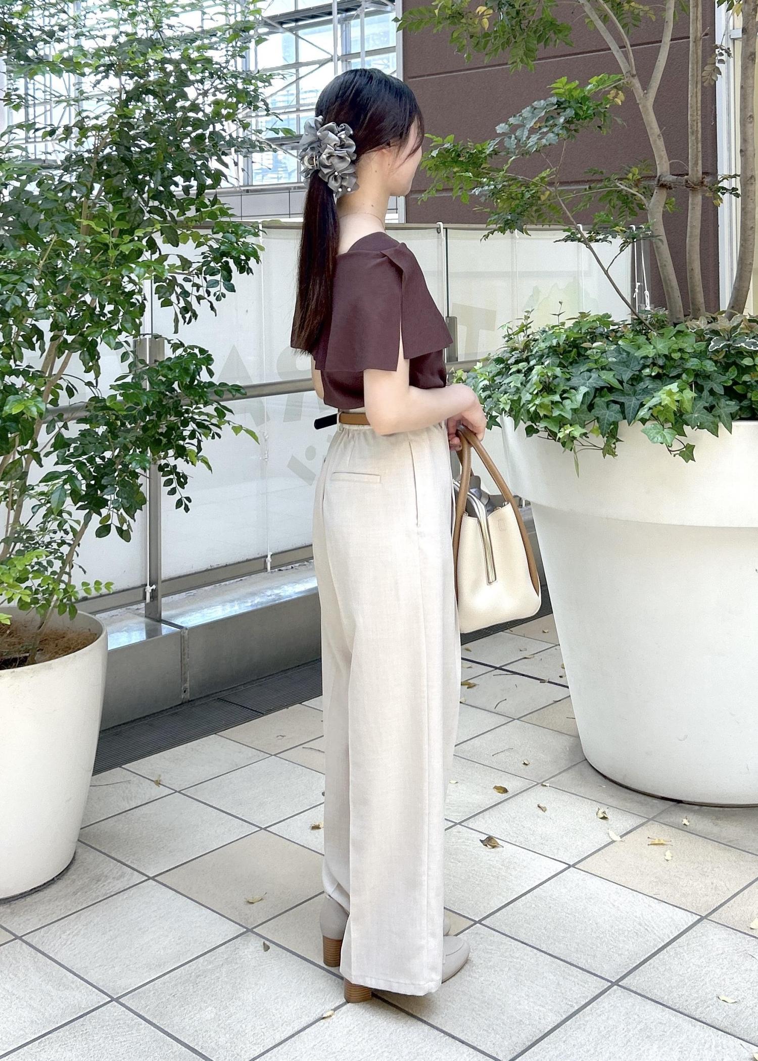 ワイドシルエットで足のラインを拾わないため体型カバー◎