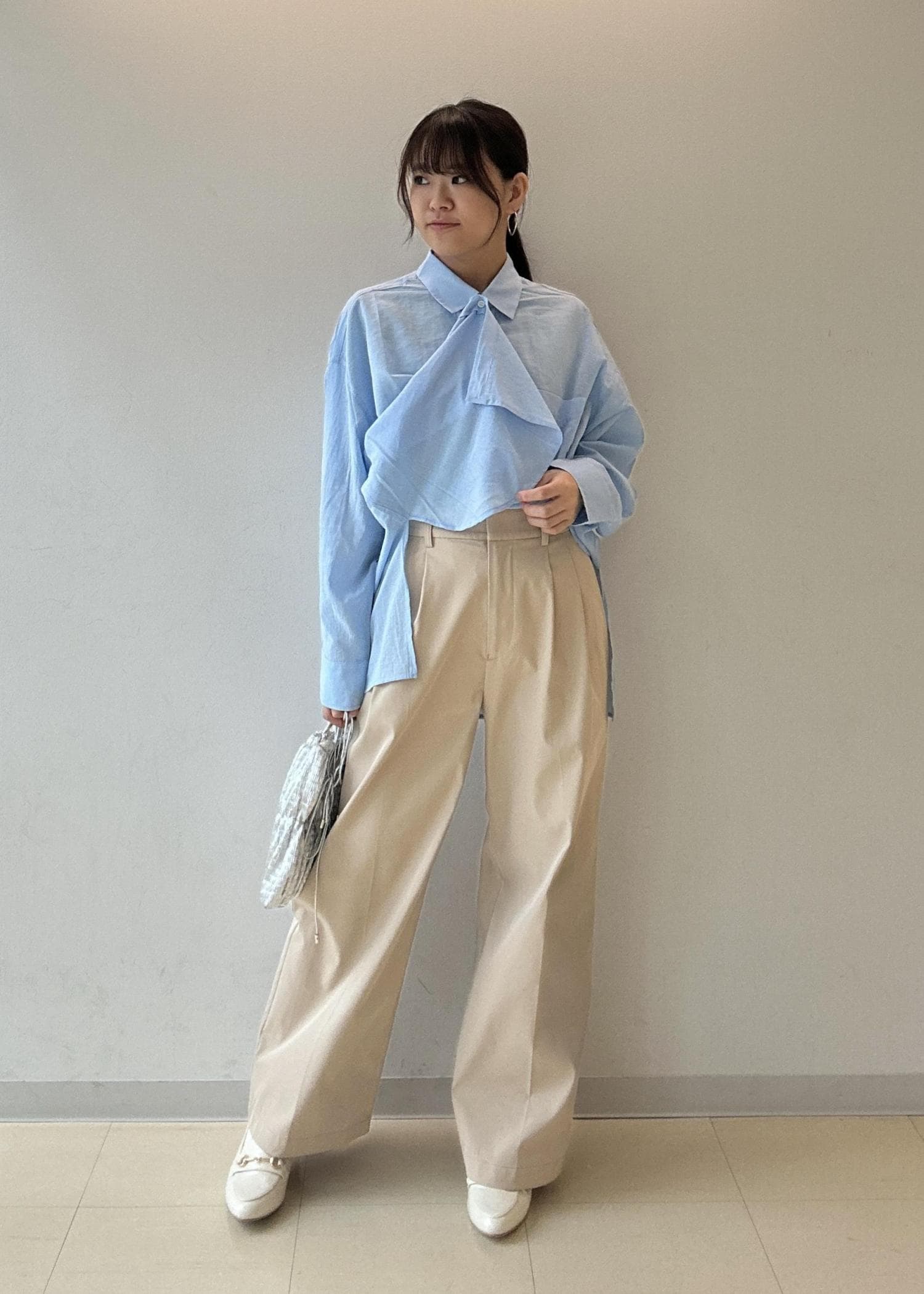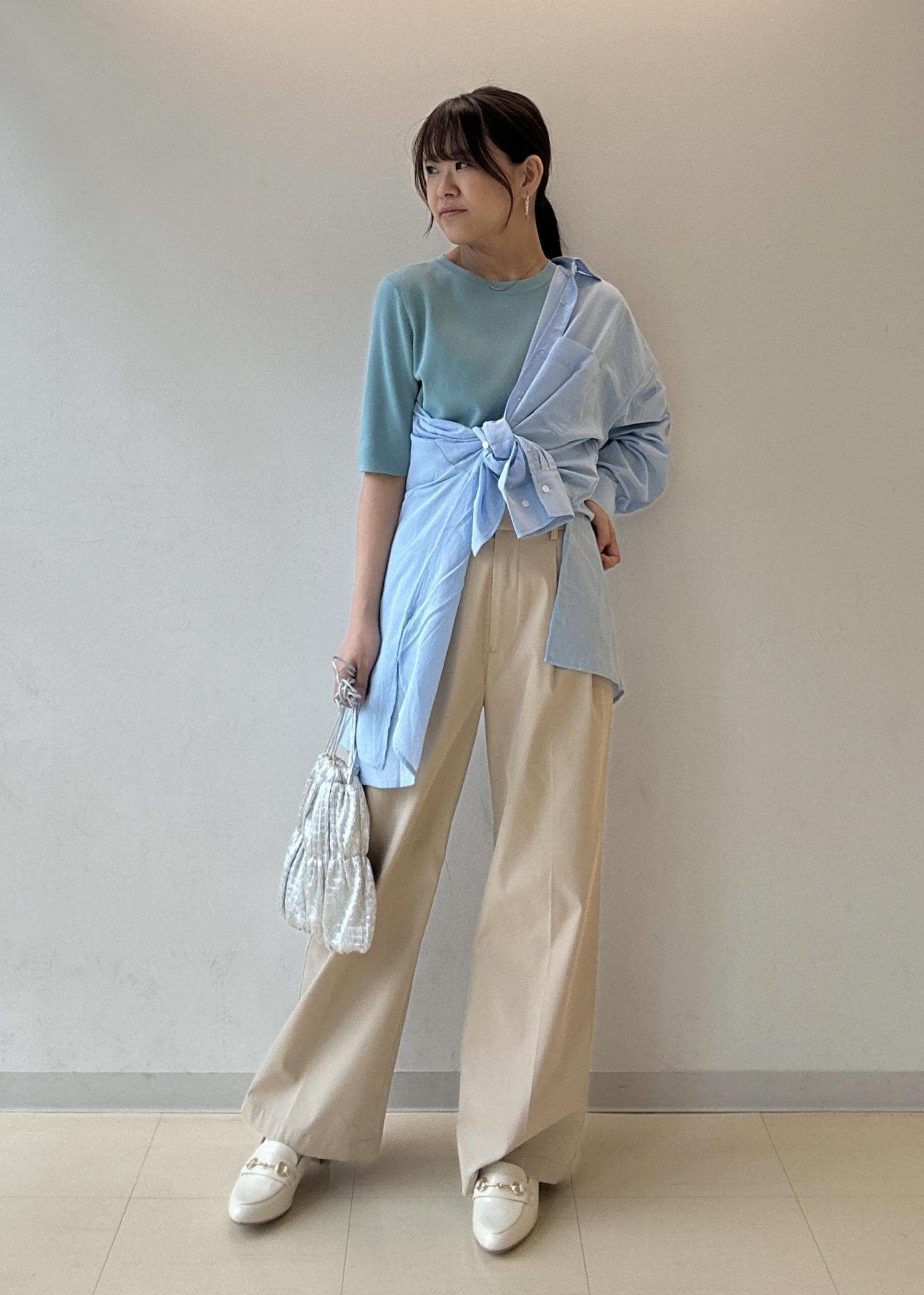 シャツ一枚で様々なアレンジができるので、色々アレンジをし撮影してみました。一枚でこんなに印象が変わるの!?と驚くのではないでしょうか!