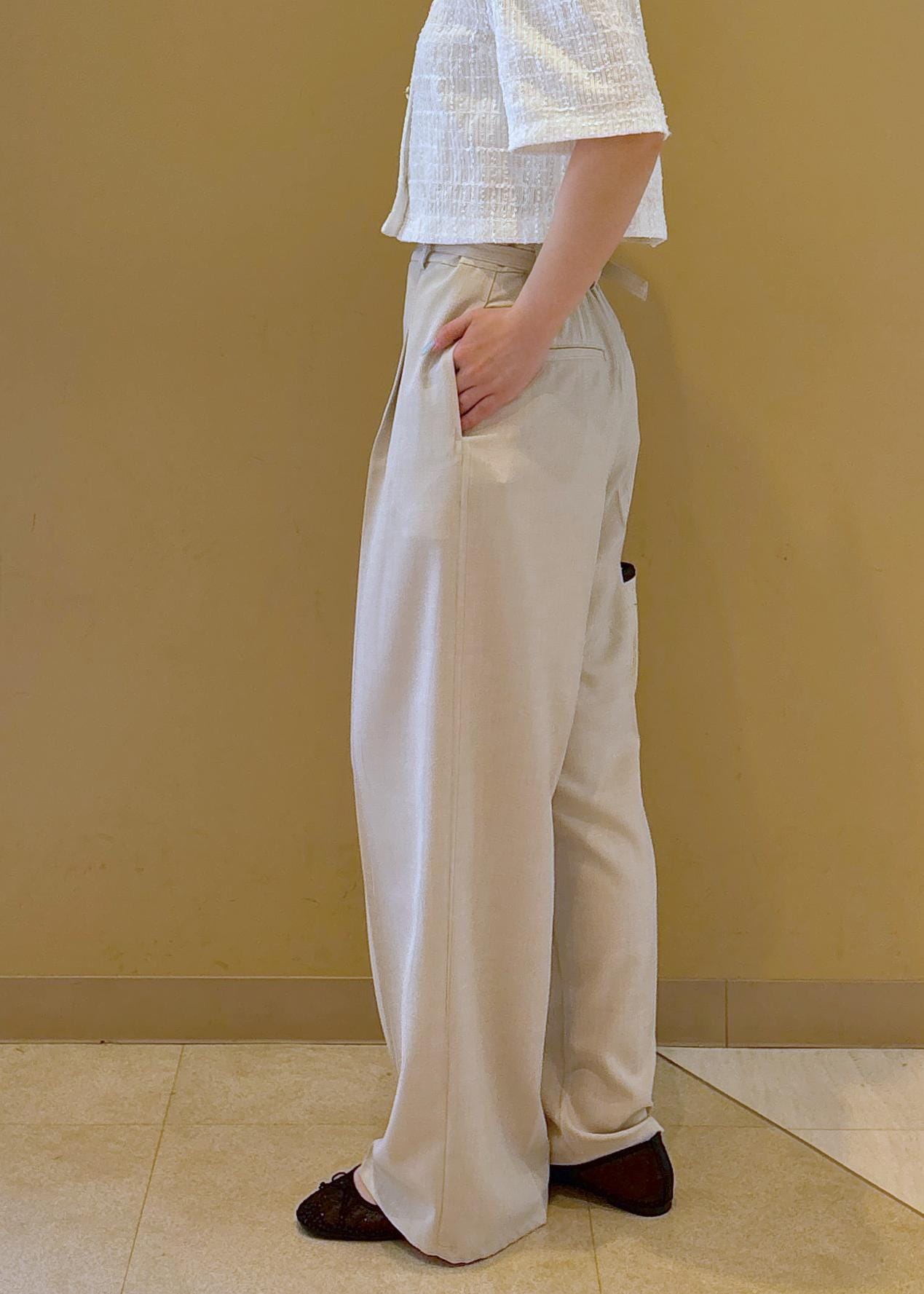 ROPÉ PICNIC【抗菌防臭・接触冷感・UVカット】カナパハイウエストパンツ/セットアップ対応ベージュ / 38¥5,489レビューワンタック入りのワイドシルエットで落ち感のある素材なので脚のラインを拾わずに着用できます。161cm36サイズでくるぶしが隠れるくらい、38サイズで足の甲にかかるくらいの丈感です。38サイズだとウエストが大きかったのですが、内側にアジャストがついておりベルトも付属なので調整できました◎