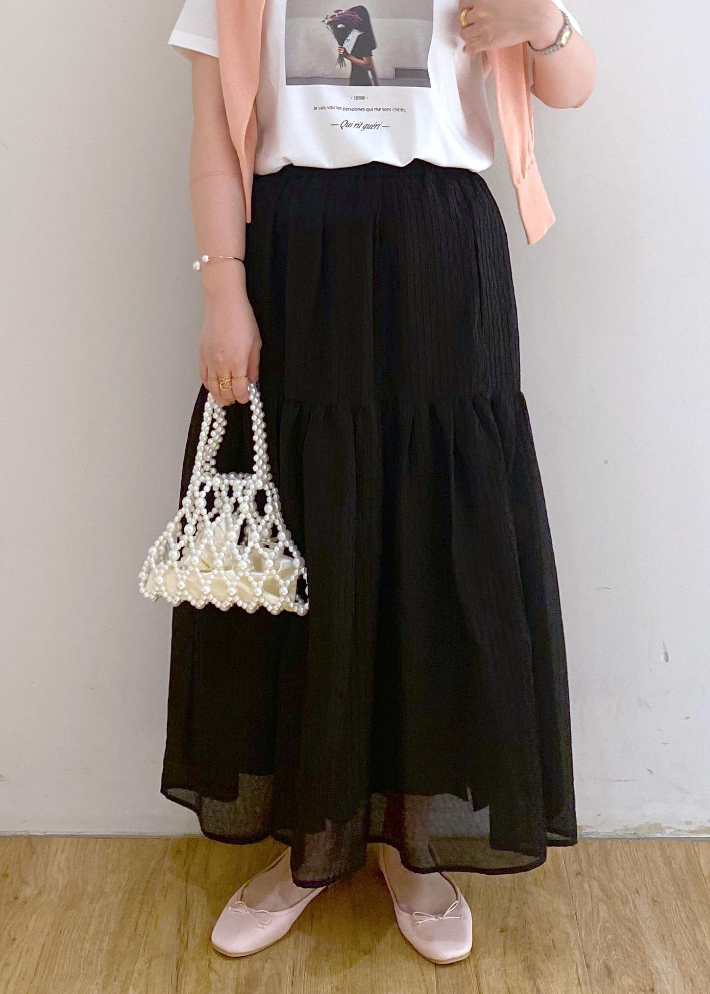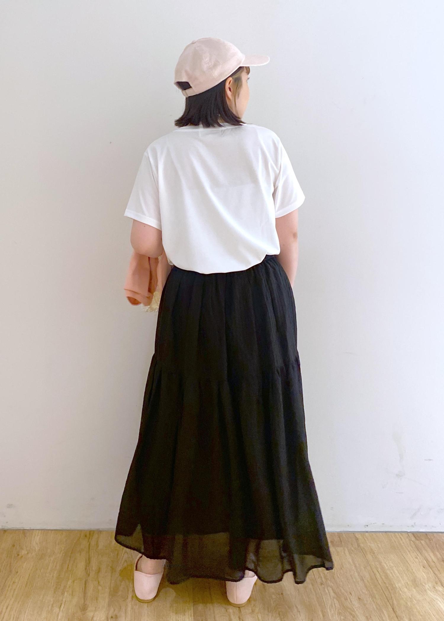 ROPÉ PICNICシアーティアードスカートブラック / 38¥5,995レビューティアードスカートですがボリュームが出過ぎないので骨ストさんでも安心して着用できそうです◎ウエストは総ゴム仕様なのでストレスなく着用できました☺︎