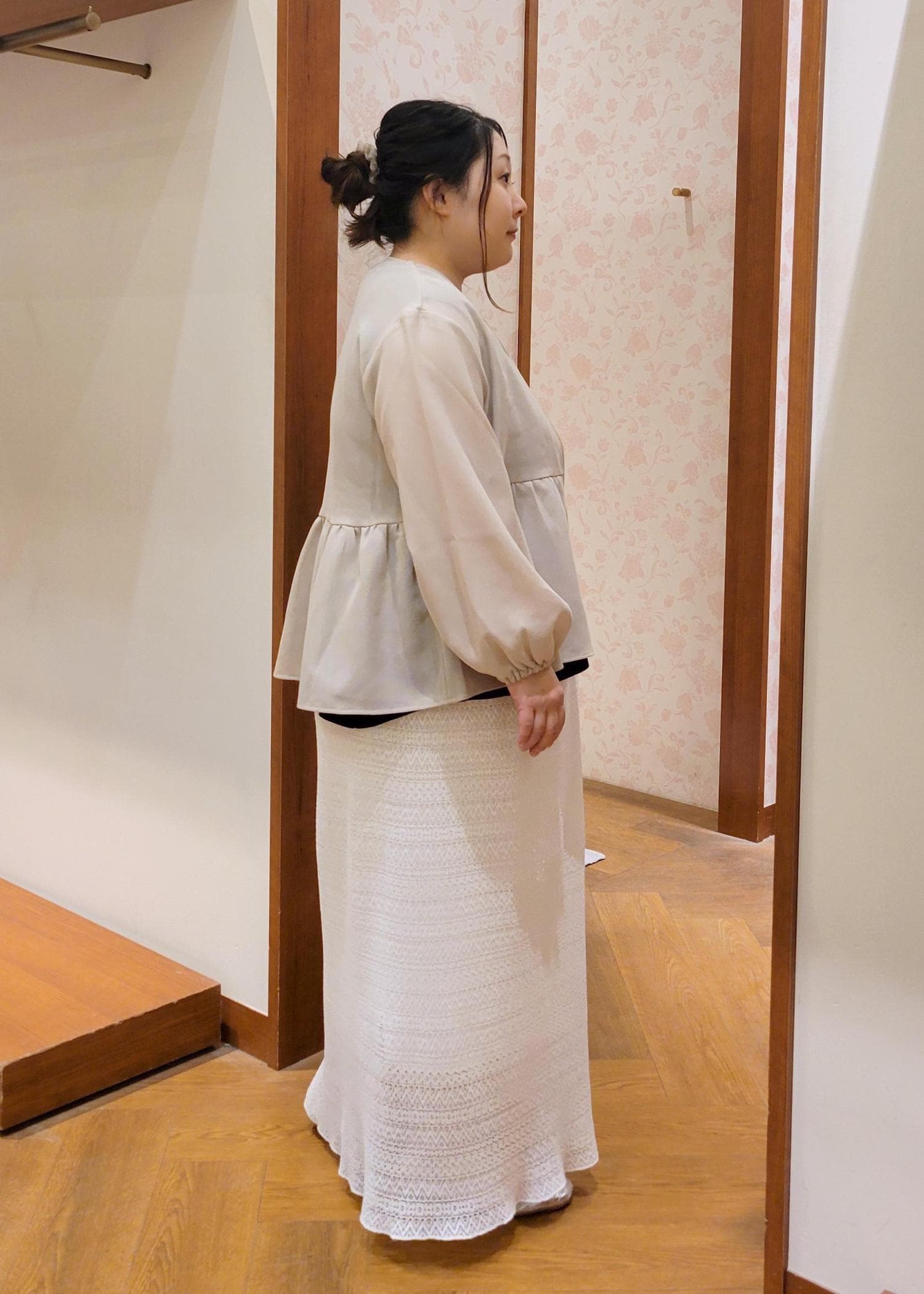 ペプラムデザインとボリュームスリーブなので気になるところをカバーしてくれます。 -