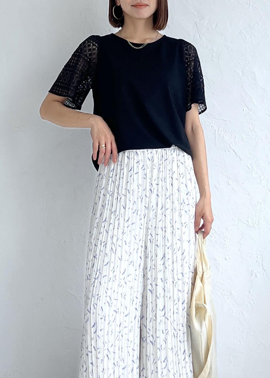 袖部分は透け感のあるレース生地で涼しげな印象に。