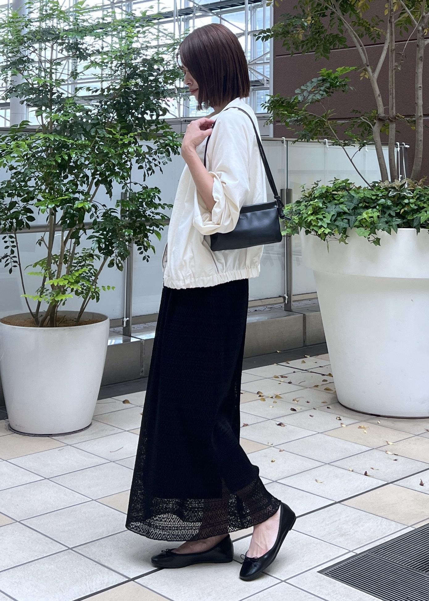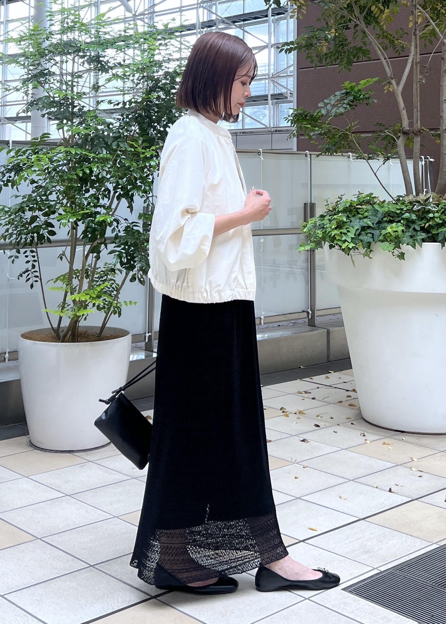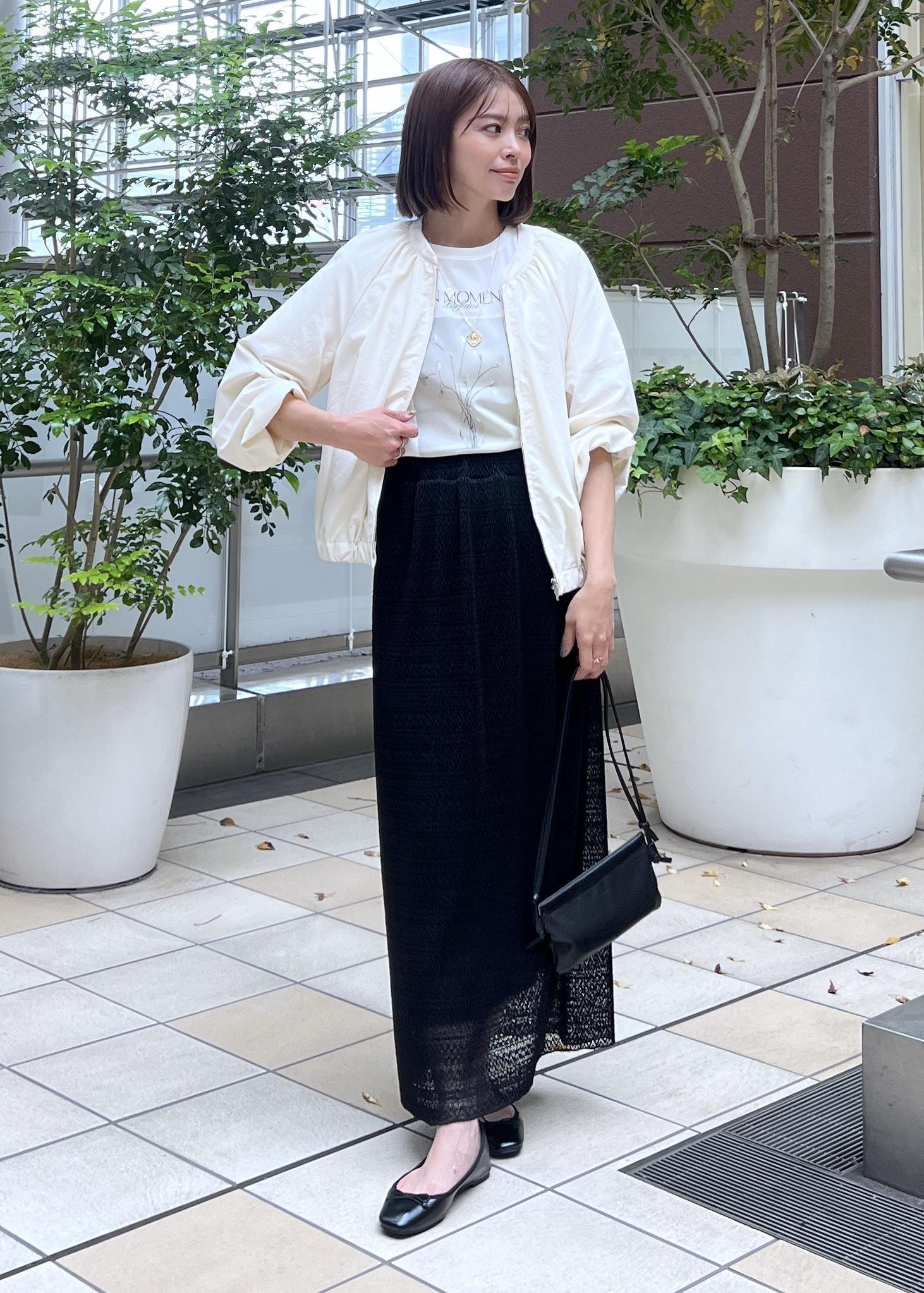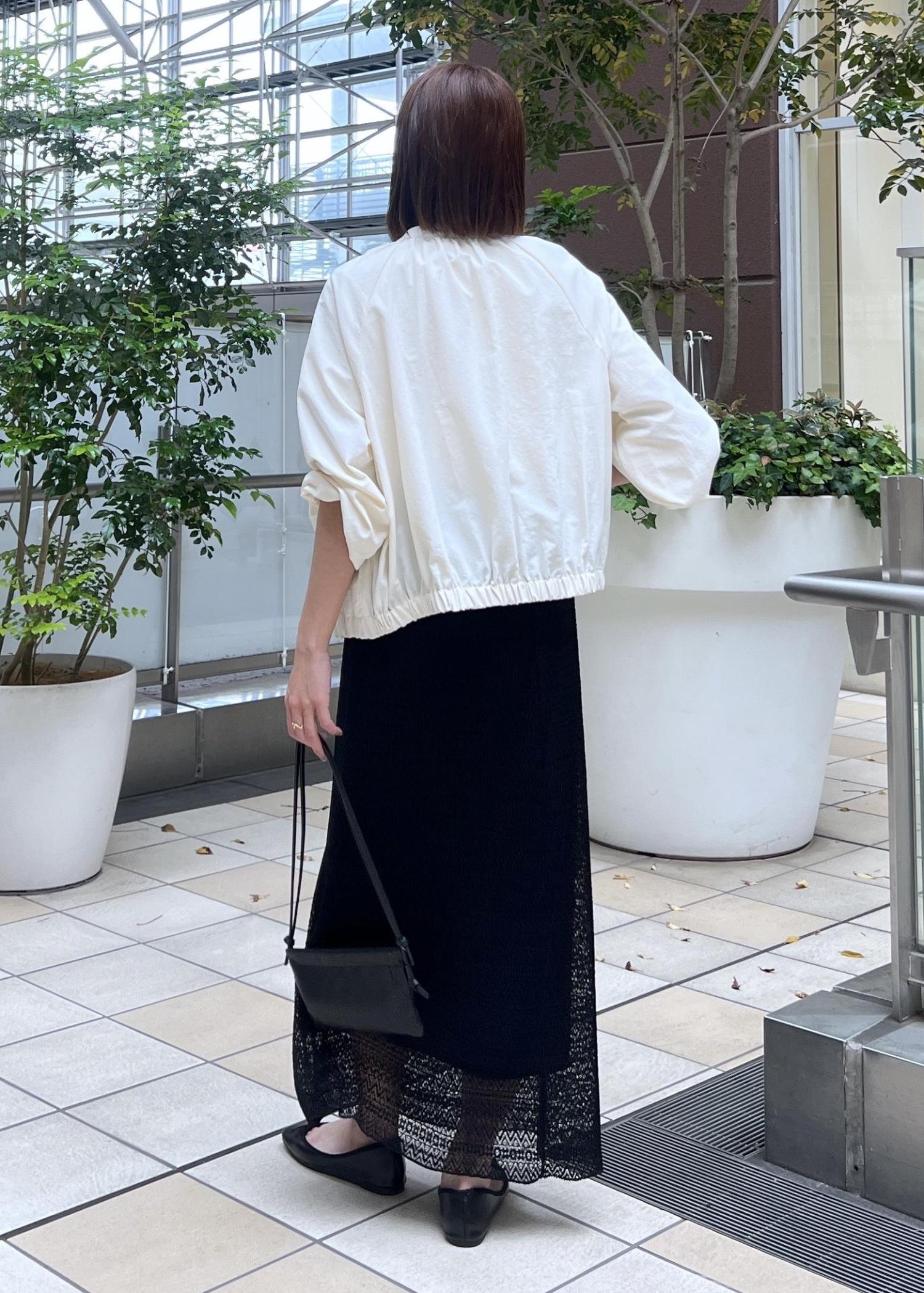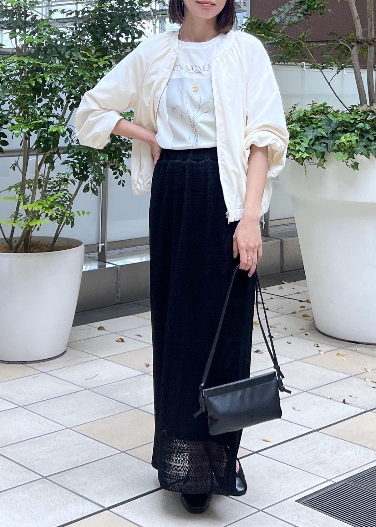 サラッと着やすいブルゾンは、きれいめカジュアルなコーデにも羽織りやすいアイテム。