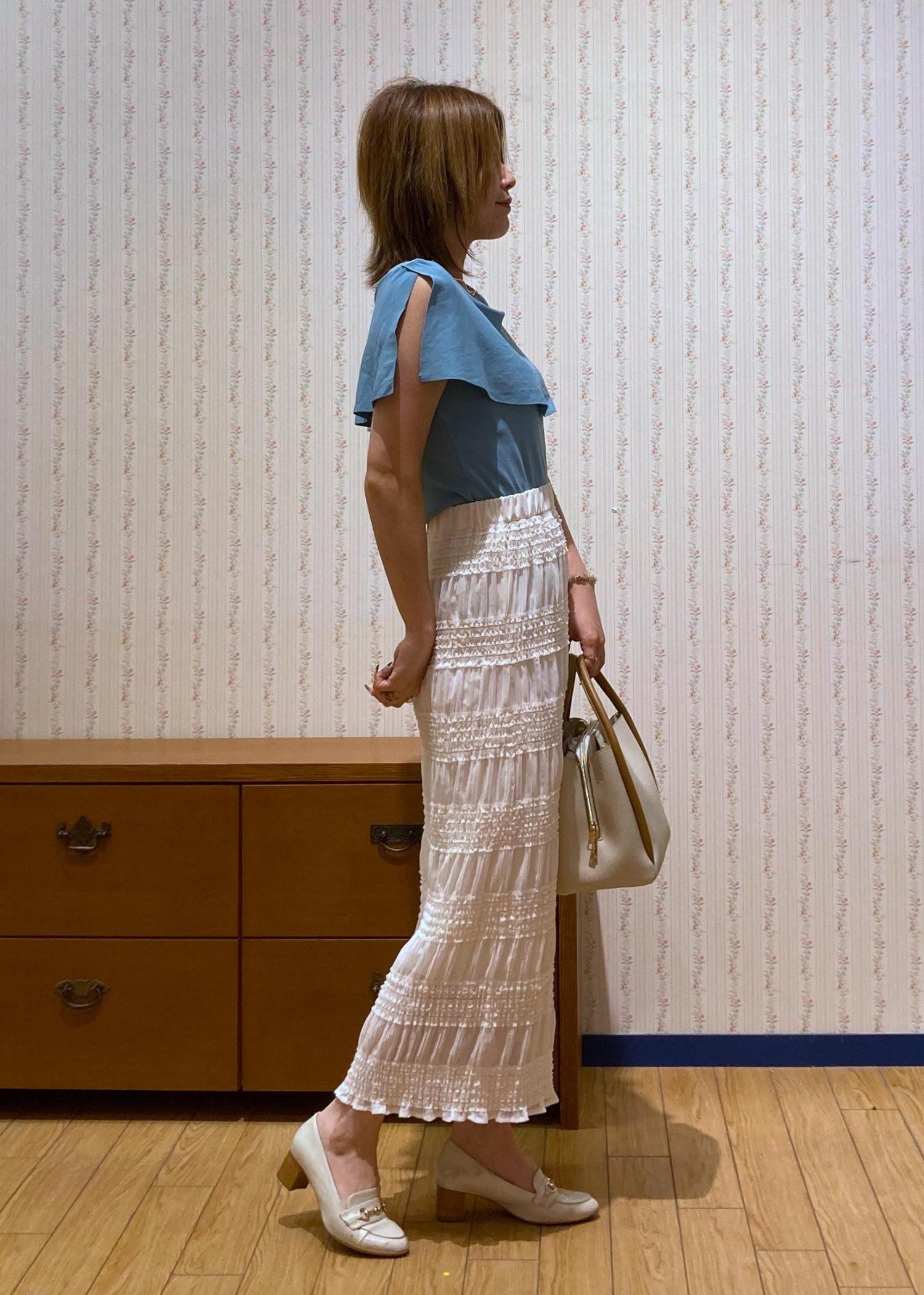 ROPÉ PICNICフリルギャザーロングスカートホワイト / 38¥6,490レビューウエスト総ゴムで履き心地抜群です!