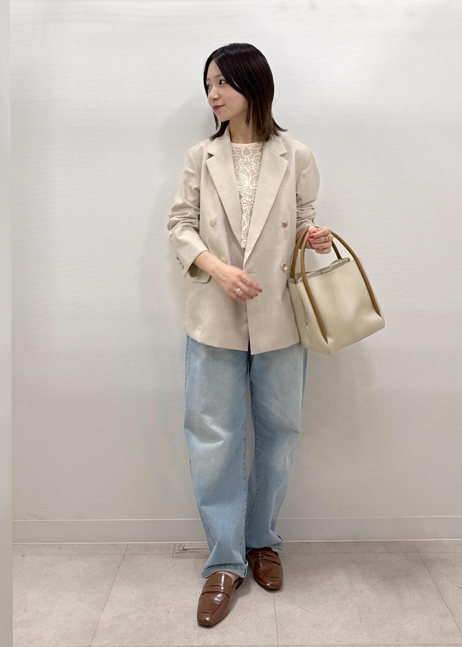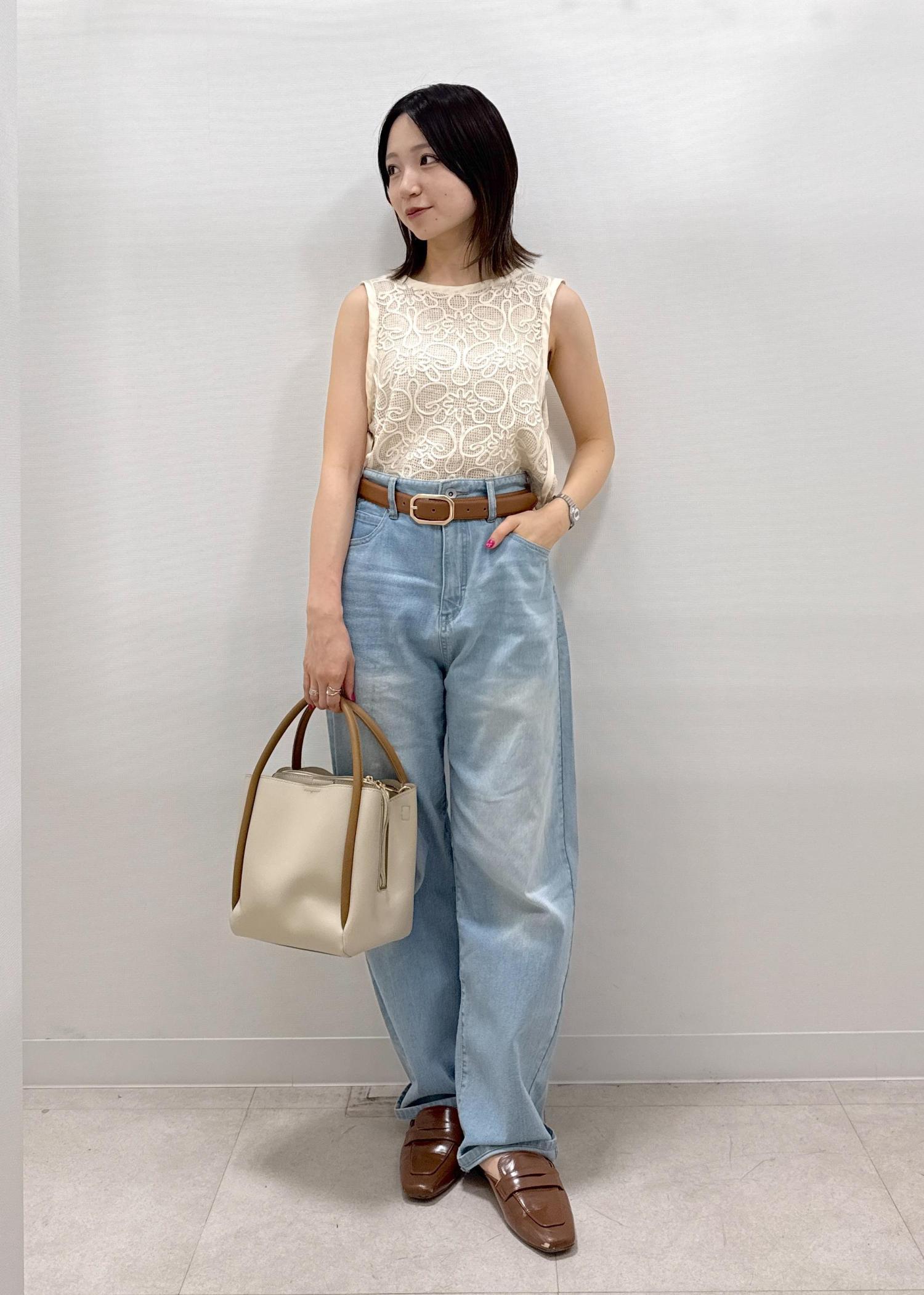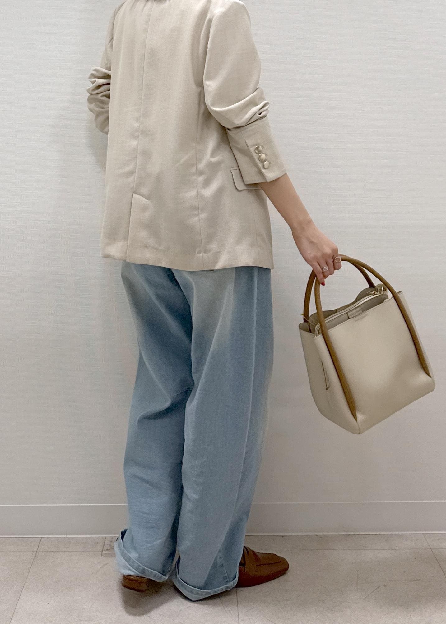 38サイズはコンパクトな印象ですっきりしたデザインのトップスでしたら合わせやすいと思います。
