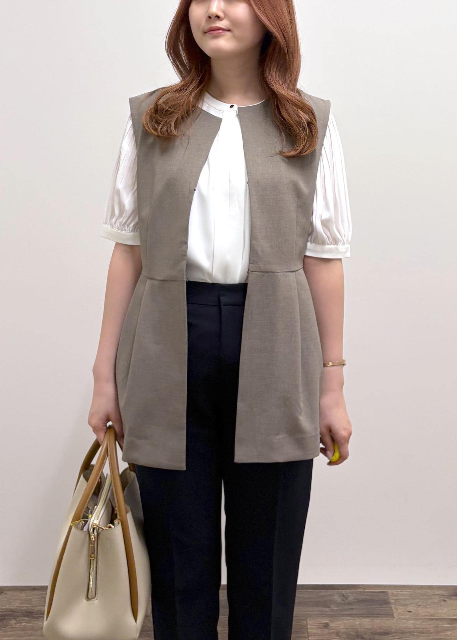 ペプラムジレは気になるお尻周りをカバーしてくれてスタイルよく見えます!