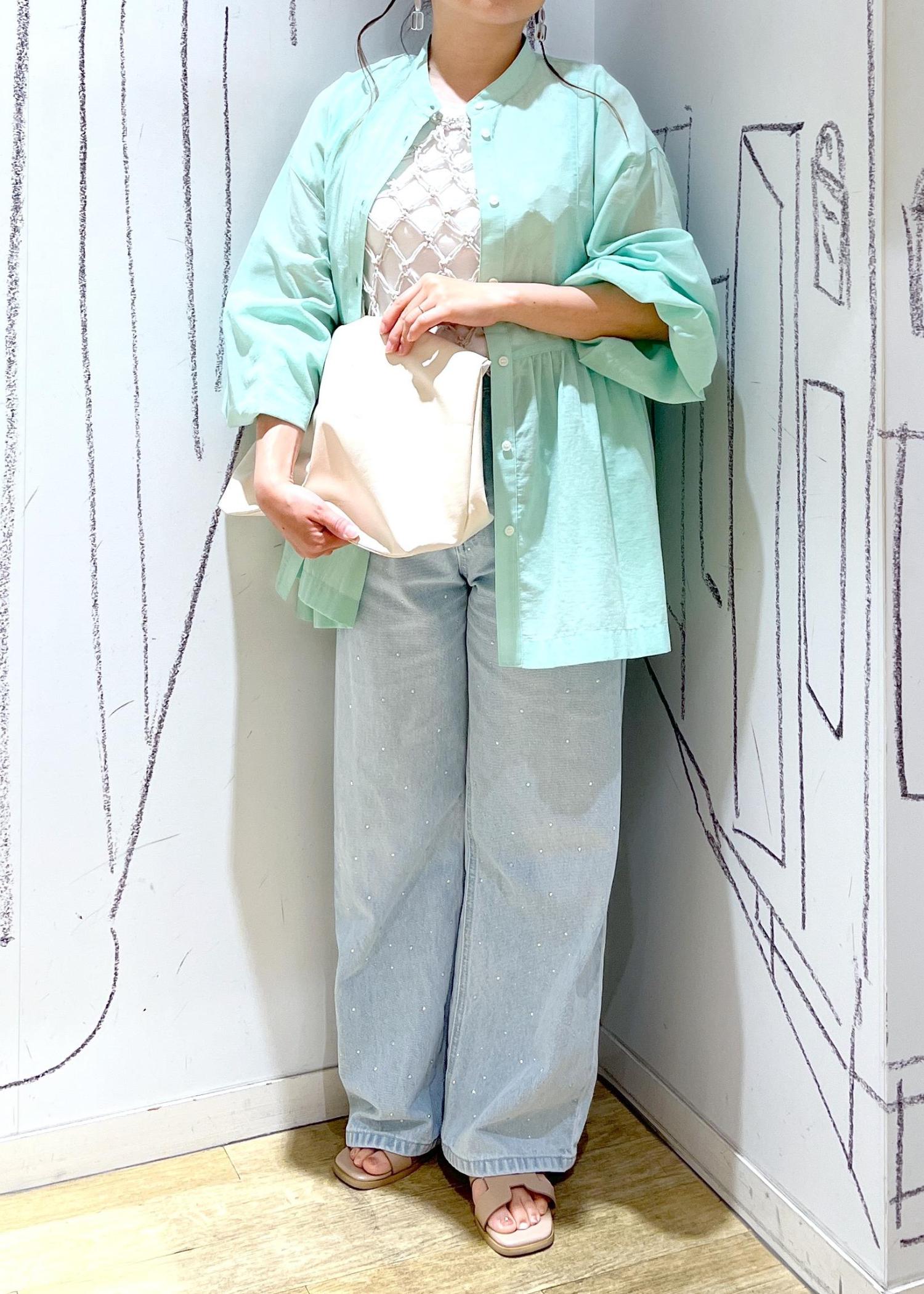 低身長ですが、ボリュームあるもの同士でも素材の軽い羽織りで合わせることでスッキリ着ることができるコーディネートです!ぜひお試し頂きたいです。