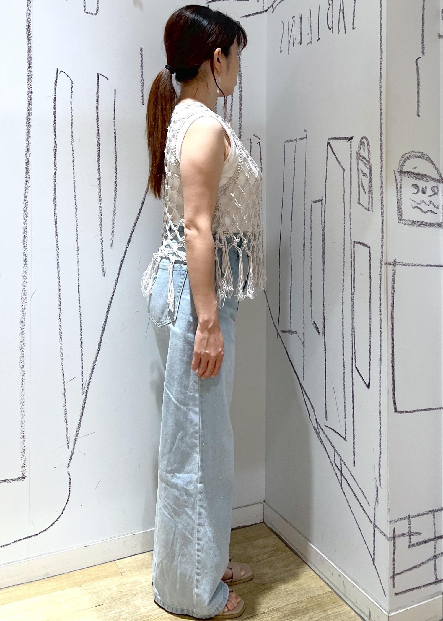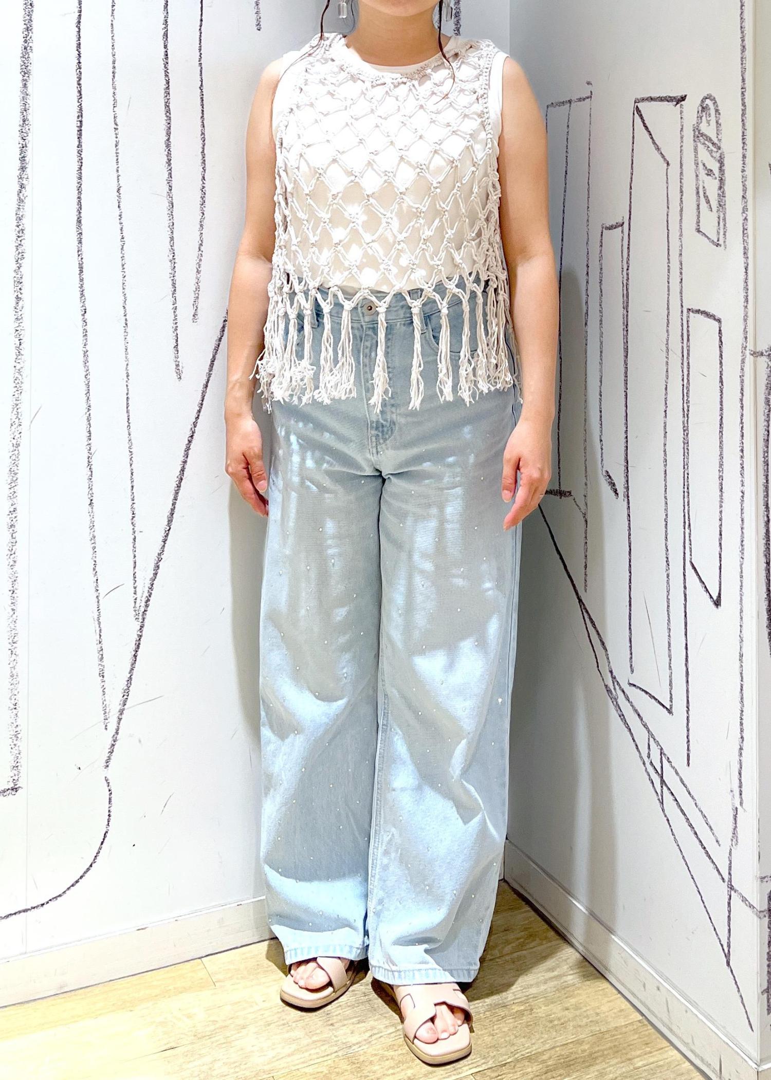 ROPÉ PICNIC【新色追加】キラキラビジューデニムブルー / 36¥7,491レビュー147cm、3cmヒールで着用しています。カットなしで履けます!お腹周りも窮屈でなく柔らかい素材で履き心地も良かったです。ビジューは裏地に響かず当たりがないので◎ワイド過ぎず小柄さんでもバランスが取れました!