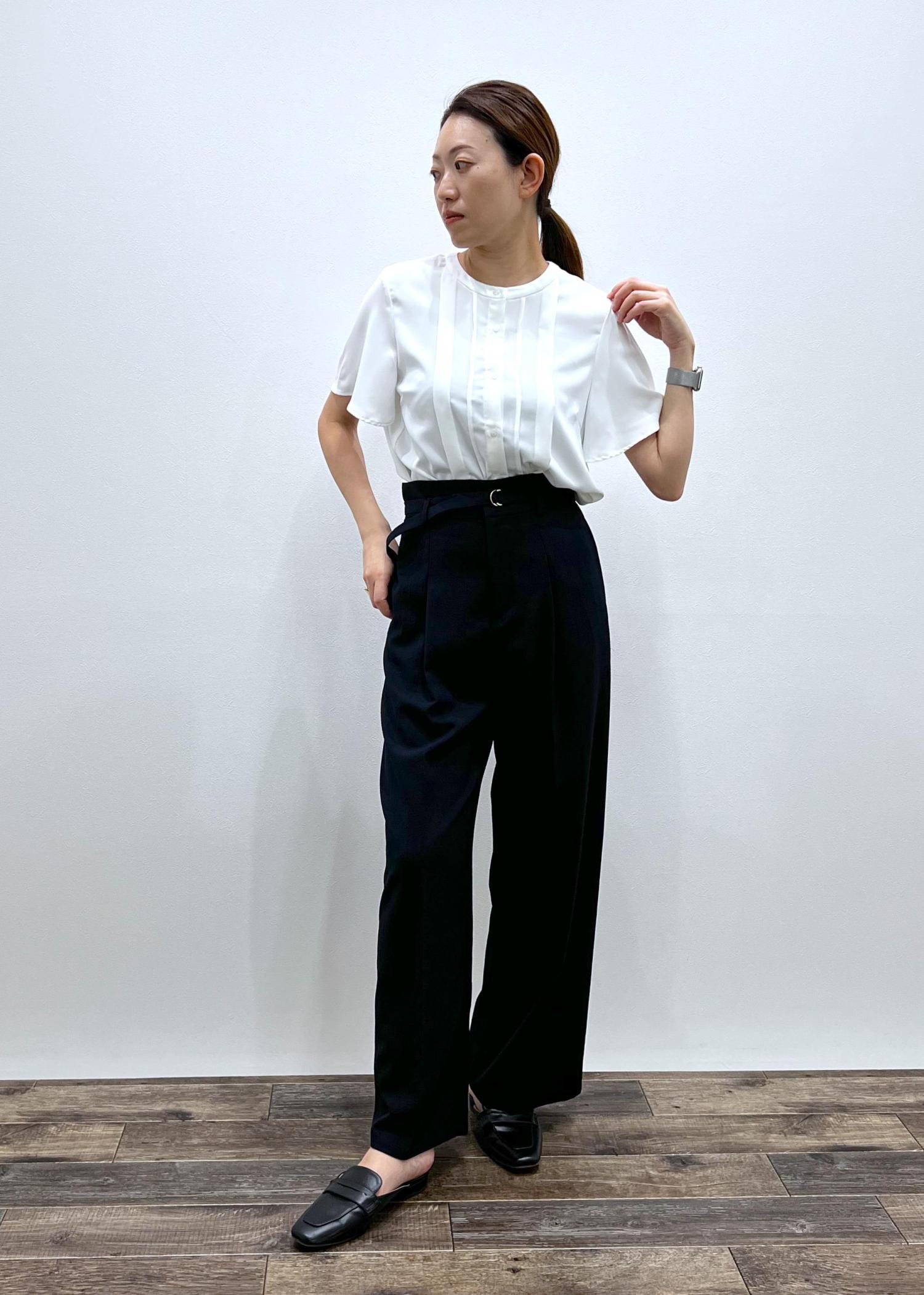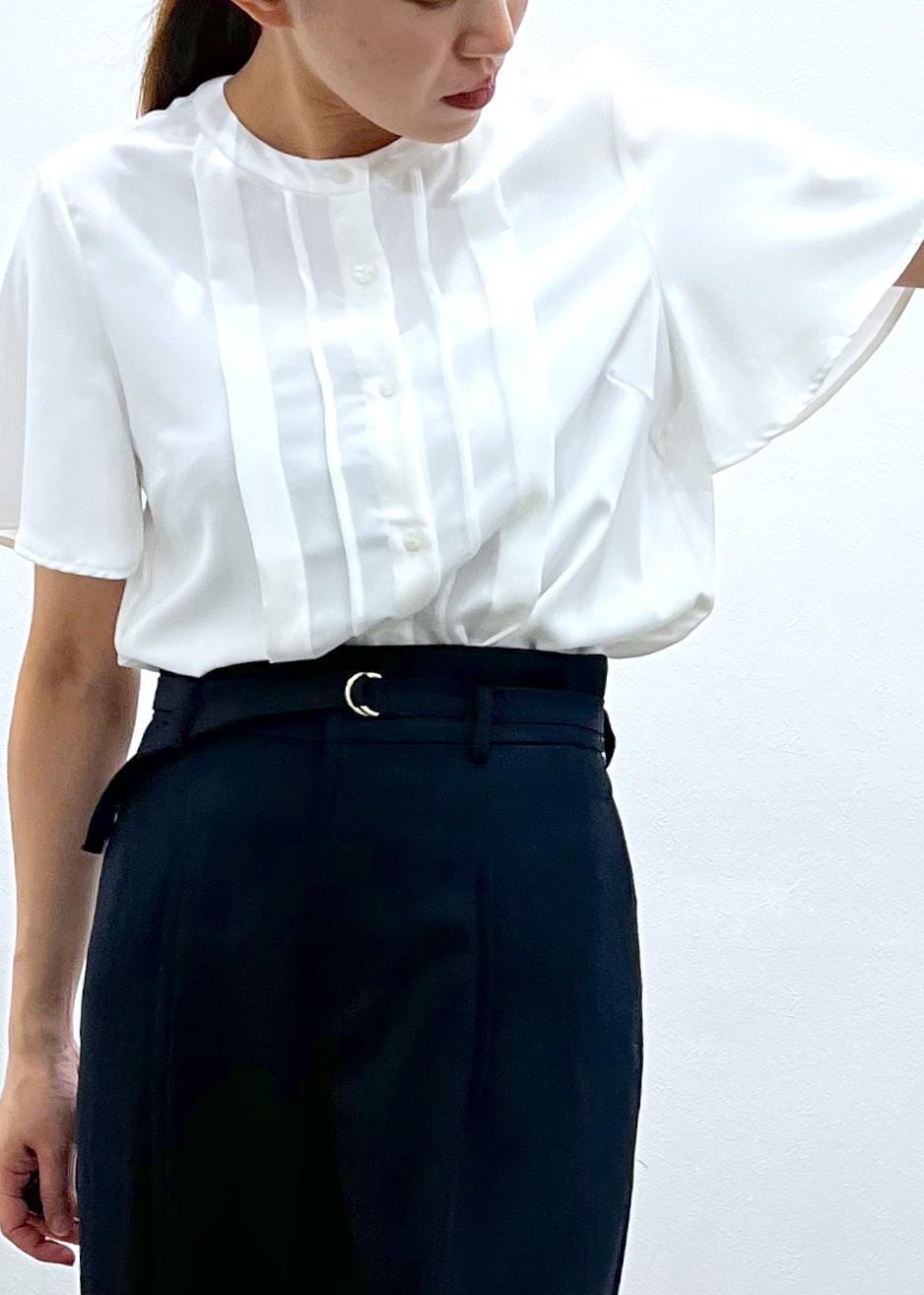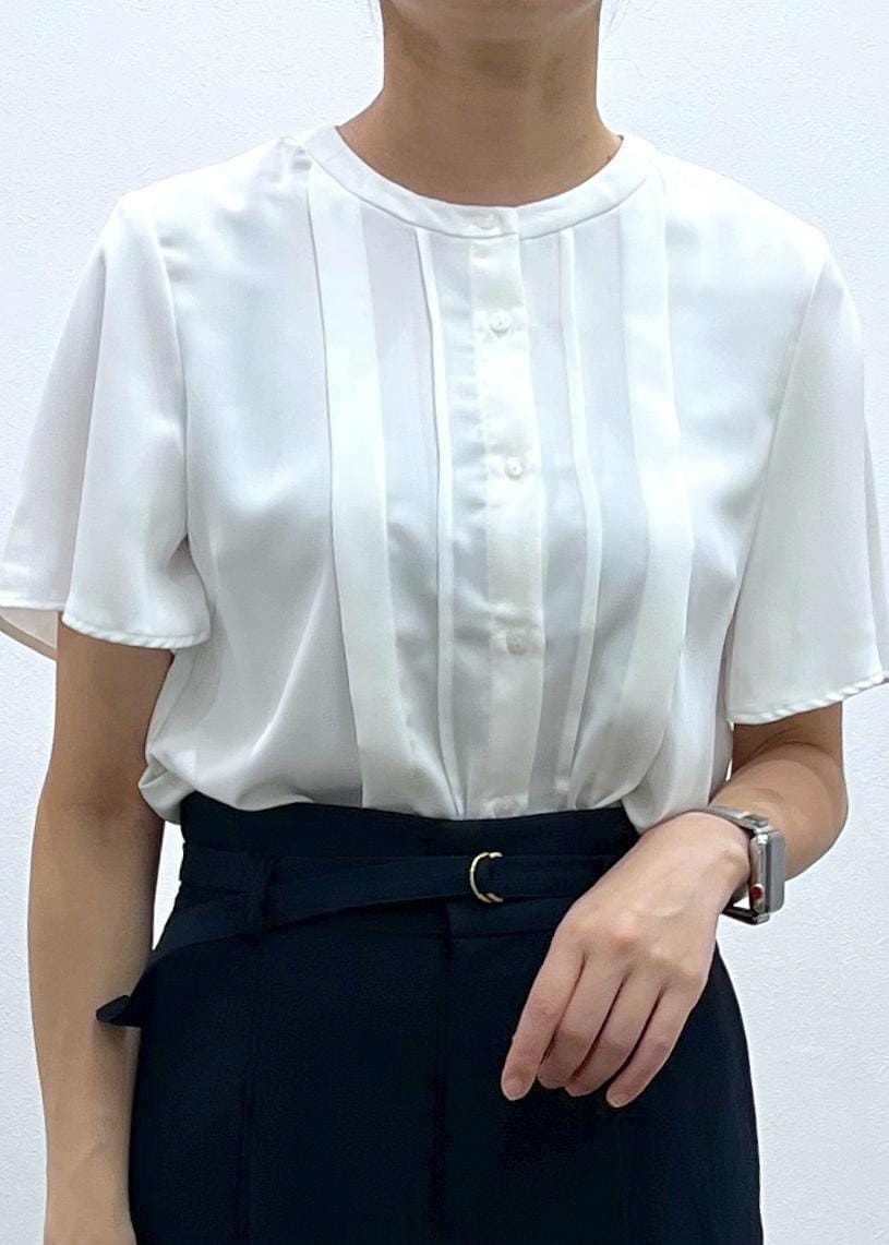 多機能ランダムタックハーフスリーブブラウス / 通勤にも