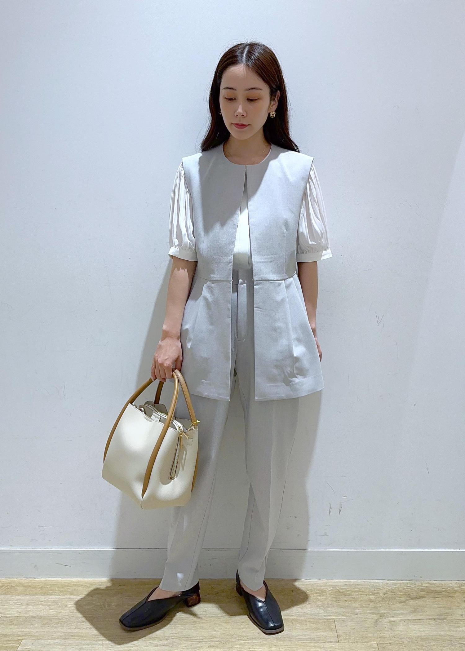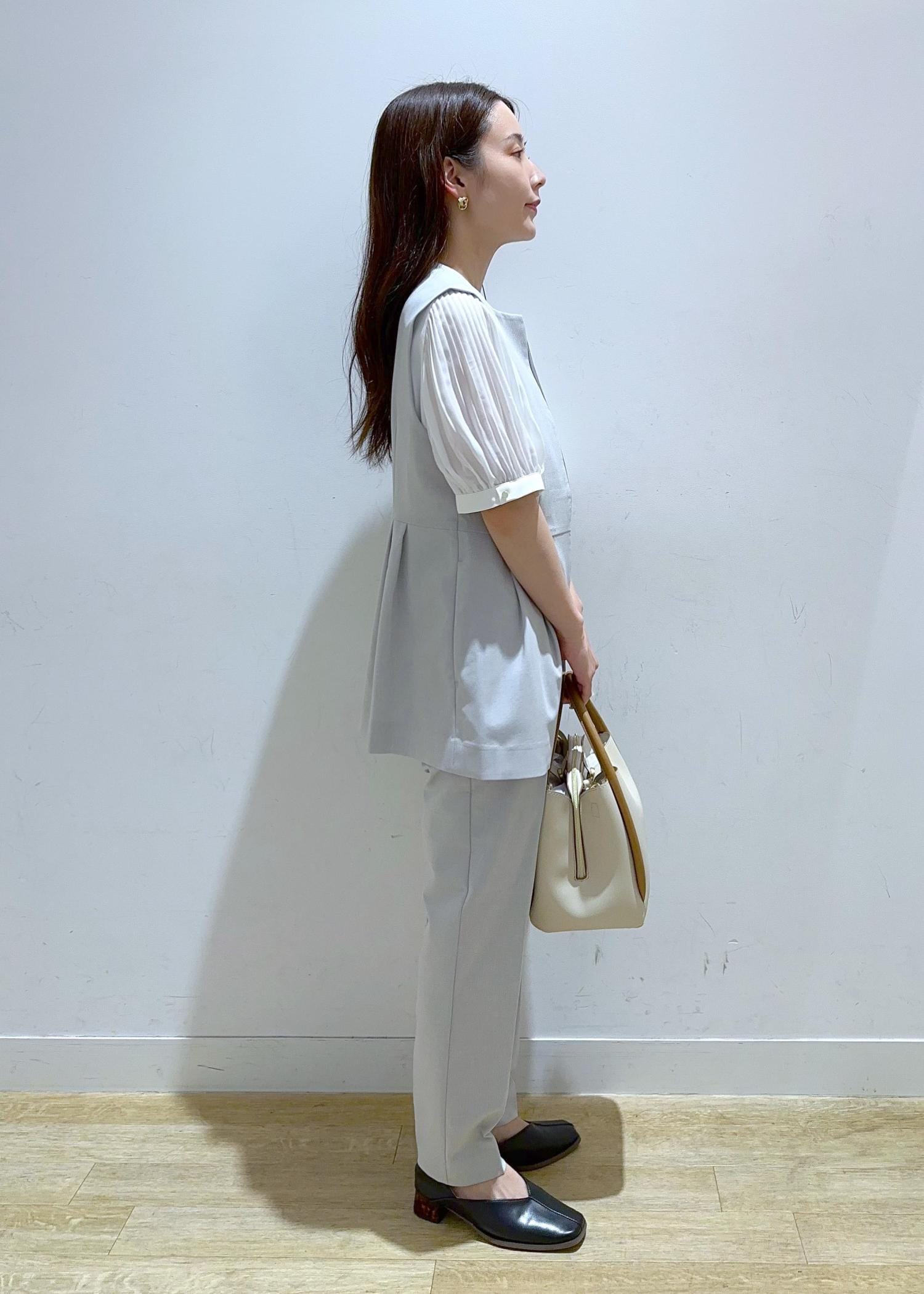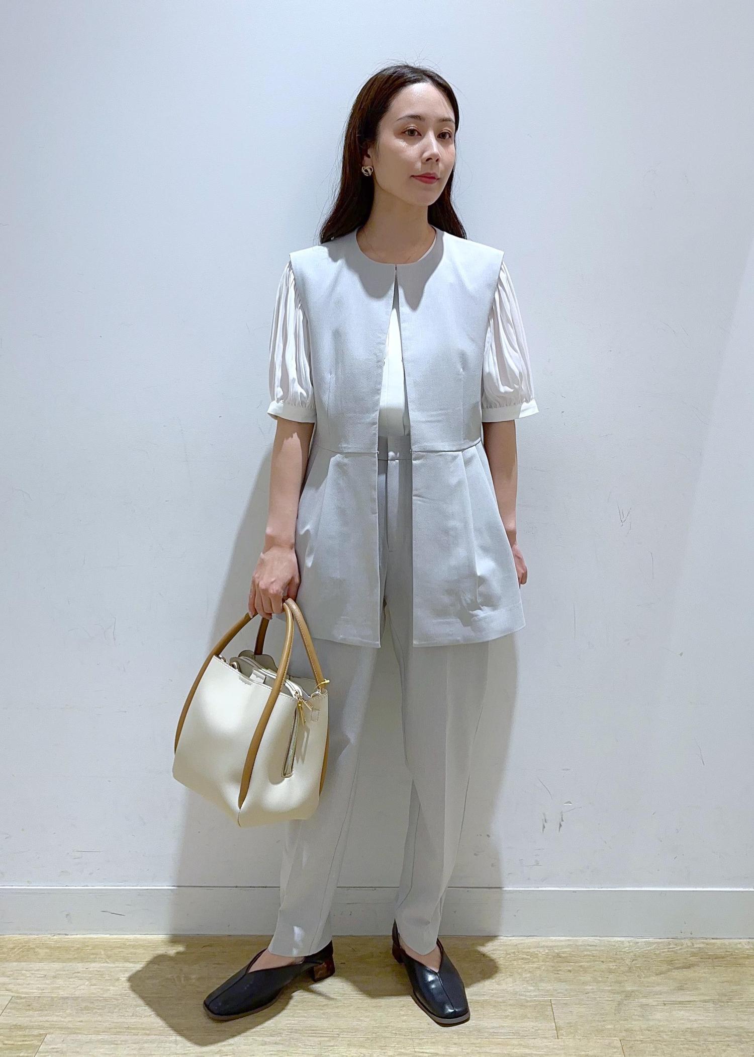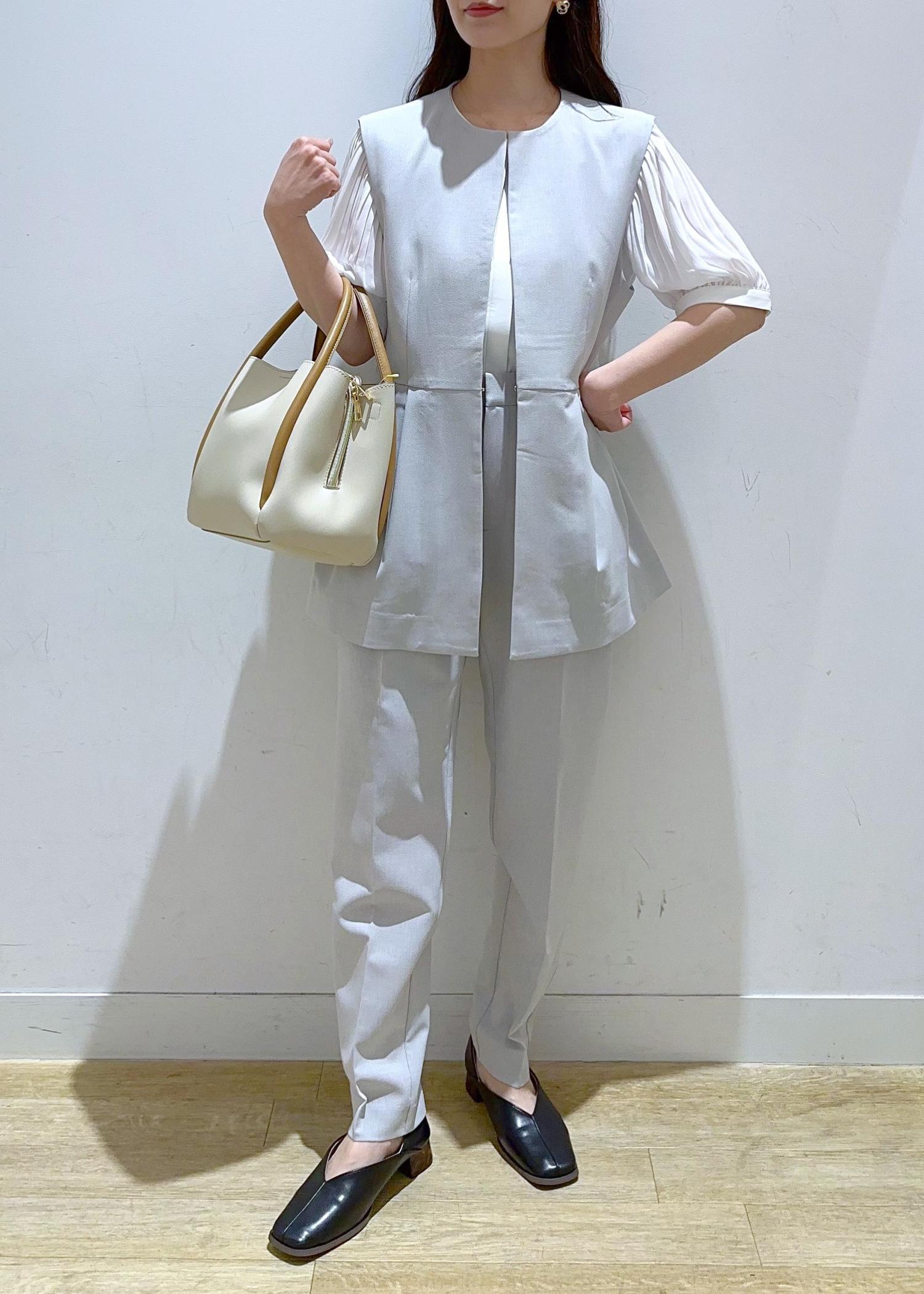 ペプラムジレとセットアップのパンツと組み合わせです!