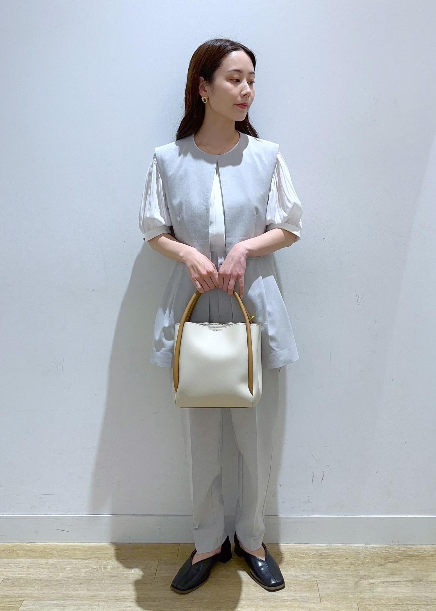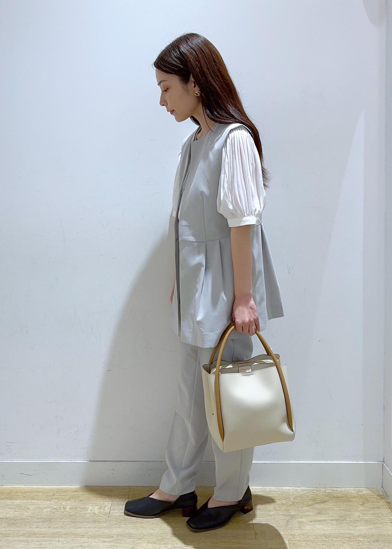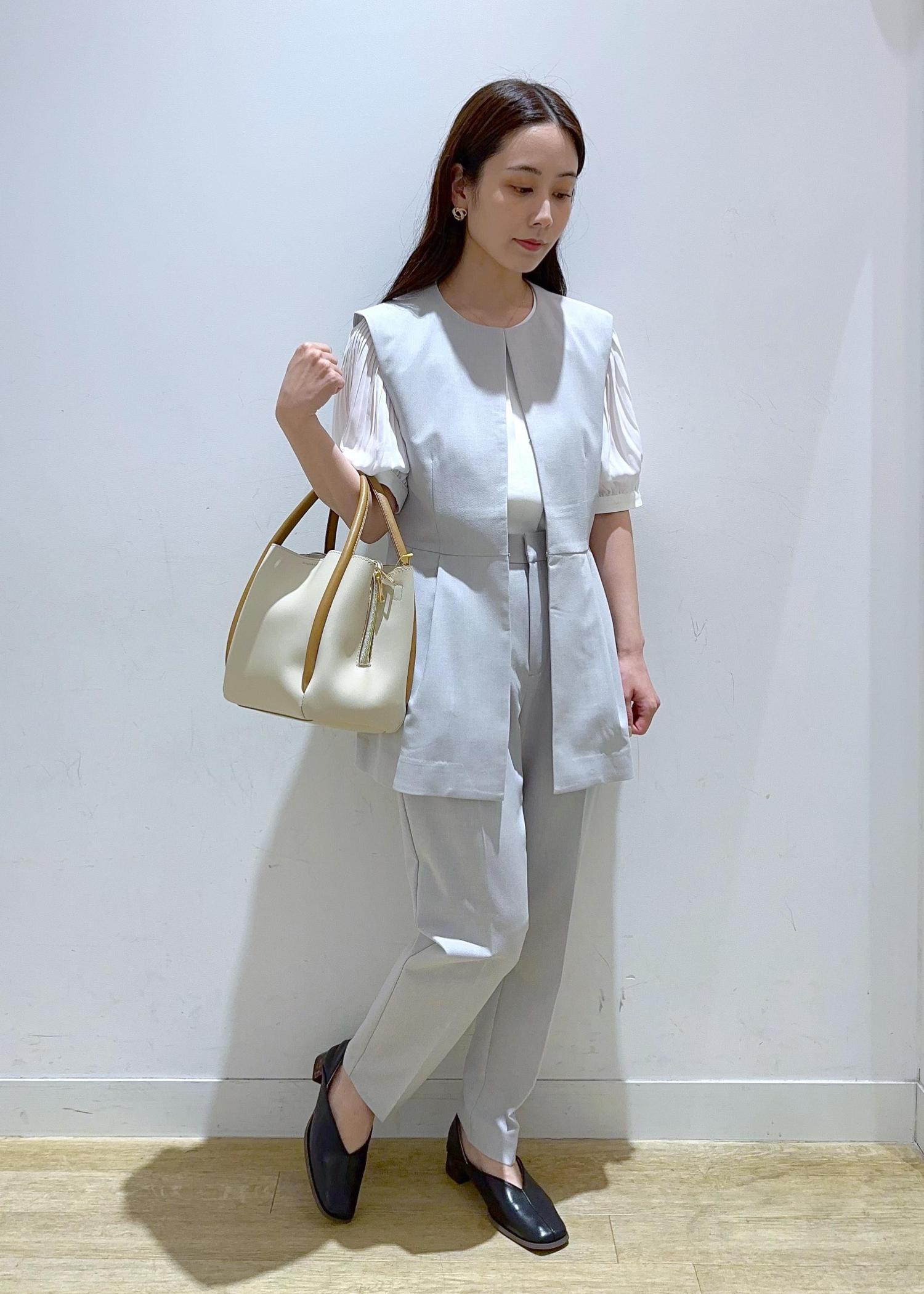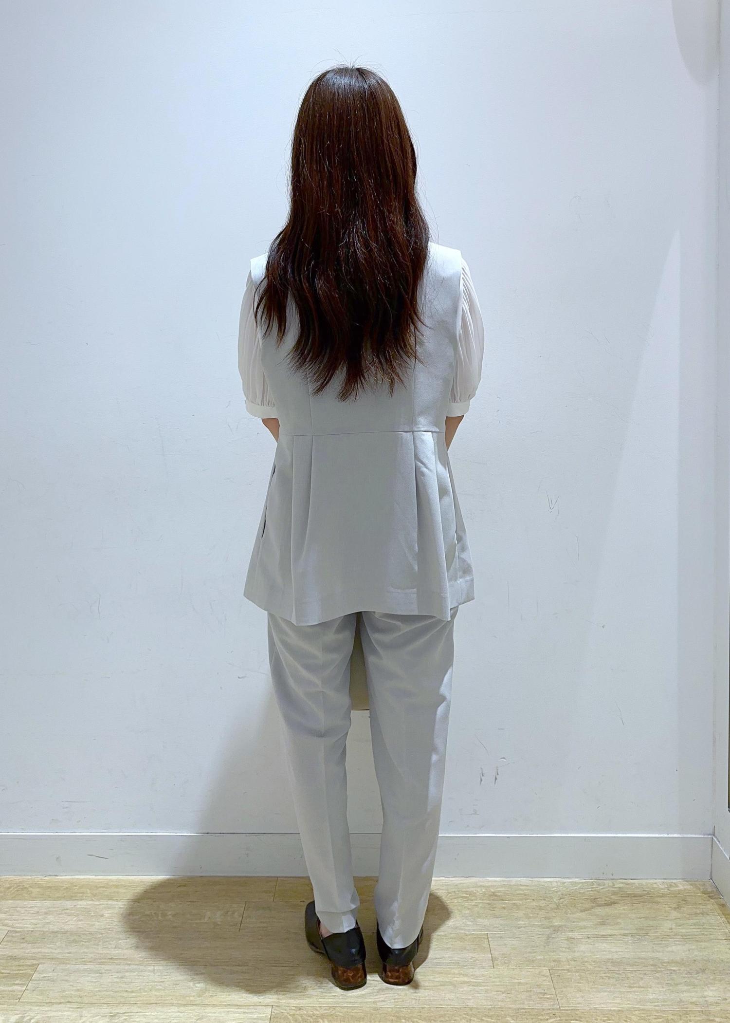 ペプラムジレとセットアップのパンツと組み合わせです!