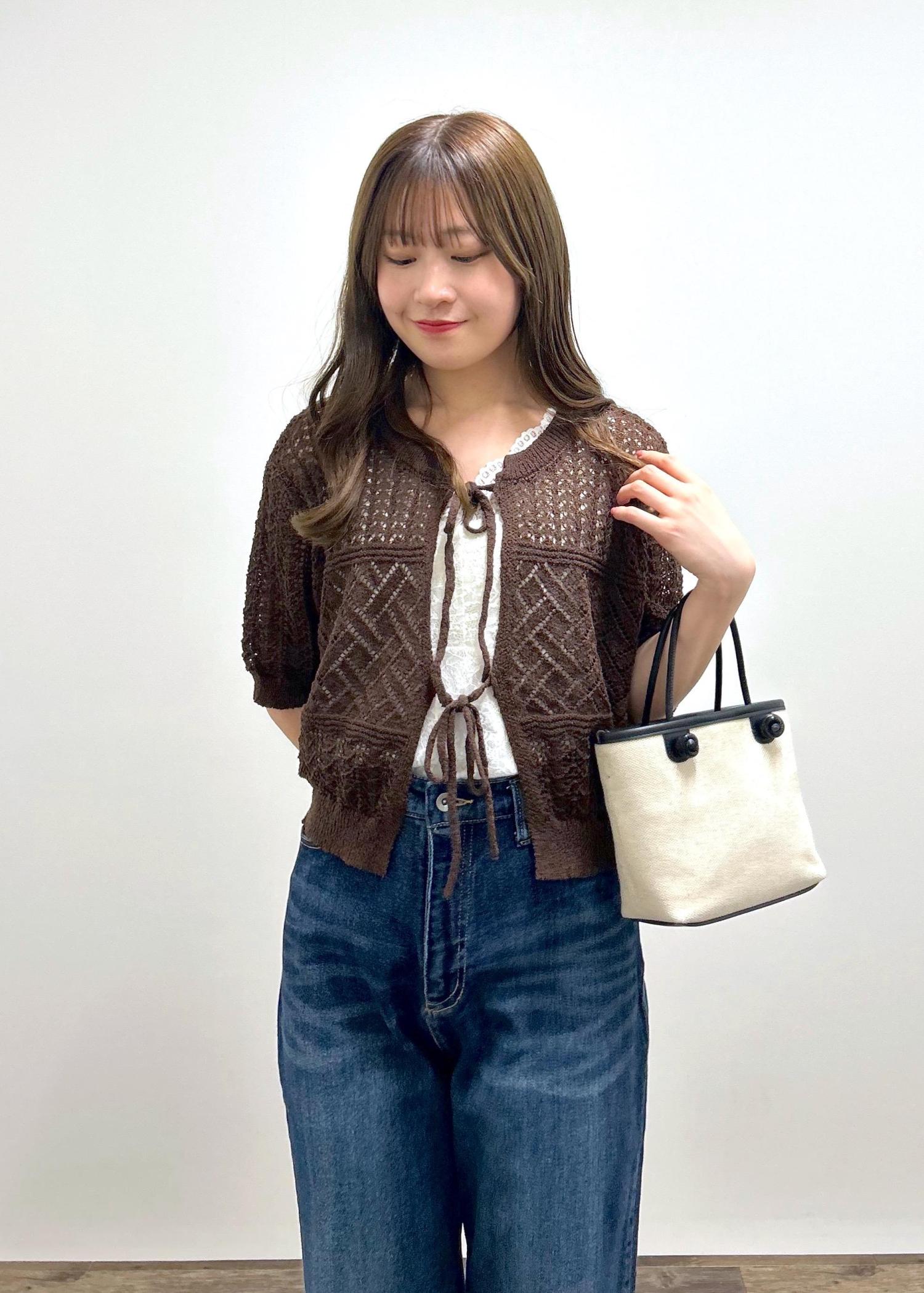 可愛らしいリボンのカーディガンにデニムを合わせて「カジュアルガーリーコーデ」に仕上げました!