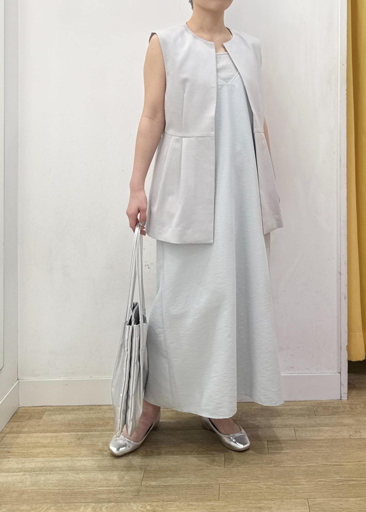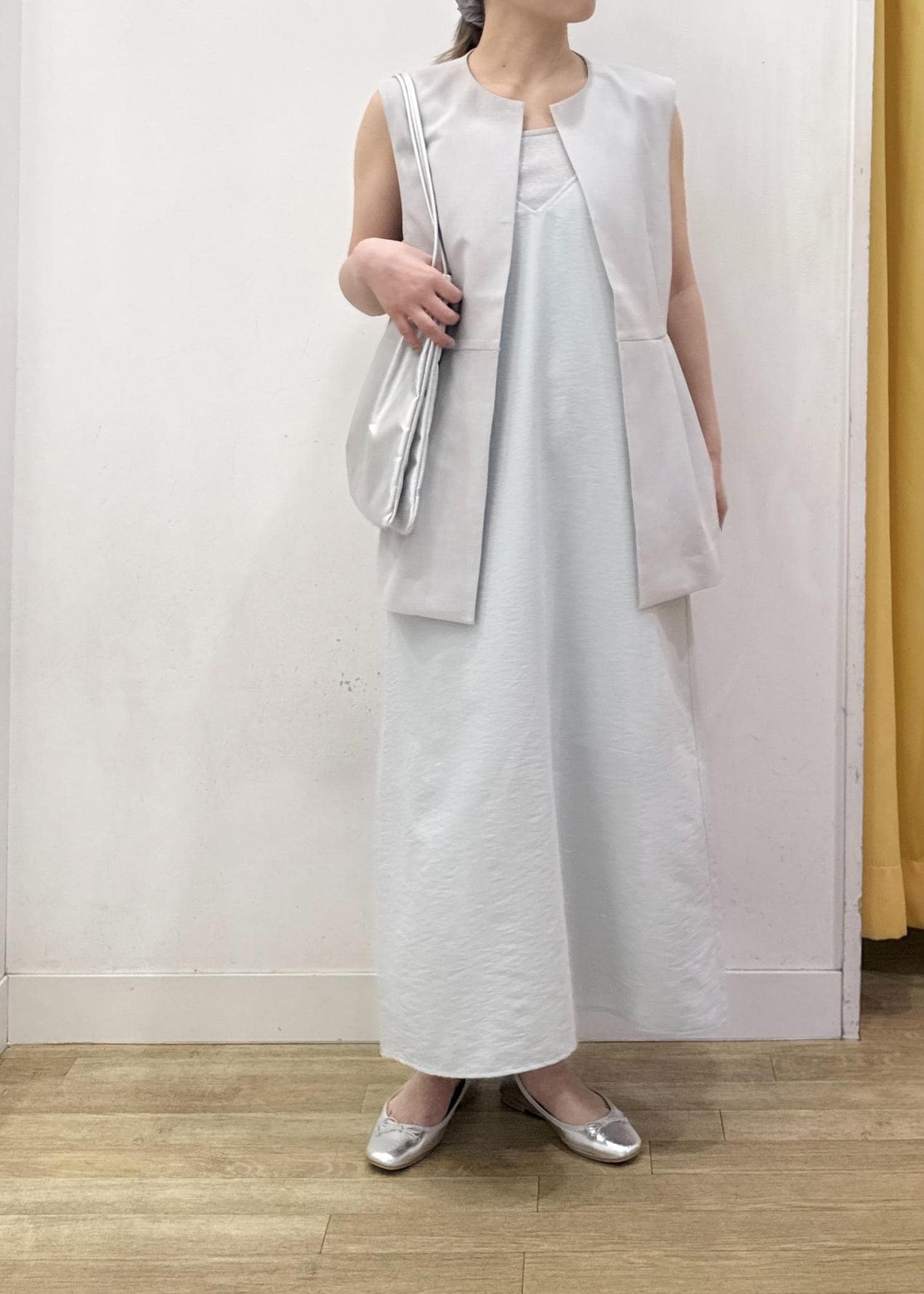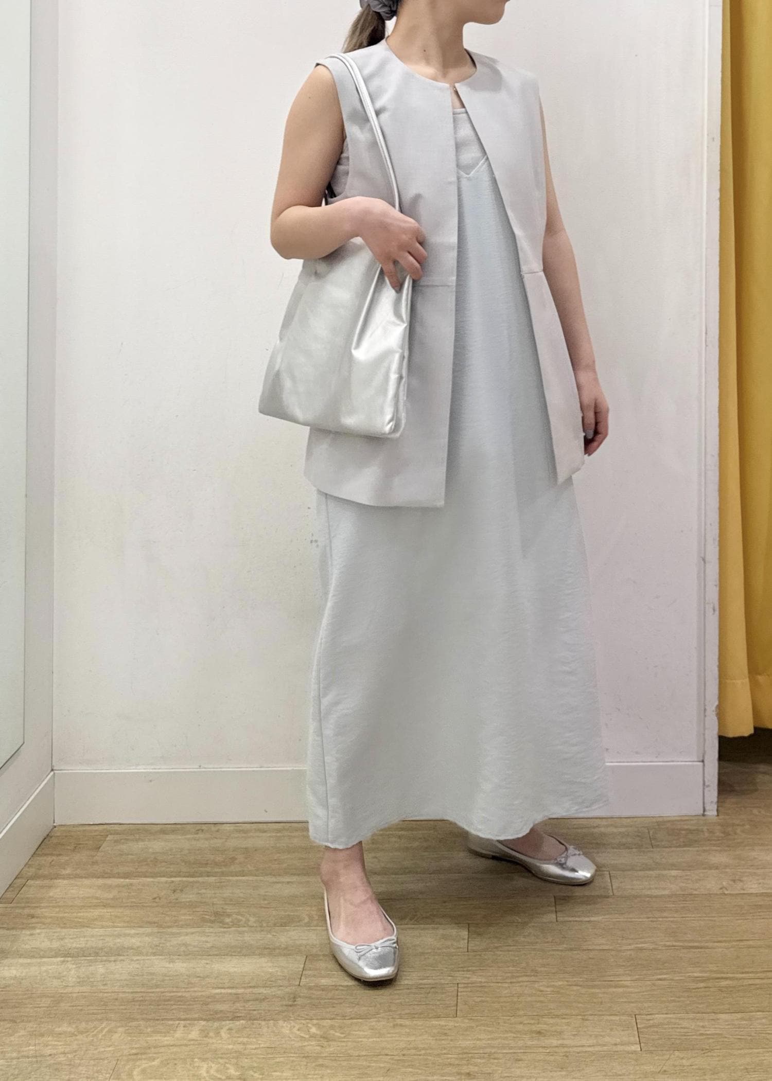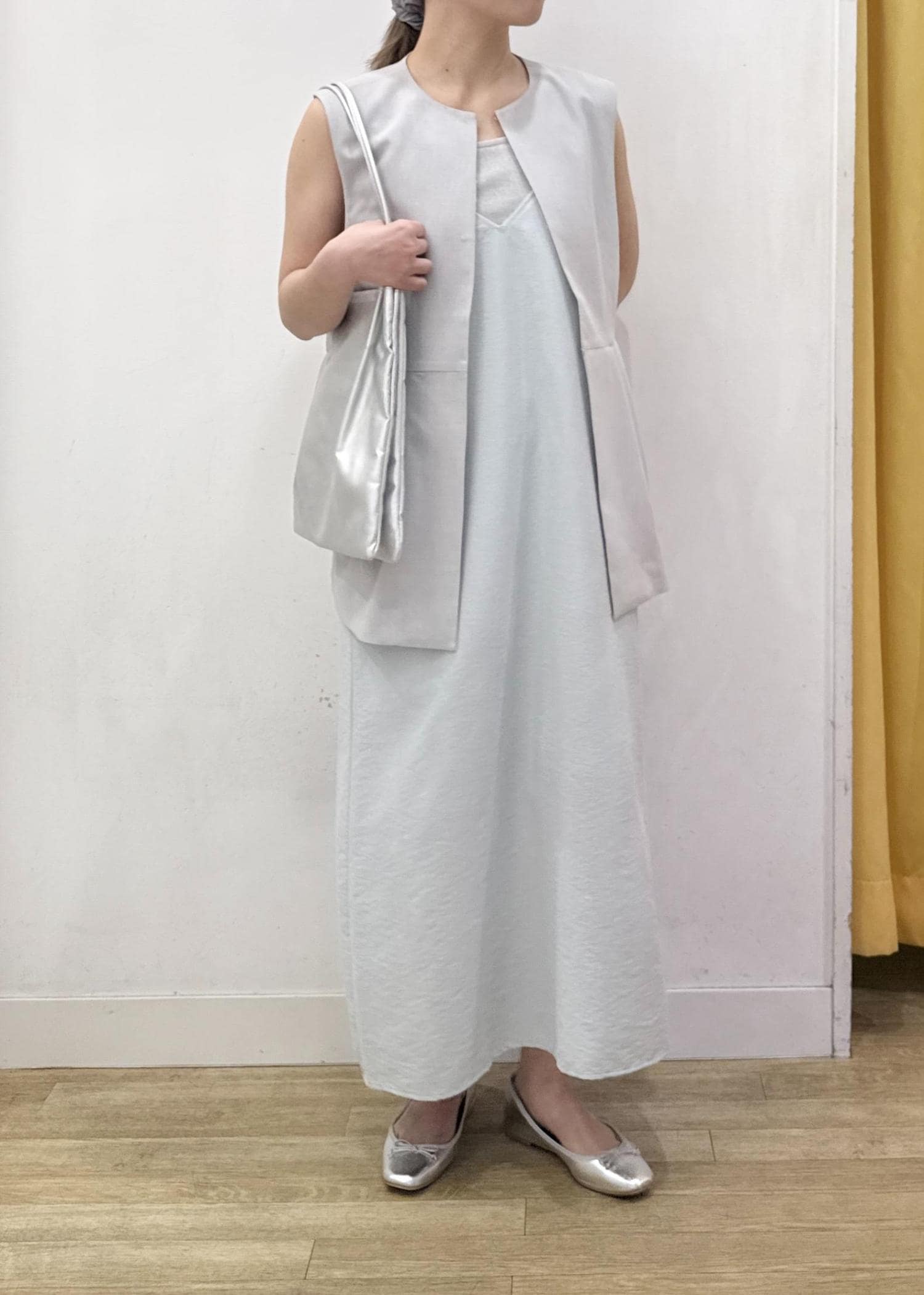 キャミワンピースにジレベストを合わせた大人カジュアルコーディネート☺︎