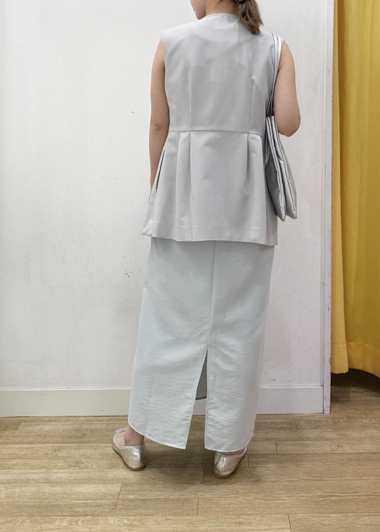 ふんわりカラーで合わせて、小物はシルバーで統一感を出せば夏にピッタリの爽やかな印象に!