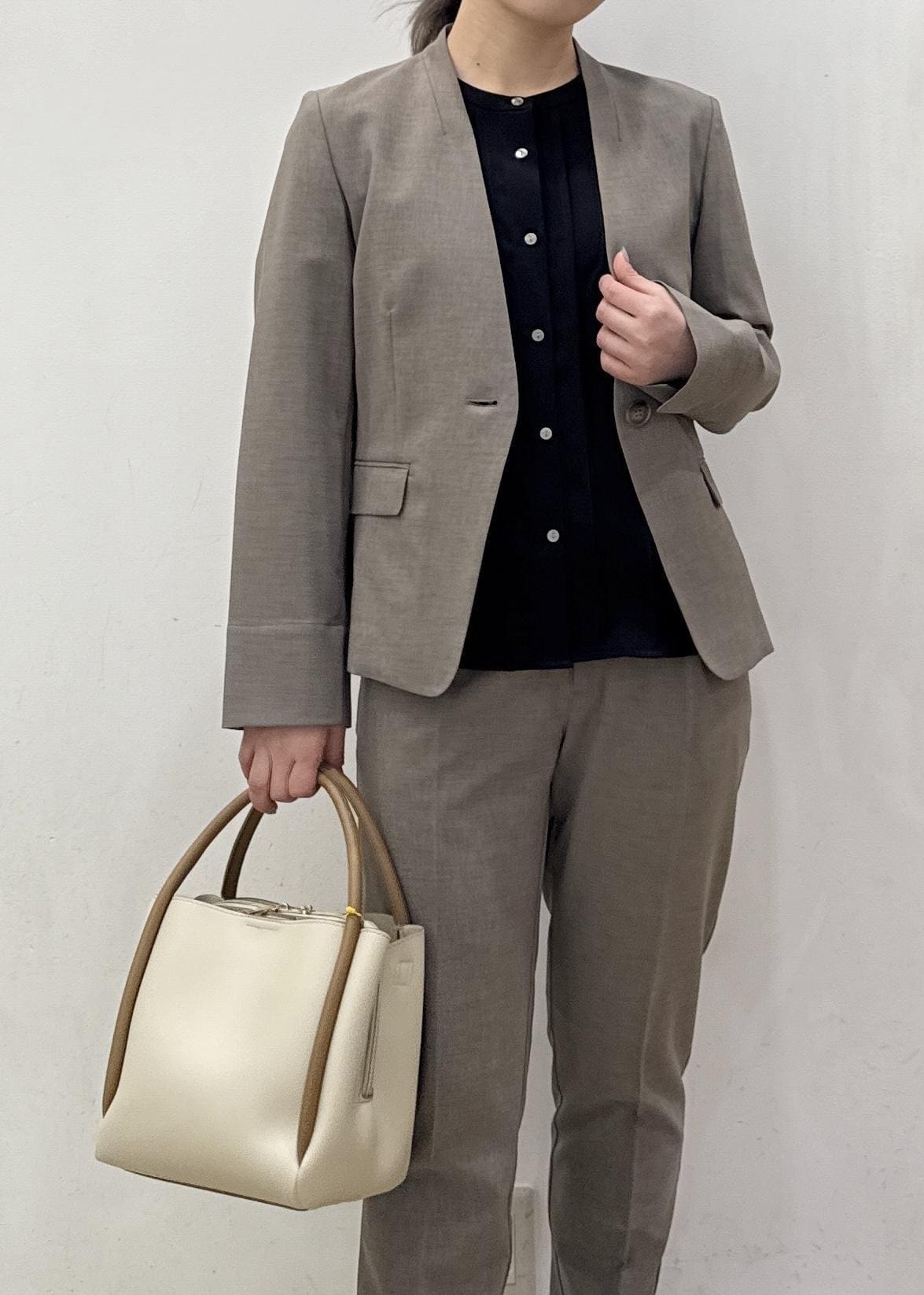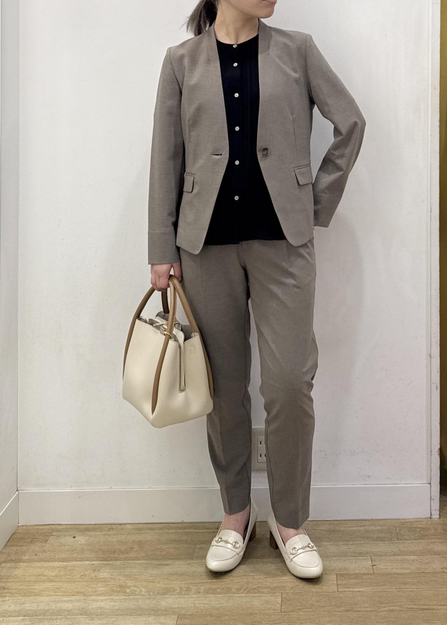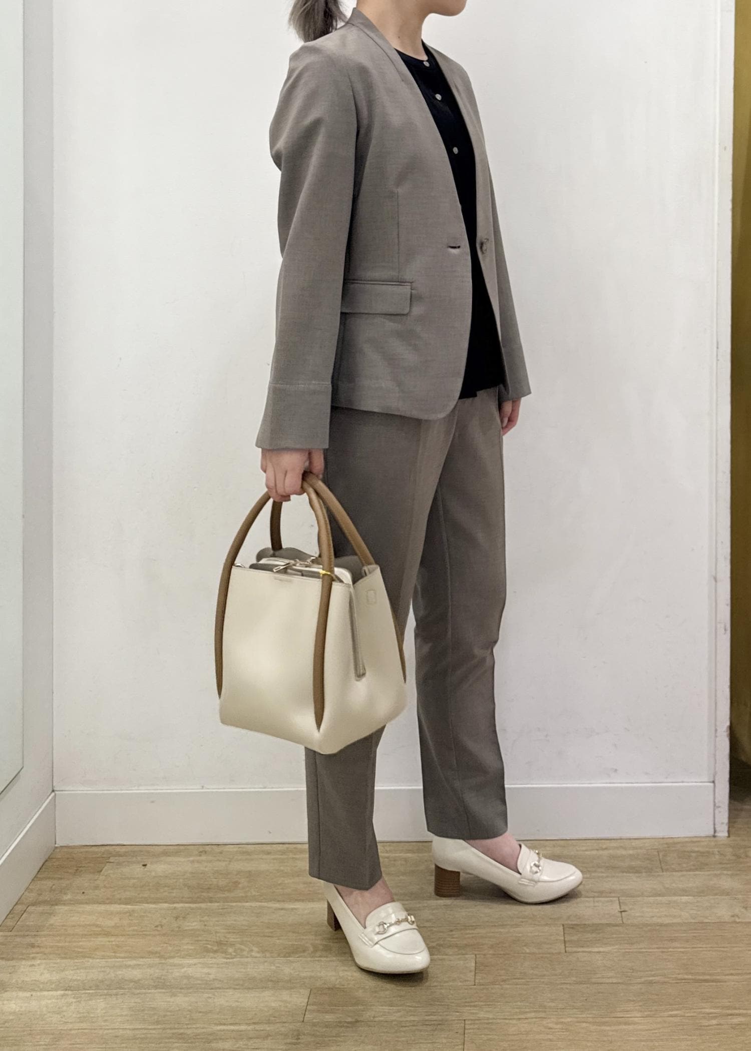 サラッと薄手の素材とスッキリとしたラインのテーパードパンツは夏のお仕事着にもオススメです。 -