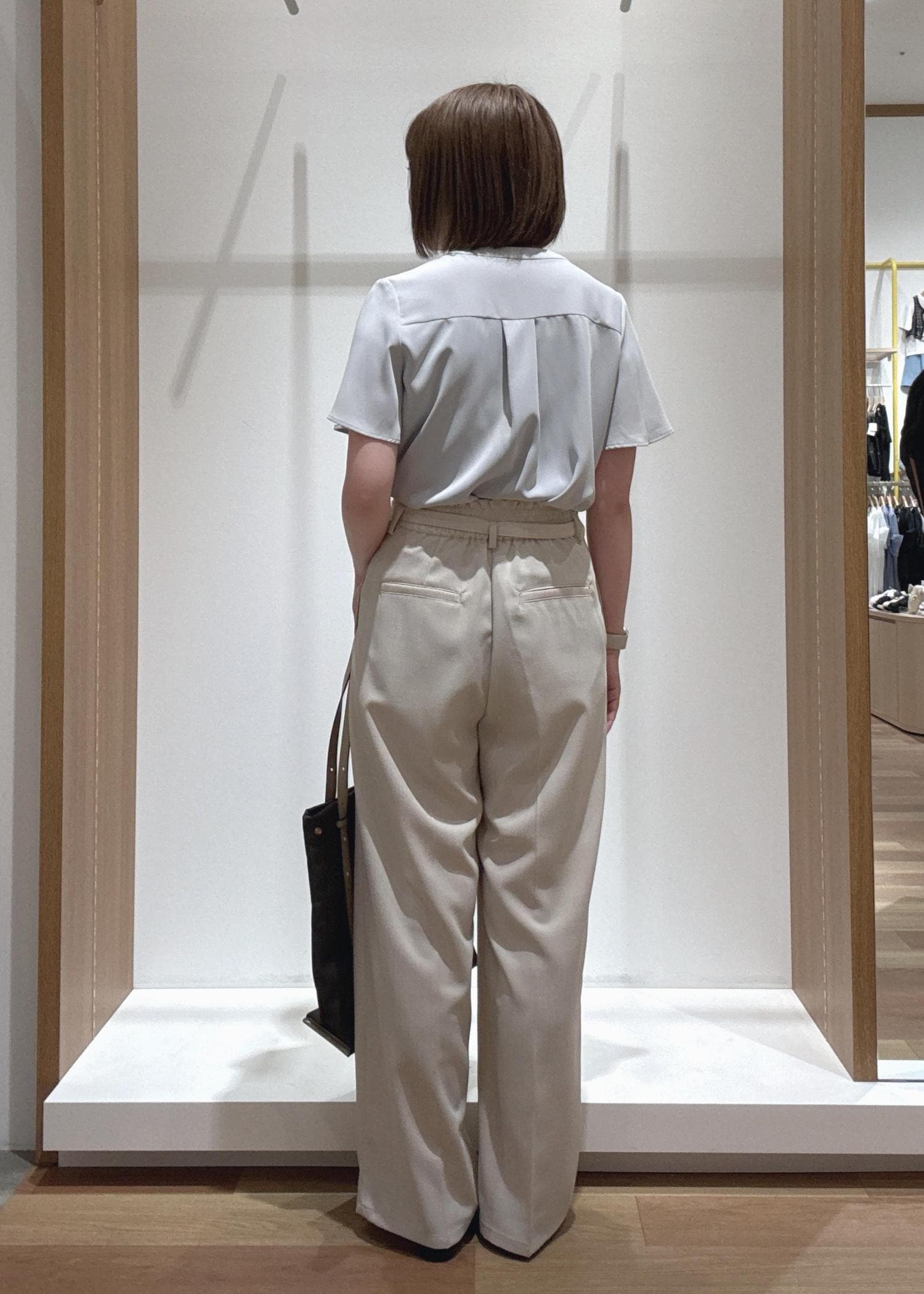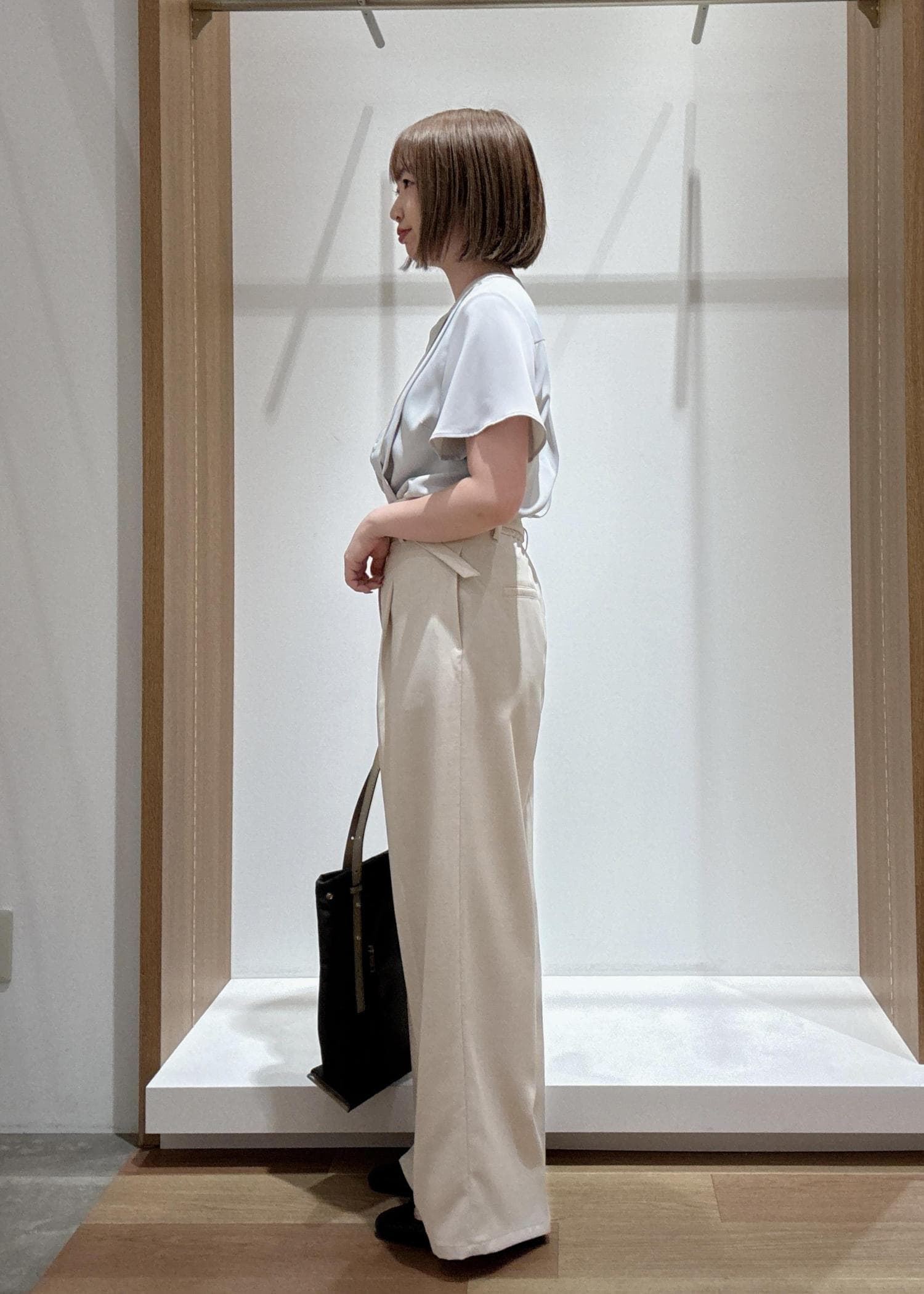真ん中にタックが入っているので脚をまっすぐ綺麗に見せてくれます。