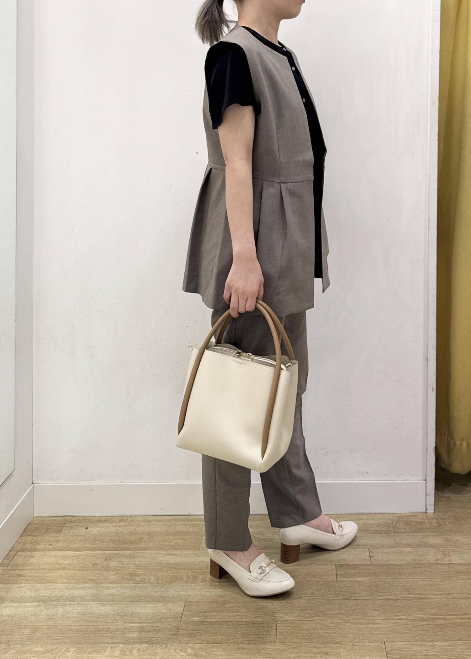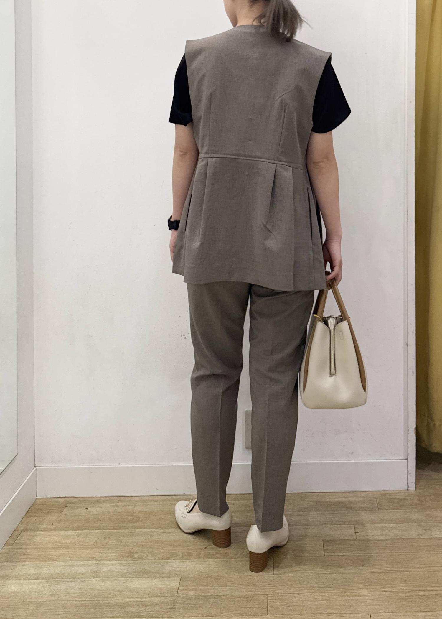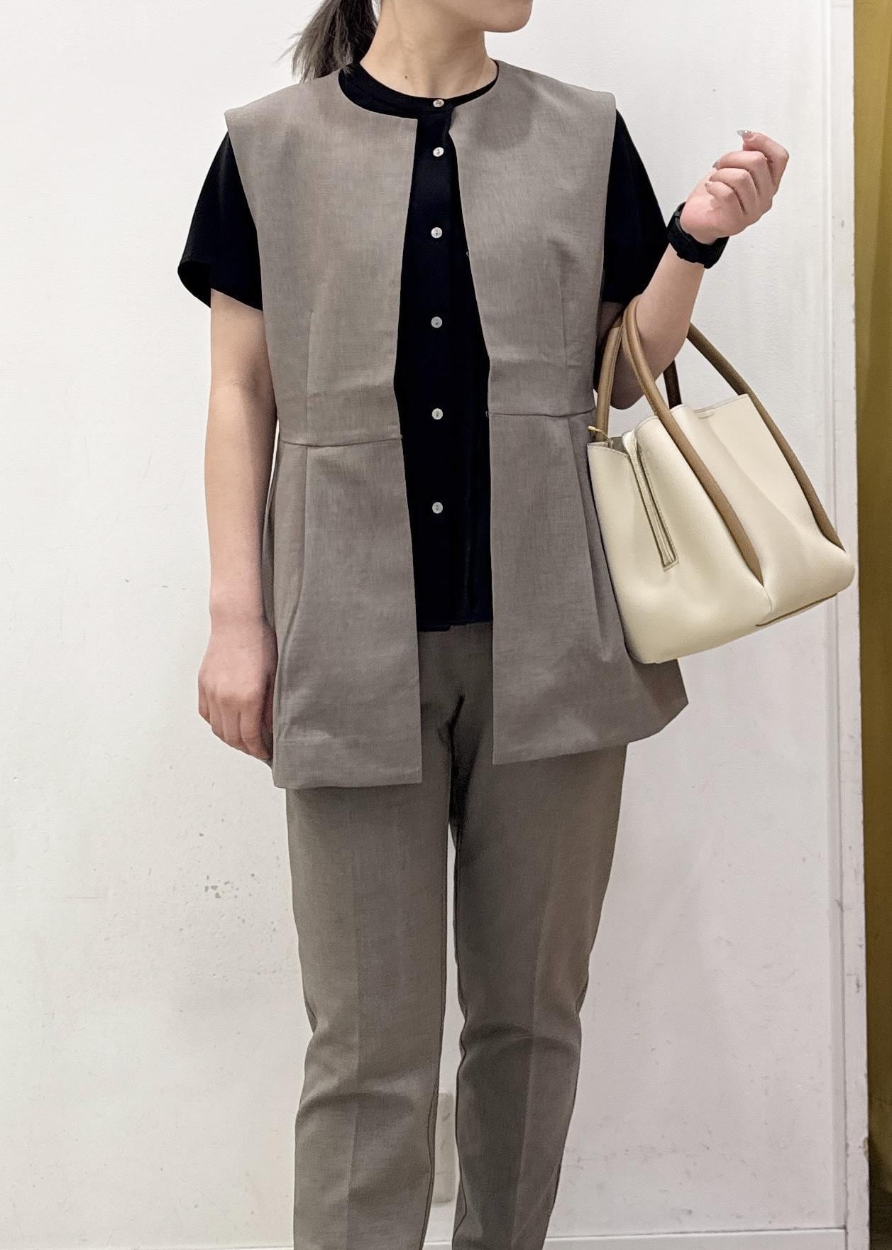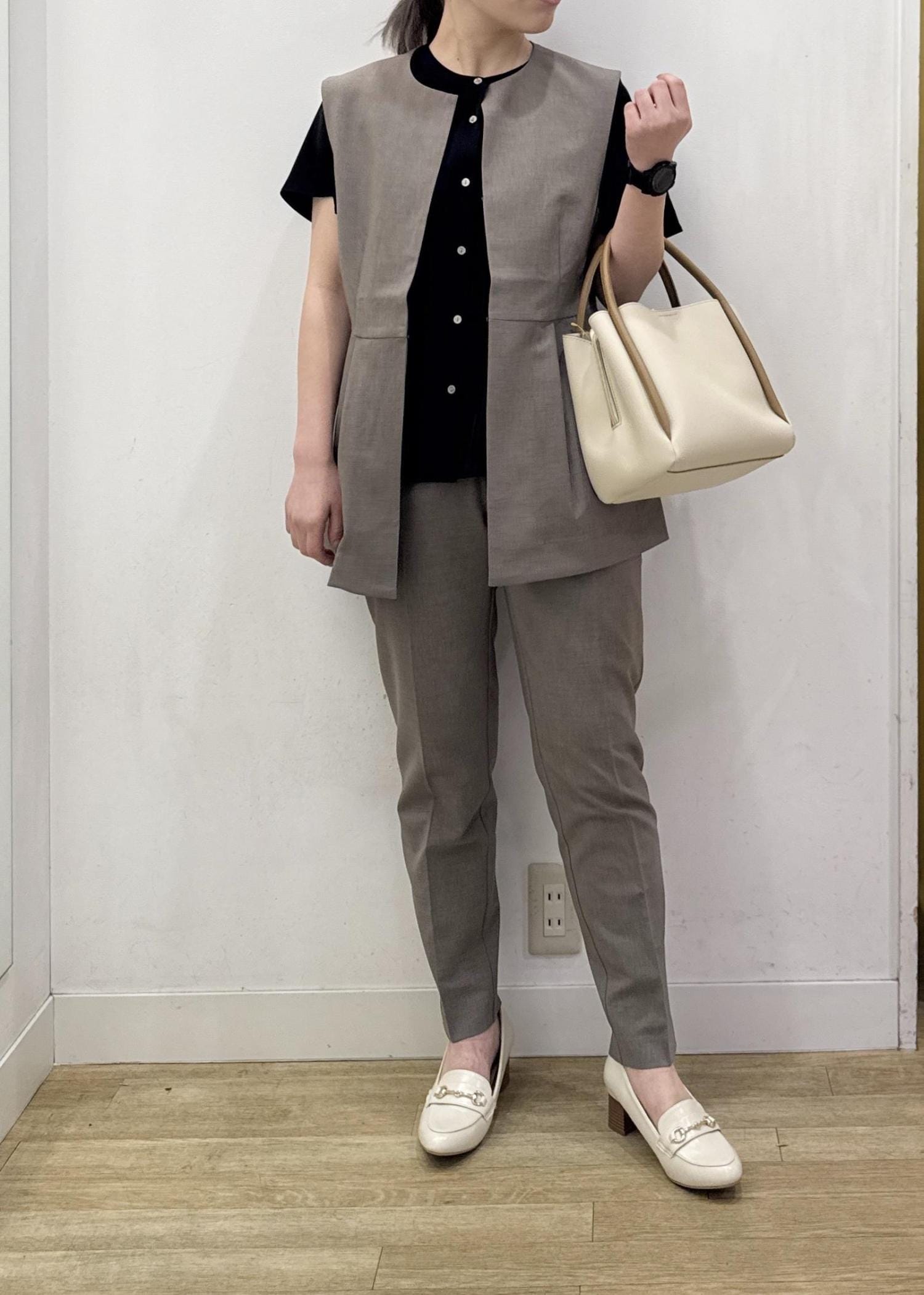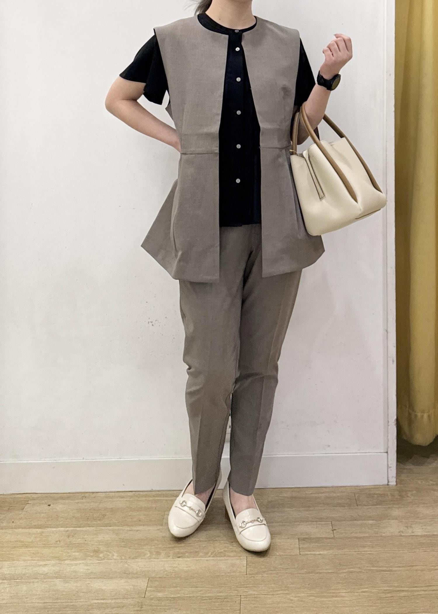 ブラウスにテーパードパンツの定番コーディネートに、ジレベストをプラスするだけでオシャレに☺︎