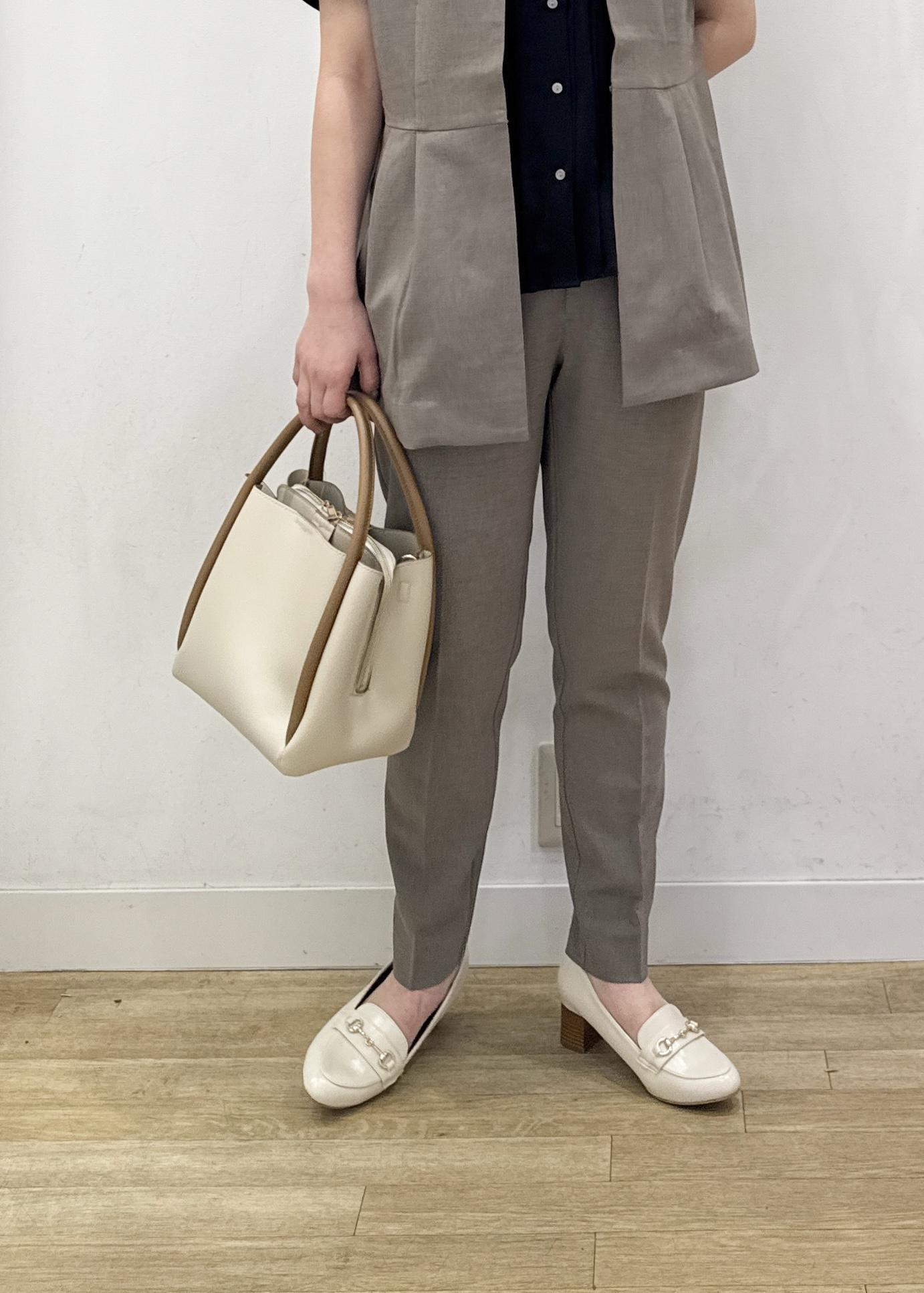 サラッと薄手の素材とスッキリとしたラインのテーパードパンツは夏のお仕事着にもオススメです。 -