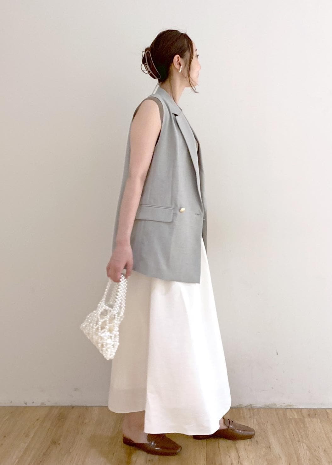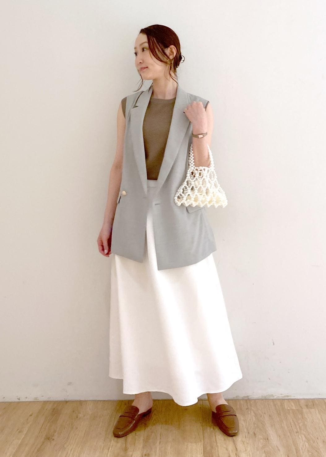 ミントグリーンのカラーを主役に、涼しげな大人のレイヤードスタイルにしました。