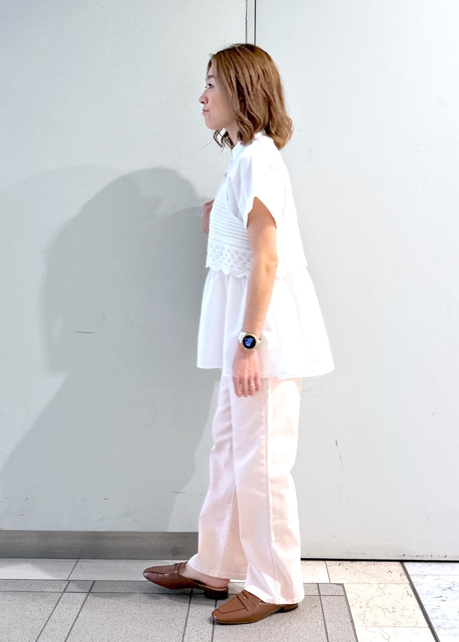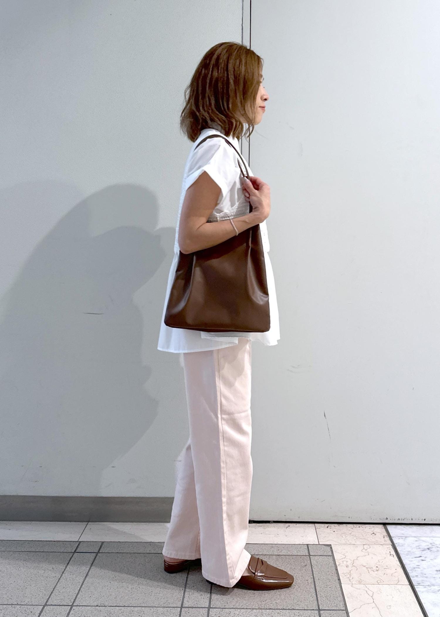 着丈もスッキリとしているので、スニーカーやフラットシューズの合わせもオススメです。