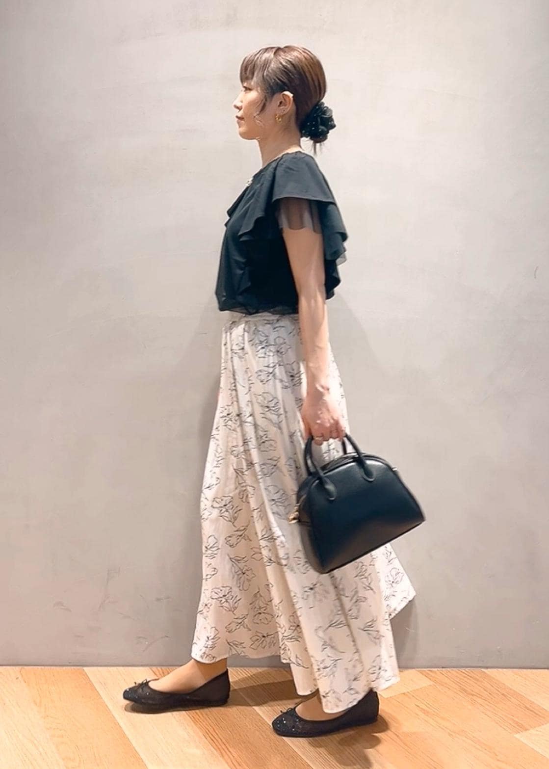 人気のスカーチョとフリルが可愛いTシャツを組み合わせ、「大人可愛い」コーディネートにしてみました!